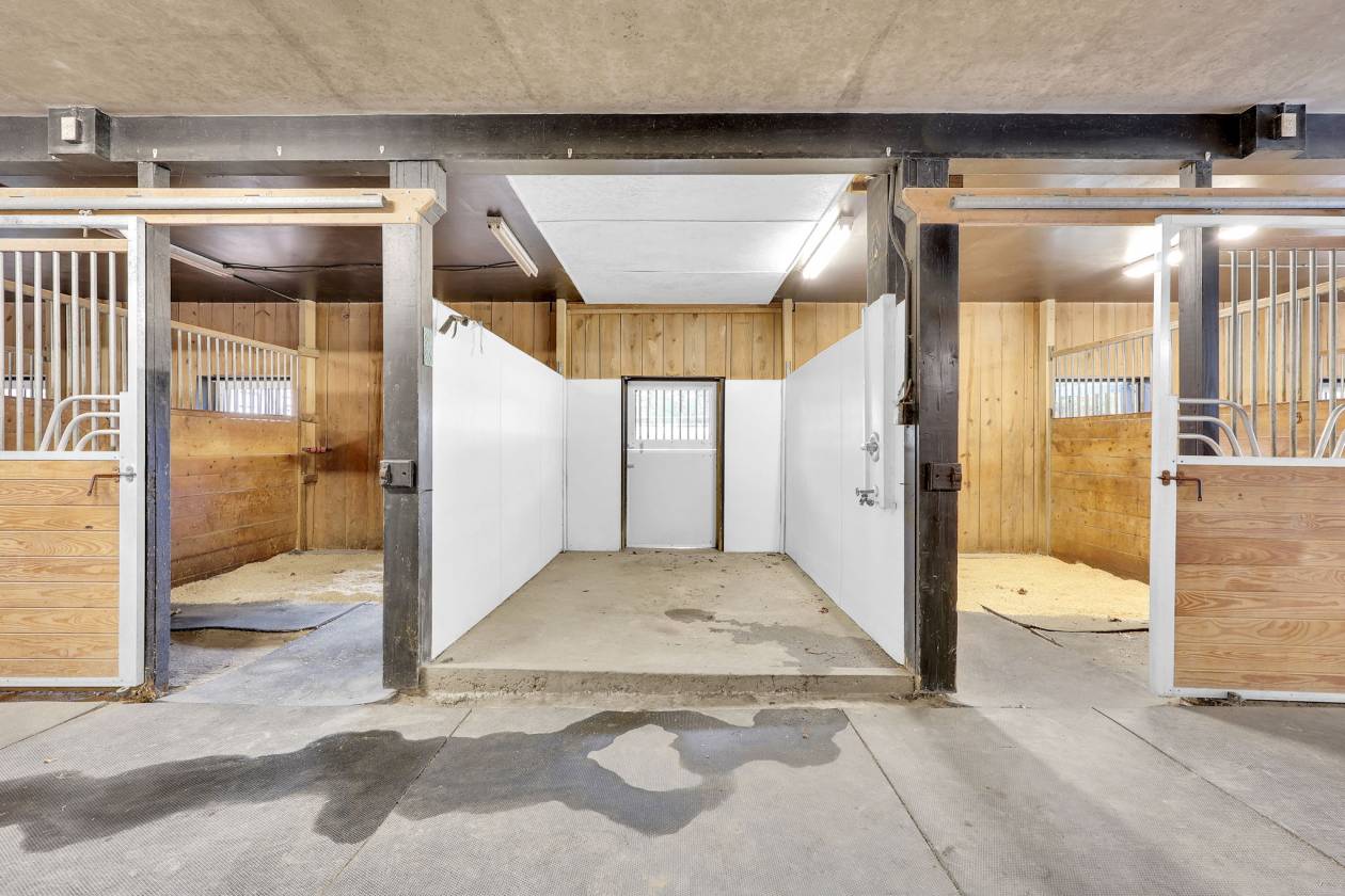- Connected seamlessly to the arena for maximum convenience, the barn is thoughtfully outfitted for efficiency and horse comfort.