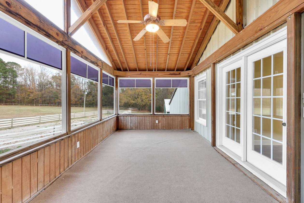 - A standout feature is the attached large 3-season room overlooking the pastures—an inviting place to relax or entertain. The apartment offers both front and rear entries, each connecting directly to the barn for exceptional convenience.