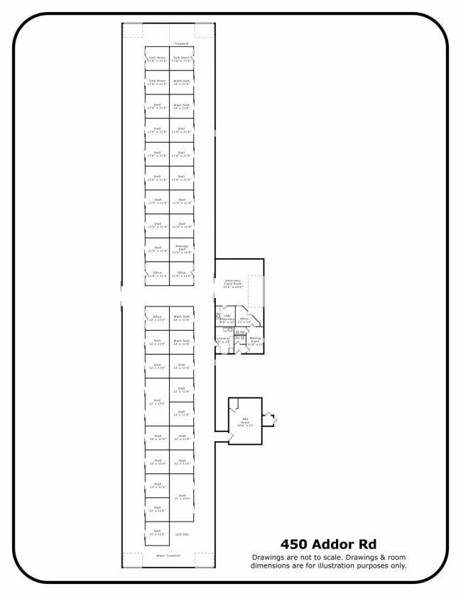 • 30+ stall barn (modeled after Belmont) equipped with veterinary exam room