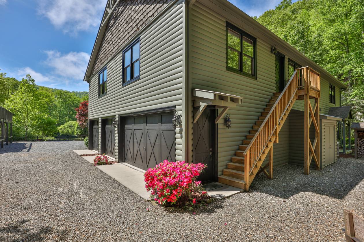 Versatile 60-Acre Estate with Extensive Amenities and Breathtaking Mountain Views. Welcome to this exceptional +/- 60-acre property, thoughtfully developed to support a wide range of lifestyle needs—from equestrian to RV living, hobbyist pursuits, and multigenerational living. A well-designed road infrastructure, complete with county-spec culverts and drainage, provides seamless access throughout the property. Horse lovers will appreciate the equestrian-ready setup, featuring approximately 1.5 miles of custom horse fencing, a 9-stall barn with a spacious upstairs loft converted into a stunning entertainment space, two bonus rooms, and a full bathroom. The grounds also include a dedicated hay barn, firewood shed, and a large, fenced pasture—ideal for grazing. Motor coach owners and automotive enthusiasts will be equally impressed. Adjacent to the barn is a custom +/- 5,795 sq ft building (per county records), offering a multi-purpose hobby area, seven separate garages for vehicles and recreational toys, generous storage, and even potential for additional entertaining space. A beautifully appointed custom apartment suite is also housed within the structure, offering a large primary bedroom with an ensuite, a full kitchen and dining area. The entire building is climate-controlled, excluding the garages. Future development opportunities abound, with several platted building sites ideal for a private retreat or family compound. Each site offers its own character and stunning long-range mountain views. Despite the private setting, you’re just minutes from downtown Sylva and Western Carolina University, providing the perfect balance of seclusion and convenience. This is more than just a property—it’s a lifestyle opportunity.
