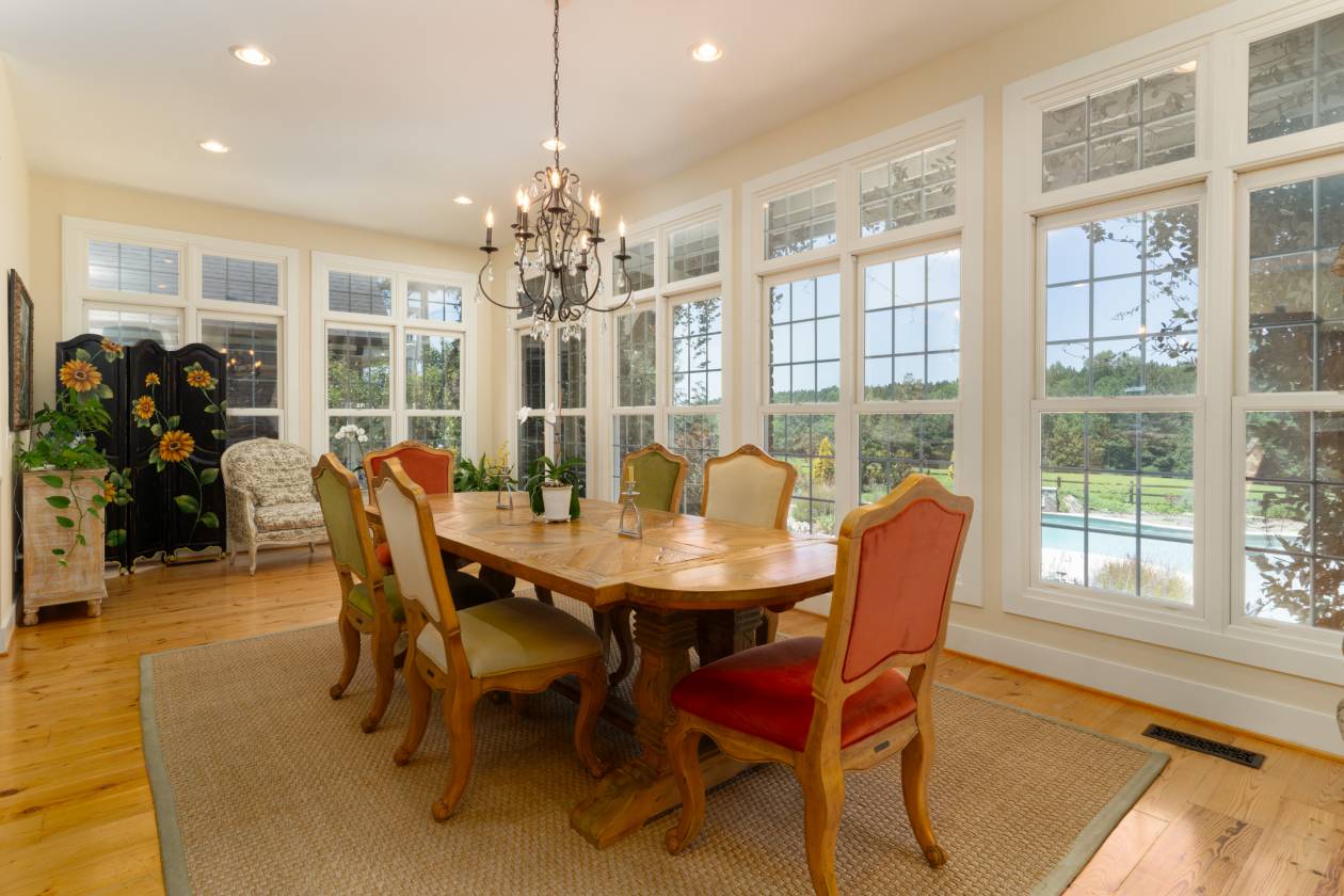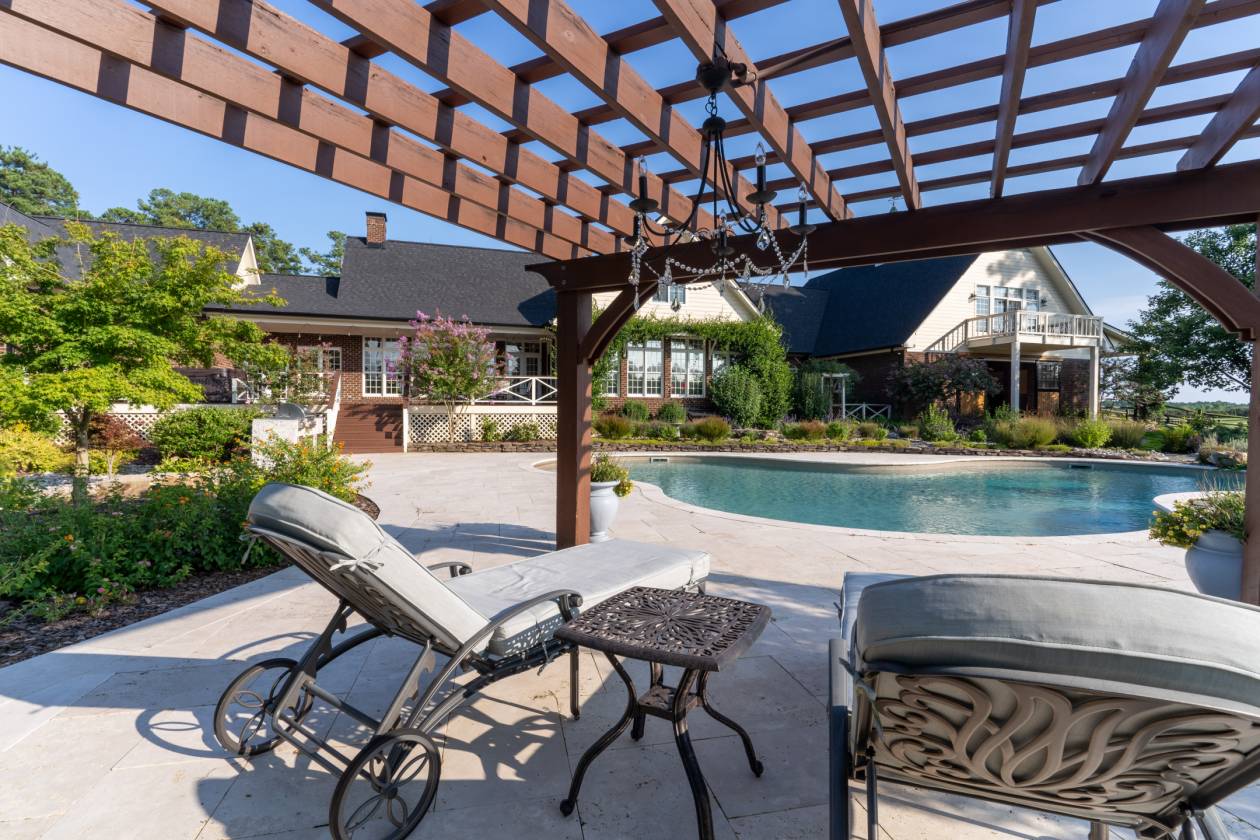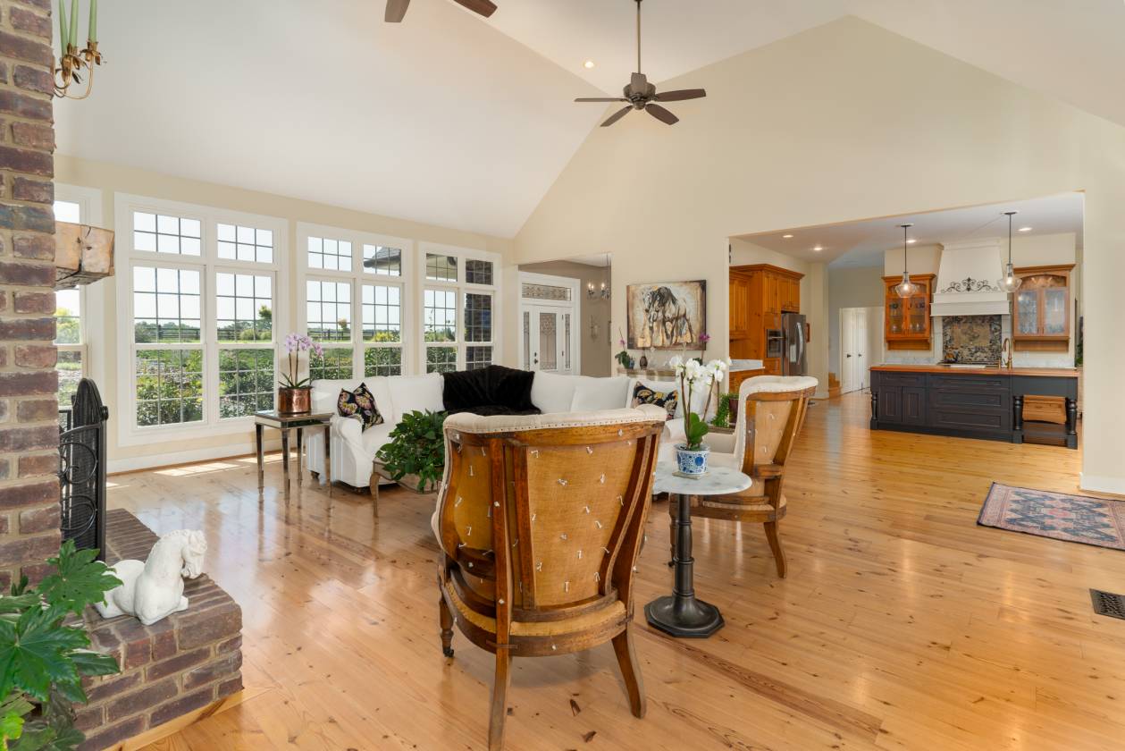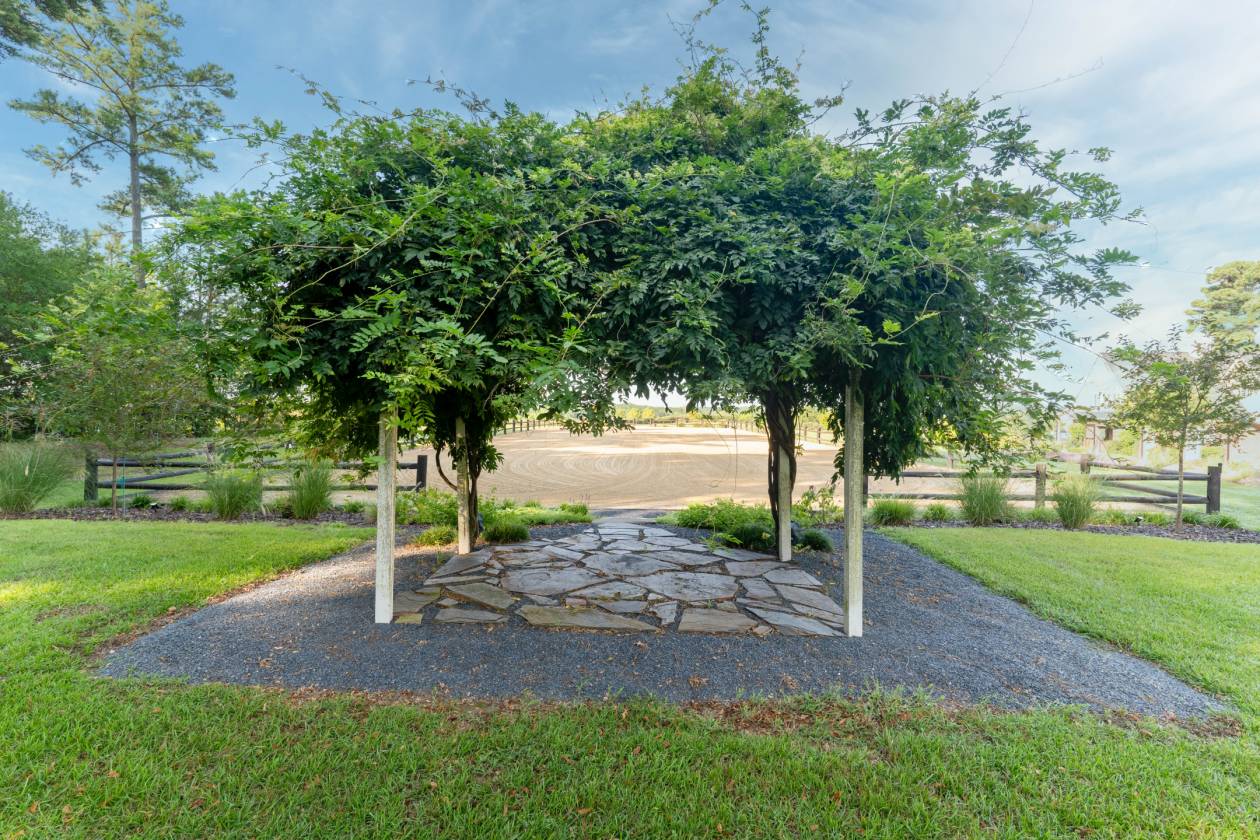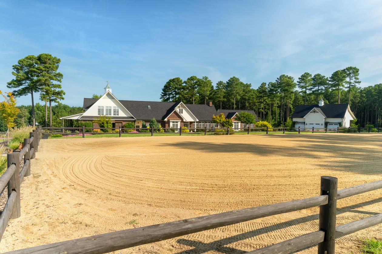 Welcome to Emerald Fields — the crown jewel of The Fields Equestrian Community in Cameron, North Carolina, ranked the #1 equestrian community in the state. This rare and remarkable estate offers an unmatched opportunity to live in the heart of North Carolina's premier horse and golf country, surrounded by sweeping panoramic views and refined tranquility. Designed with timeless elegance and top-tier craftsmanship, the custom residence showcases floor-to-ceiling windows, an open-concept layout, and a gourmet kitchen outfitted with marble countertops and high-end appliances. The soaring great room and serene primary suite each feature cathedral ceilings and cozy fireplaces, creating warm and inviting spaces to unwind. Additional highlights include a richly appointed library, a media room, butler's pantry, home office, and a private guest suite complete with its own kitchen—ideal for hosting in style. Step outside to discover a beautifully landscaped outdoor oasis featuring a sparkling pool, artisan hot tub, grilling station, and mature gardens with curated hardscaping. For equestrians, Emerald Fields is a dream come true. The attached barn offers accommodations for four horses, with Nelson automatic waterers, fans, a climate-controlled tack room, feed room, and a hot/cold wash rack. The property also includes a private, irrigated 60x20m dressage arena, 20m round pen, cross-country course with obstacles, and direct access to The Fields' extensive 10-mile trail network. Emerald Fields isn't just a home—it's a lifestyle. Whether you're a passionate rider or simply seeking a refined rural retreat, this estate offers the perfect blend of luxury, functionality, and natural beauty. Don't miss this extraordinary opportunity to own a premier equestrian estate in one of the most desirable communities in the country.