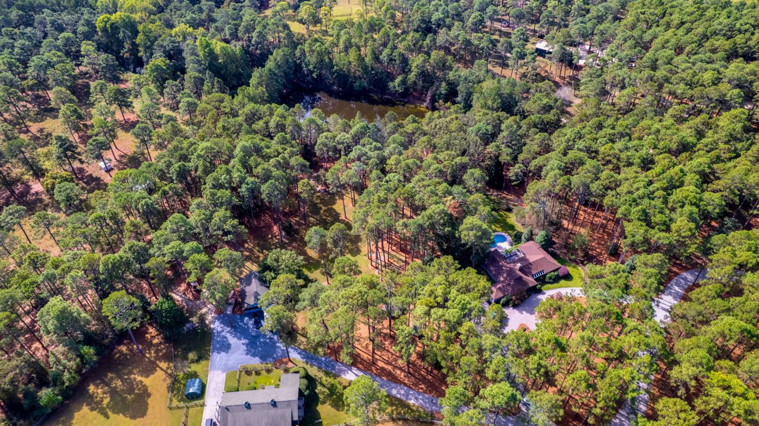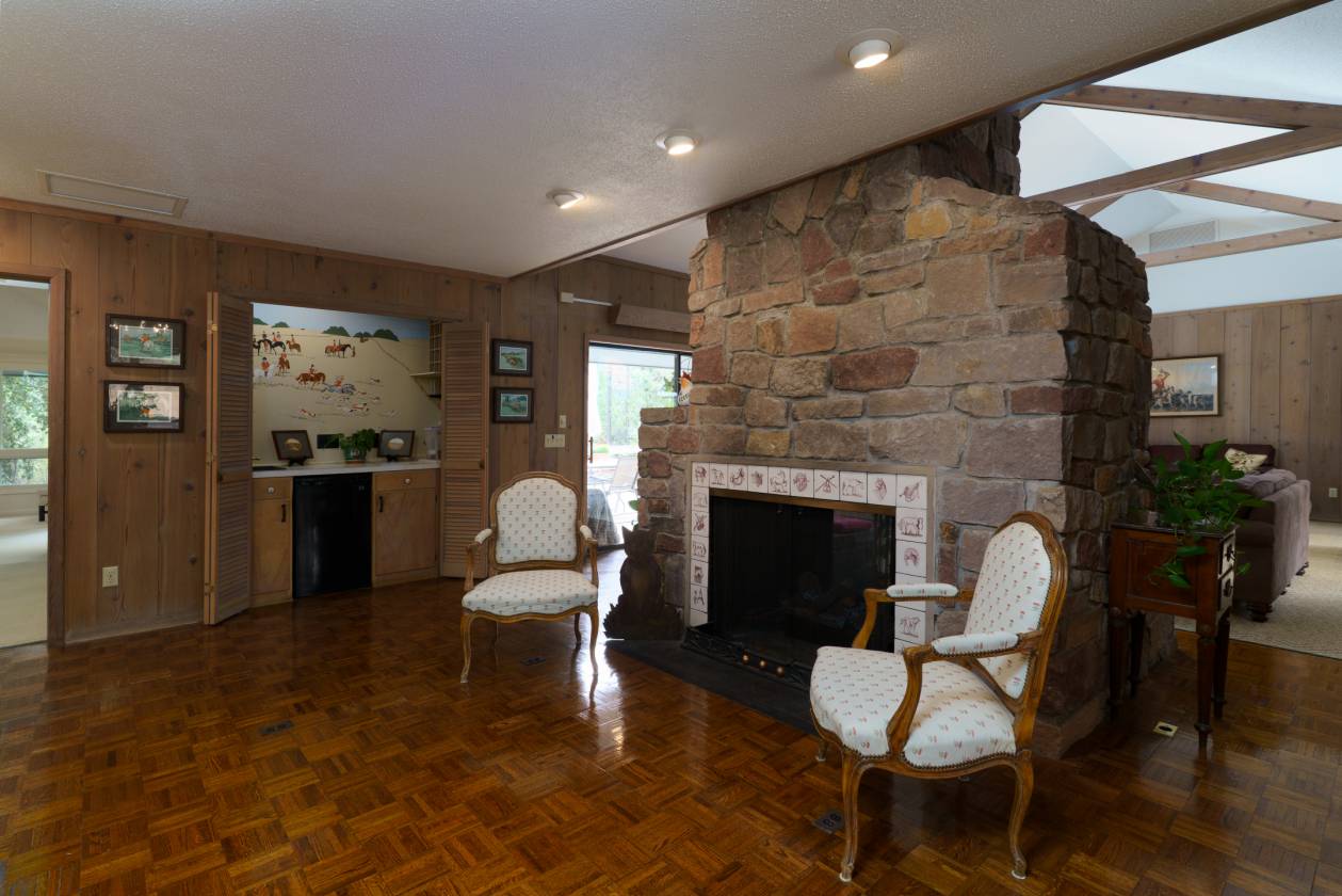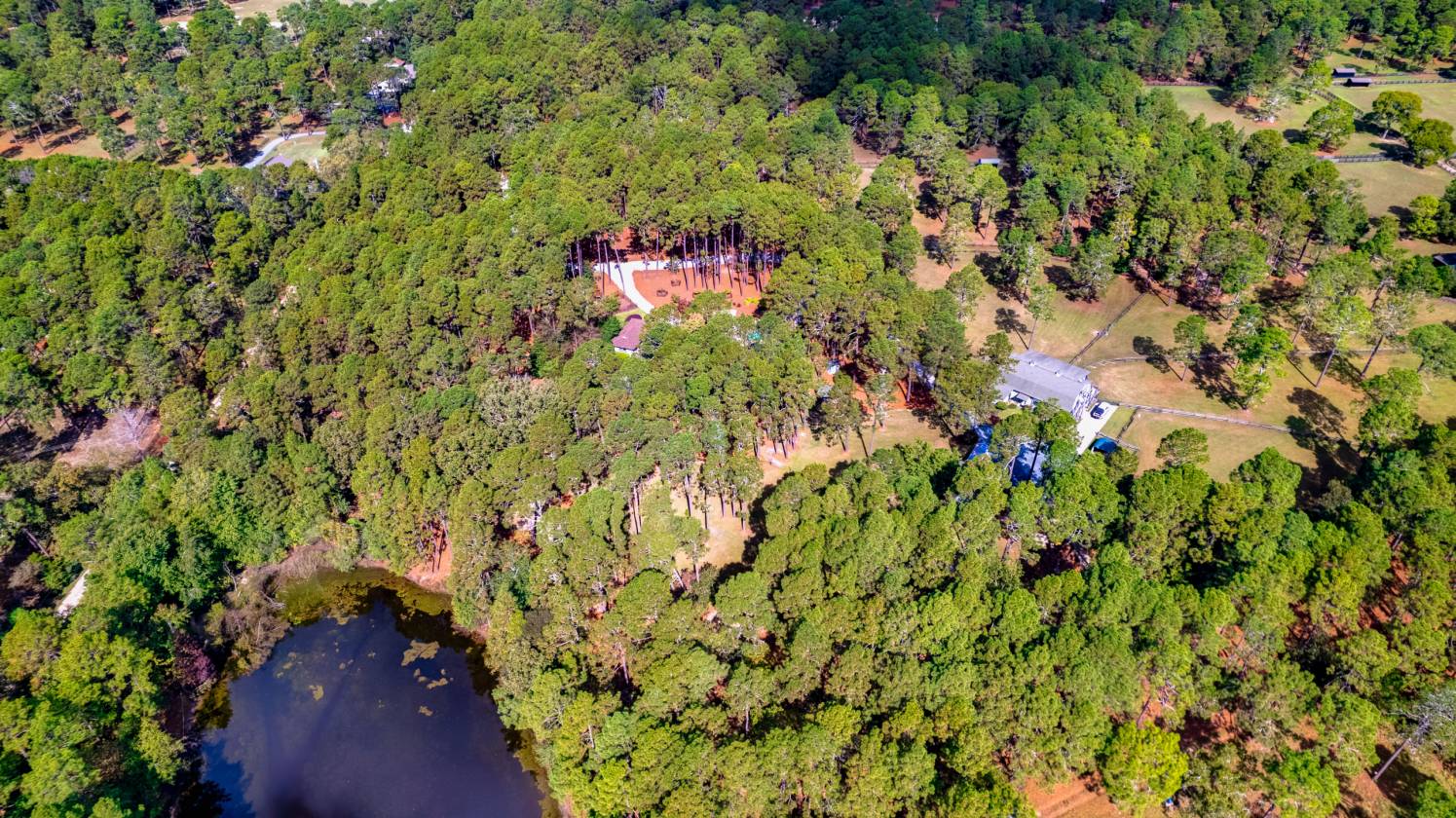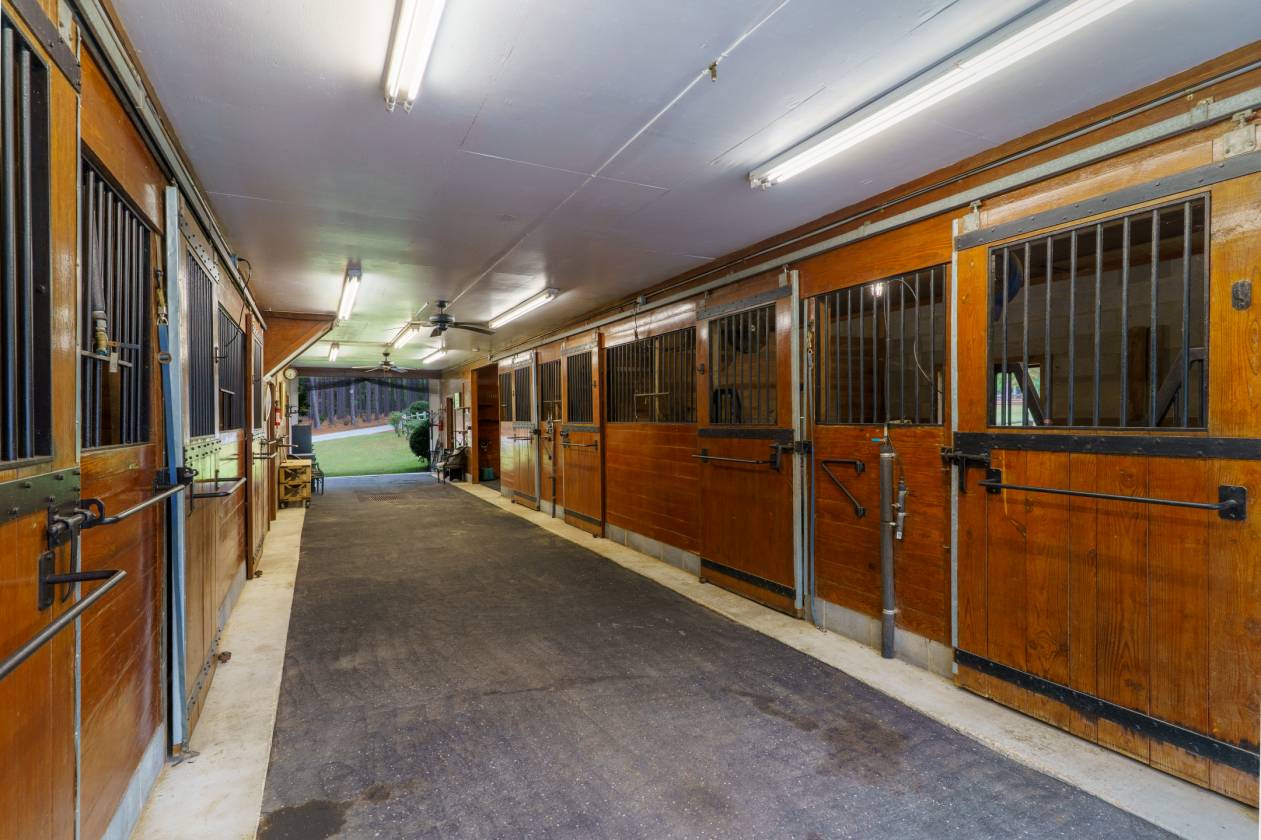 In and Out Farm - a private equestrian oasis in the heart of Southern Pines Horse Country! Set on 24 acres, this property offers peace, privacy, and a thoughtfully designed, fully functional facility suited to a wide range of equestrian pursuits. The inviting ranch-style home features a split floor plan with vaulted ceilings, warm wood accents, and equestrian-inspired finishes throughout. Built by a horse person, the home showcases custom tile work and a stunning mural of the Moore County Hounds by the late Danila Devins, a beloved local artist. The spacious back deck overlooks the pool and pond, creating the perfect spot for outdoor entertaining or quiet relaxation. The lower level includes a large flex room and full bath, ideal for a home gym or an office. The barn is the centerpiece of the property with 7 stalls, including a double-sized foaling stall, some with turnout access to multiple paddocks. The tack room features a private bath and office, while the upper level includes a 1,400 sqft, 2-bedroom, 2-bath apartment complete with an enclosed porch overlooking the paddocks—perfect for guests, staff, or additional income. Equestrian amenities include a fenced grass riding arena, large paddocks with run-in sheds, and an equipment barn ideal for tractor and trailer storage. The location is unmatched, offering access to the 4,000+ acre Walthour-Moss Foundation, where riders can enjoy miles of scenic trails, bridges, water crossings, and hunt fences for endless hours of riding and training. Whether you're seeking a professional training operation, a boarding facility, or a private estate, In and Out Farm offers it all—combining functionality, beauty, and the best of Southern Pines equestrian living.