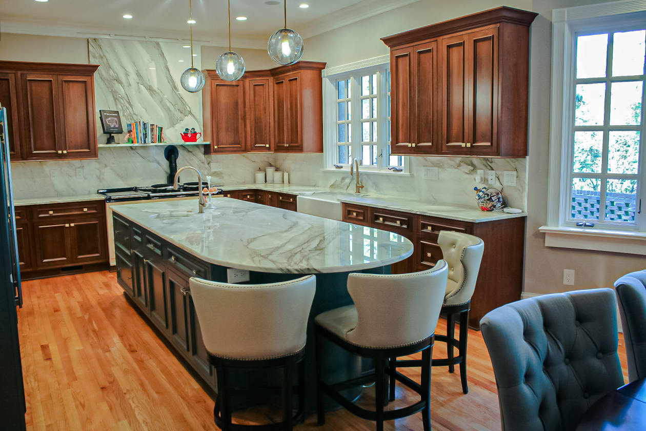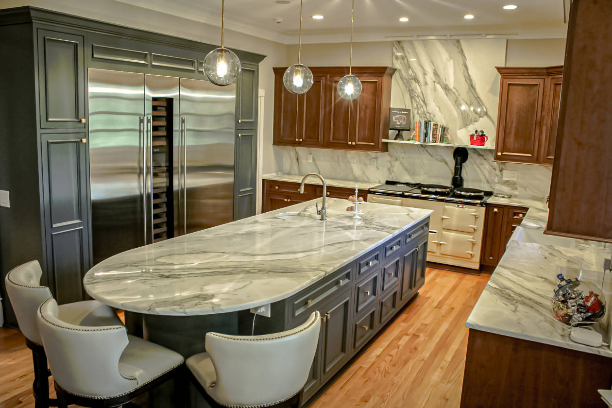 - • All work surfaces are Calacutta and Carrara marble