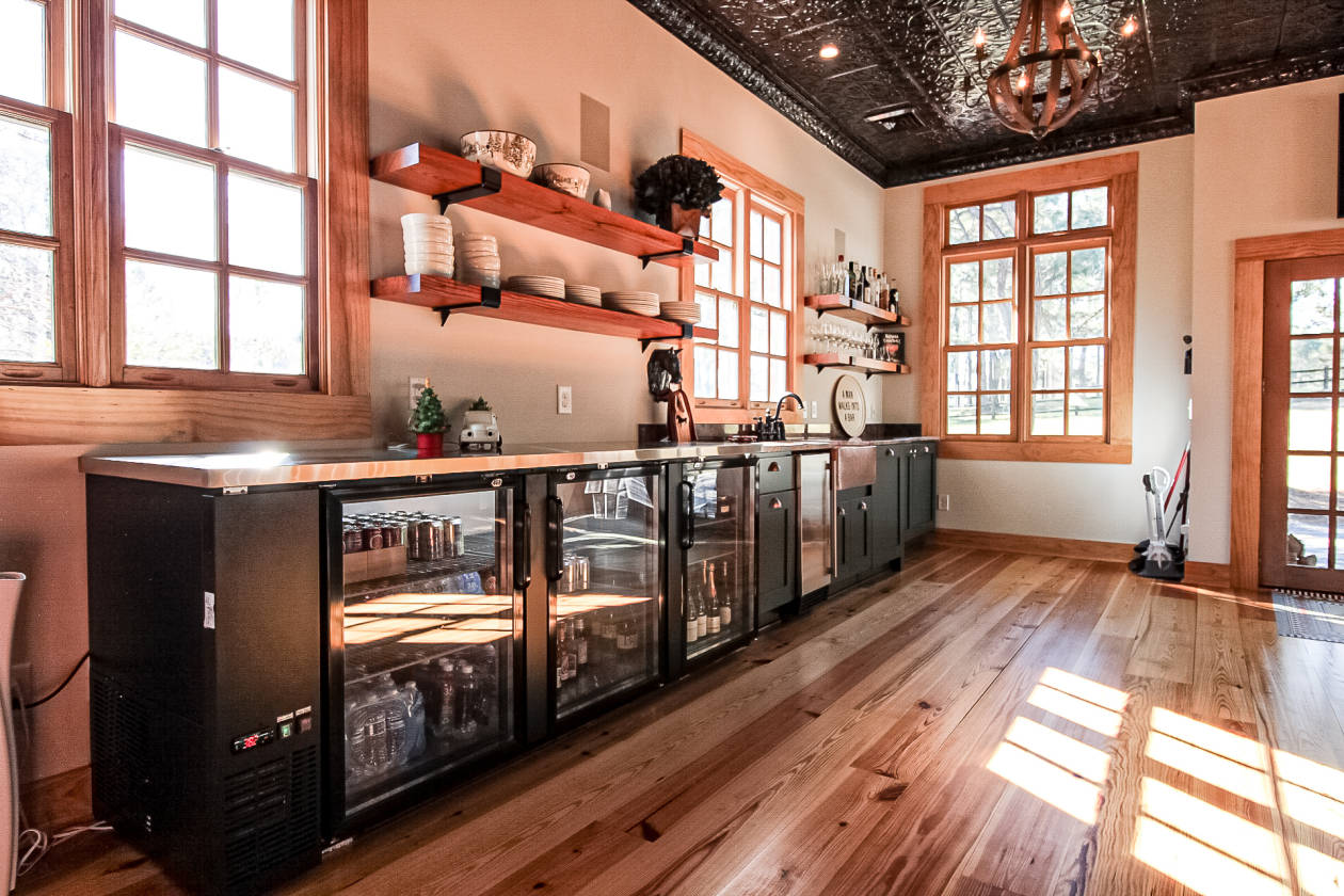 - Wet bar with built in ice maker, and beverage cooler, glass fronted
