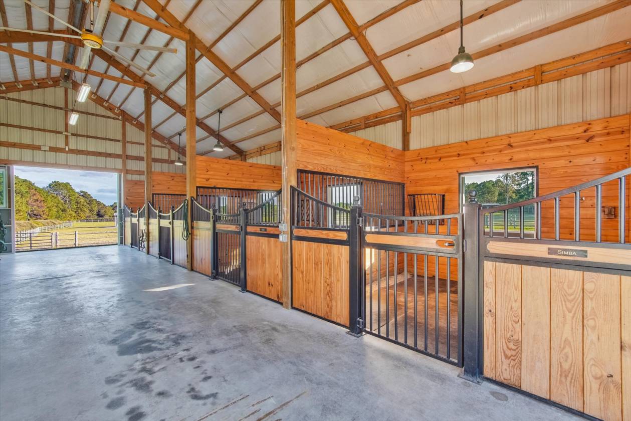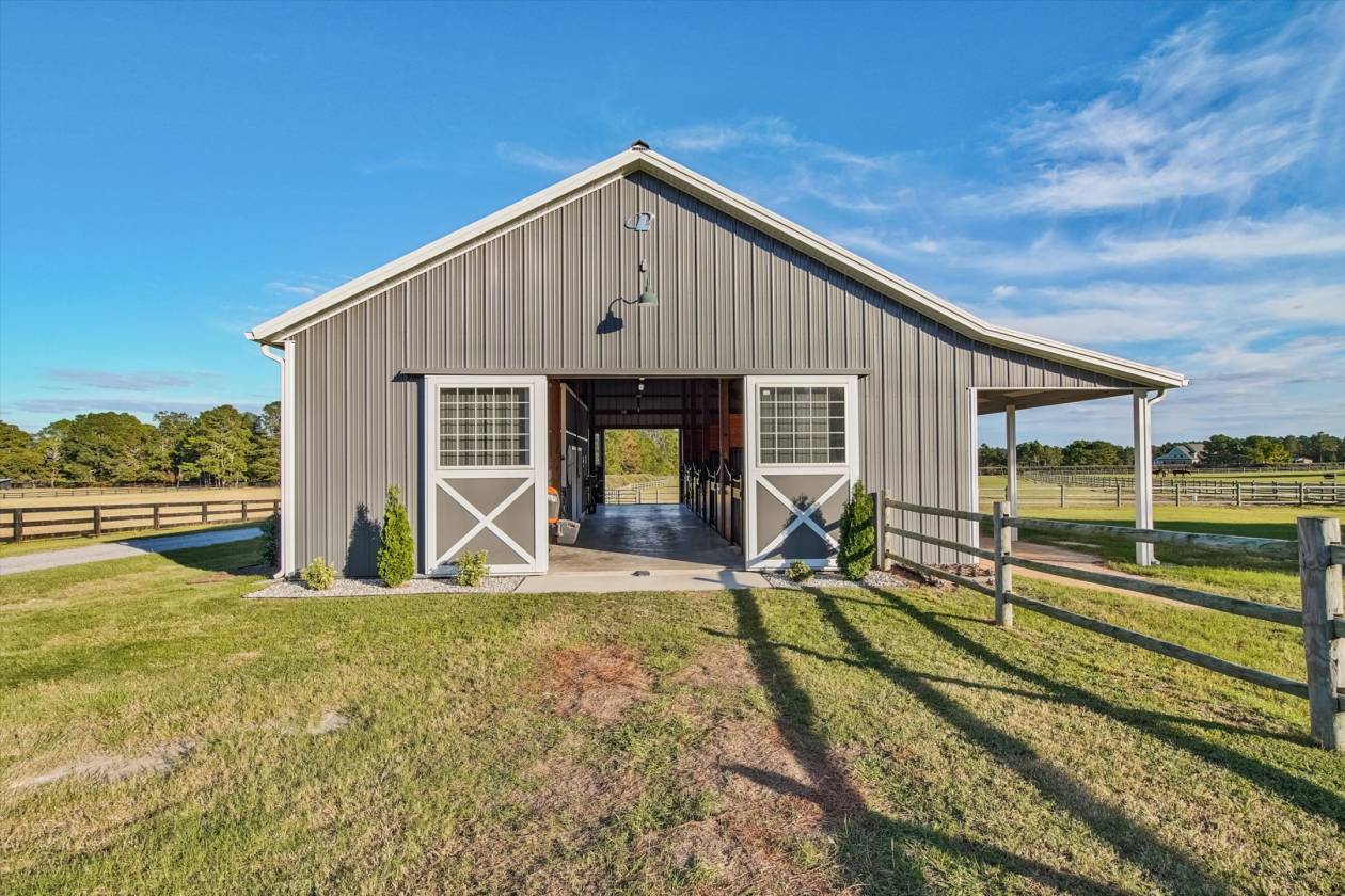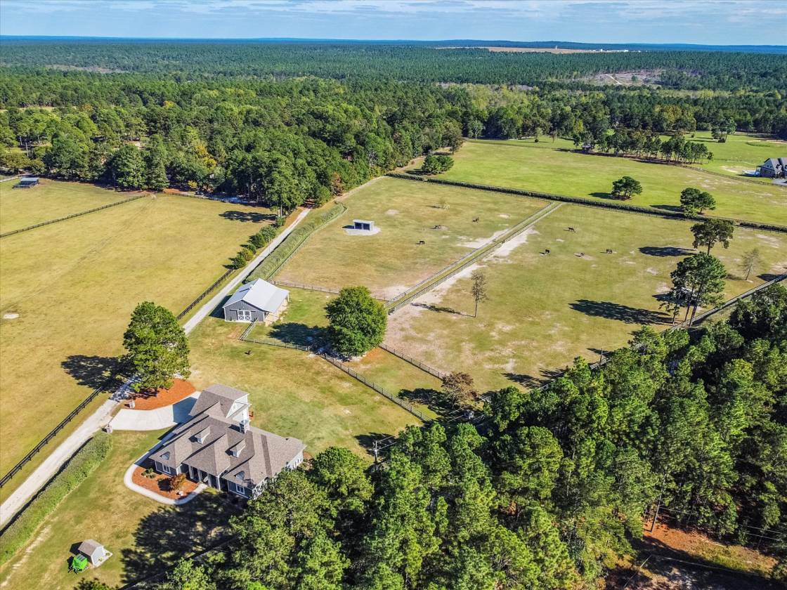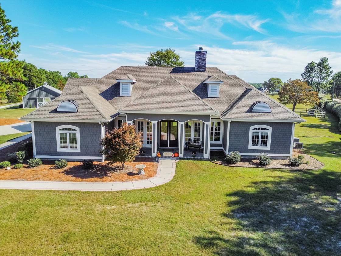 Welcome to this pretty farm in the heart of Southern Pines Horse Country! This lovely 10 + acre hobby farm established in 2020 is just off the popular Youngs Road and adjacent to the Walthour-Moss Foundation entrance. No need to load/unload/reload and drive a trailer. Simply tack up and go! WMF is a 4000 + acre preserved equine and environmental treasure in Southern Pines. Ride to your hearts content! A Sater design luxury farmhouse built by Showcase Construction in 2019-2020. This beautiful farm offers almost 3000 square feet of living area, four bedrooms and three full bathrooms. The setting is pretty, private and tranquil on just over 10 acres. Inside, the great room has a coffered ceiling, built-ins and open access to the kitchen. A see through two-sided gas fireplace, shared with the study, adds a cozy touch. The study could also be a formal dining room. Three sets of French doors open to the screened back porch and extend the living space outside with a full view of the farm. The stunning kitchen features onyx stained Yorktown cabinetry, stepped ceilings and a 13' island with leathered granite countertops. Cafe appliances include a 6 burner gas range, wall oven and microwave. Other pluses are pantry cabinets, an apron front sink, pot filler and window seat. The ceilings range from 10' to 12' high, many with specialty features creating an open luxury feel. Solid wood doors are 8' tall with 5 horizontal panels with matte black hardware. Italian (Castelvetro More Noce 8'x48') porcelain tile plank flooring throughout except carpeted guest bedrooms. The primary suite features a tray ceiling, window seat and French doors leading to the back porch. The primary bath has two vanities, a separate water closet, and a walk-in shower. Enter through French Doors into the private study next to the suite, providing a perfect place for working at home or simply enjoying a quiet conversation. A wall of built-in shelves is ideal for the book lover. On the opposite side of the house, two guest bedrooms share a full bath. Upstairs, a bonus room over the garage with a full bathroom can be used as a private suite or another bedroom and has a panoramic view of the property. See new Virtual staging pictures that show other options for an eat in dining area, a formal dining or added outside patio space. The open and airy Lester barn features 4 stalls (12x12) with European stall fronts, a wash stall, an open storage area for hay, shavings, & equipment. There are separate feed and tack rooms and both are climate controlled by a Carrier dual mini split heat pump system. The stalls have concrete floors with thick rubber mats. A 30 gallon hot water heater and a Big A$$ Fan are also part of the barns features. The very mature pastures have Drinking Post automatic waterers and 12x24 run in sheds. 3-5"round rail fencing is superbly done by Brad Charles Fencing. There is a paddock that surrounds the barn and leads out to two large pastures with Bermuda and Bahia grass with winter ryegrass planted in fall. The property is surrounded by elaeagnus hedges providing esthetics, privacy and a home to birds and bunnies. There is also a fenced in dog yard. Minutes to downtown Southern Pines and Pinehurst for excellent restaurants, shopping and golf! Other features include: Carrier heat pump 4 ton 16 SEER Foam insulation in attic significantly reduces electricity costs Ceiling fans throughout Full house 22kw 200 amp Generac generator Well house with filtration system Tankless gas water heater (9.5 gpm) 320 gallon propane tank (McNeill) Propane gas line for outdoor grill Fiber internet (Spectrum) Hardie board exterior with stone accents Concrete driveway Septic 1000 gallon Laundry room 2 car garage Screen porch No HOA Property taxes 2025: $4878 We have recently added several Virtual Staging photos to show that the office could be used as a formal dining room OR there is plenty of space IN the great room for dining as well! We also added a patio area that could extend the living space! Lots of options!