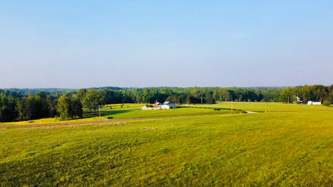 - Field on both sides of Olin Road. Lots of road frontage and views of from every angle. Half is fenced for cows near pond side, and top field is in Hay for the summer.