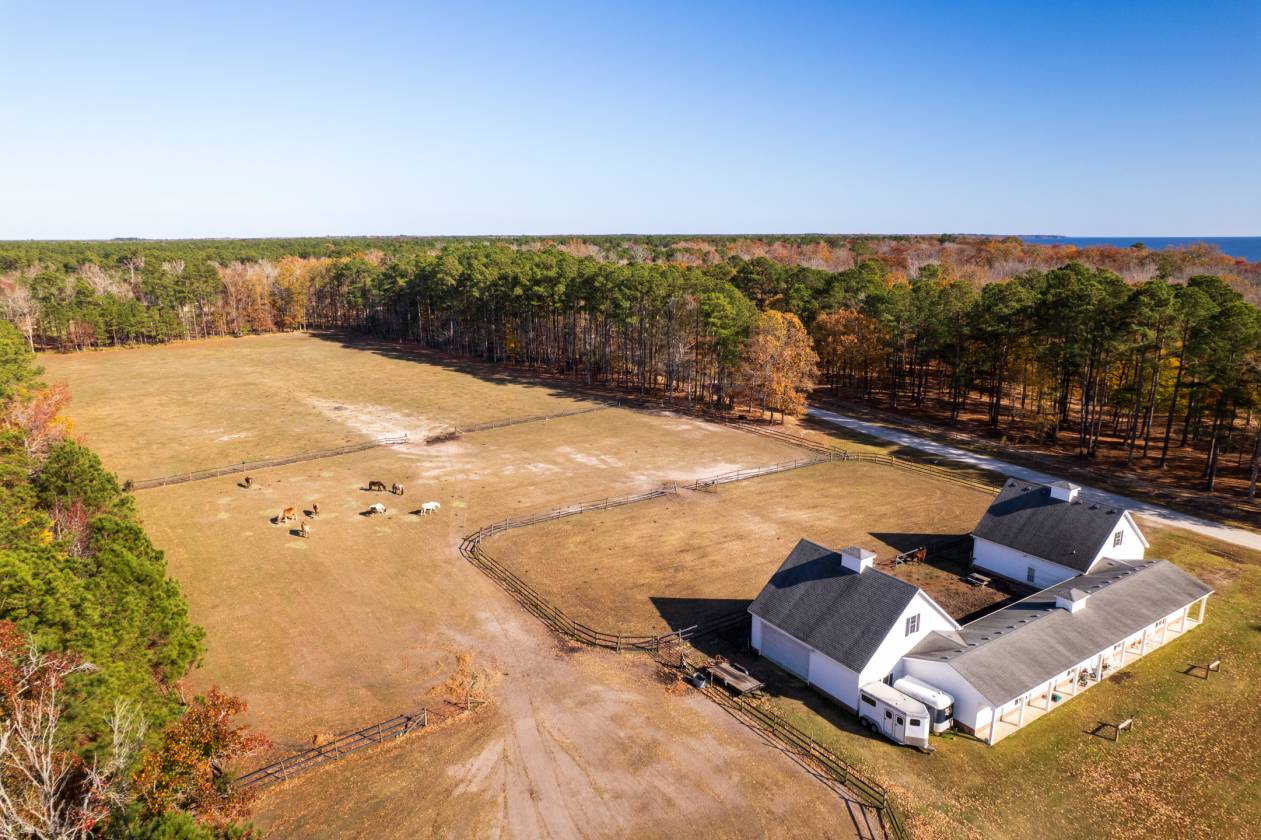 Luxury Waterfront Equine Estate -JUST LISTED! Have you ever wanted to be waterfront AND have your horses? This is a rare opportunity to have both! 4 Bedrooms (TWO en-suites, the main on the primary floor and one upstairs) 4.5 bathrooms PLUS the FROG which includes one of the full bathrooms. Approx 12 acres, nearly 400ft of water frontage, 8 stall barn, guest/in-law/barn manager apartment.. the list of features is long! Set on the Perquimans River that provides deep water access to the sound and the most spectacular sunsets. The interior provides over 4500 sqft of living space with luxury fixtures. This home features a brand new roof and new LVP flooring throughout the living space. The formal dining and study are the highlight of the foyer with waterviews from the front door and nearly every room in the house. You’ll also find a butlers pantry with new wine fridge and ice maker leading to the chef inspired gourmet kitchen. Sub-zero built-ins, large island, breakfast nook and huge water views make it a perfect place to host dinners and gatherings. Just across the front yard you’ll find nearly 12 acres and the stables, picturesque enough to hold events, yet spacious enough to create your own training arrangement if that is your dream. The guest apartment attached to the barn is perfect for a live in barn manager/on site trainer, multigenerational living, or potenial rental income. The barn itself features temperature controlled tack room, fans and filtered water in each of the 8 stalls, dedicated feed room, hay storage, equipment storage, the list is long!