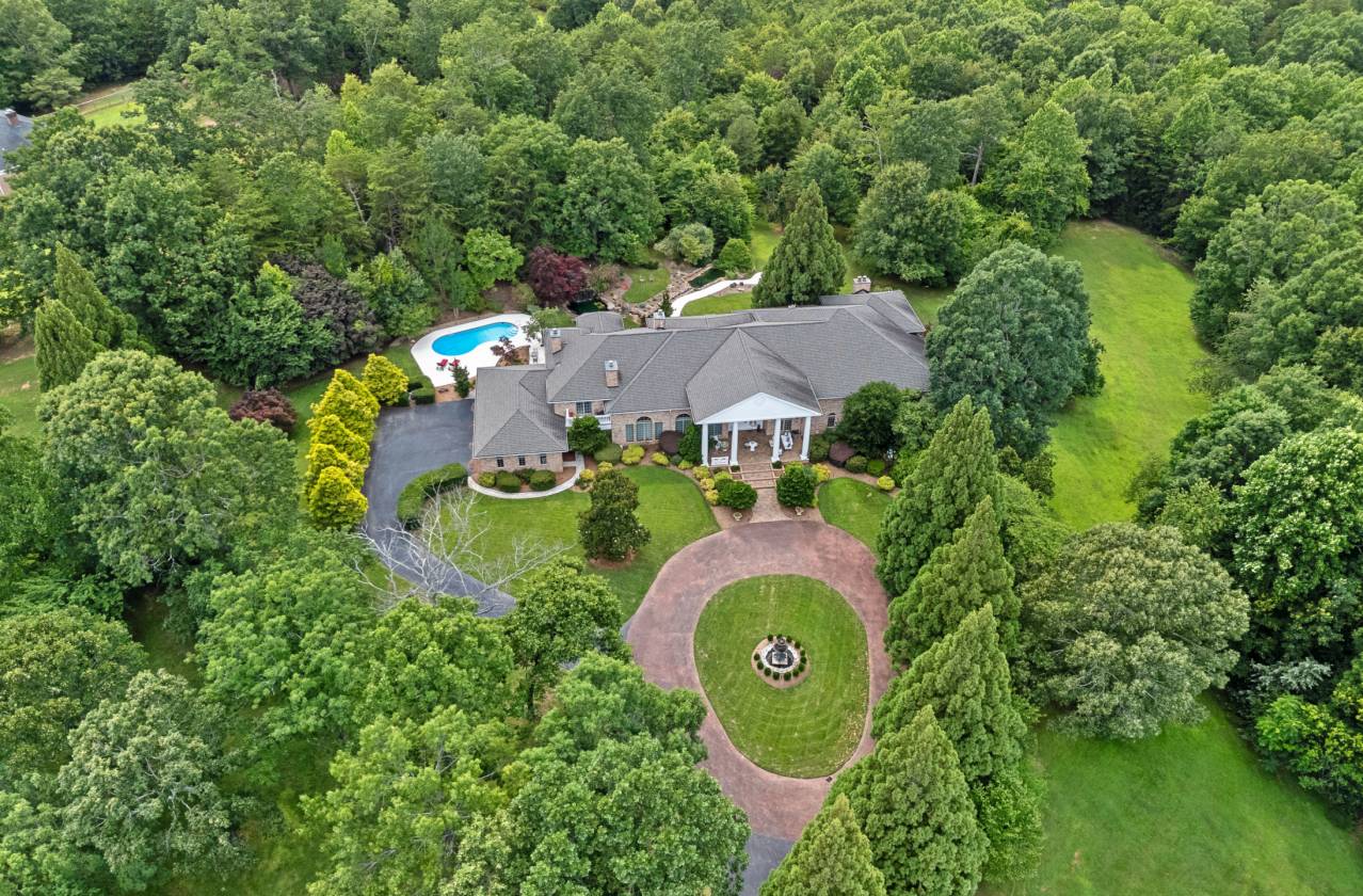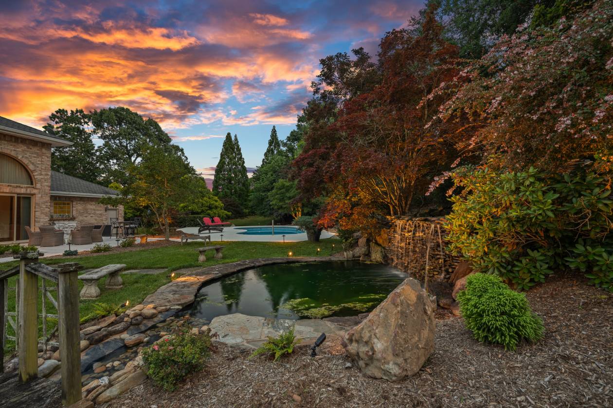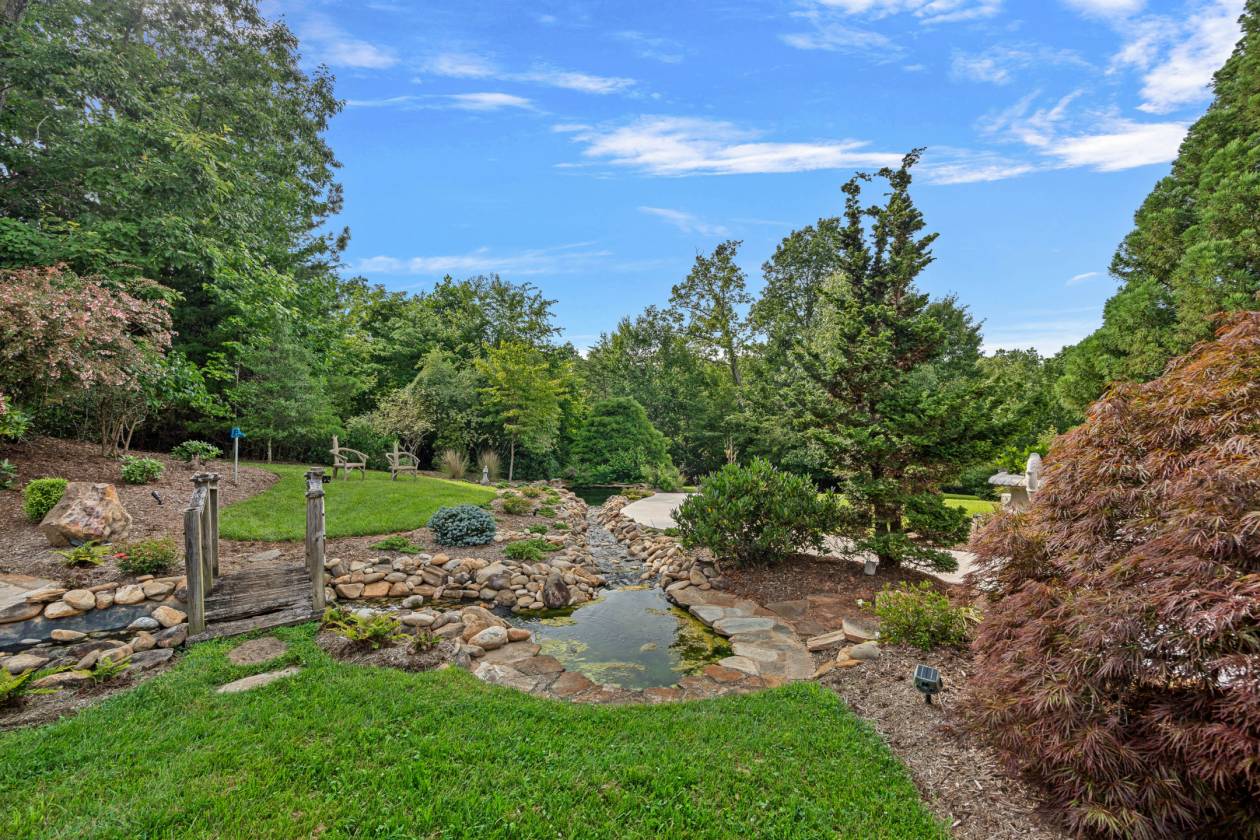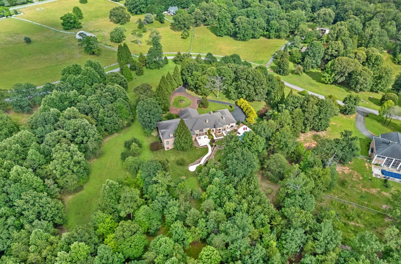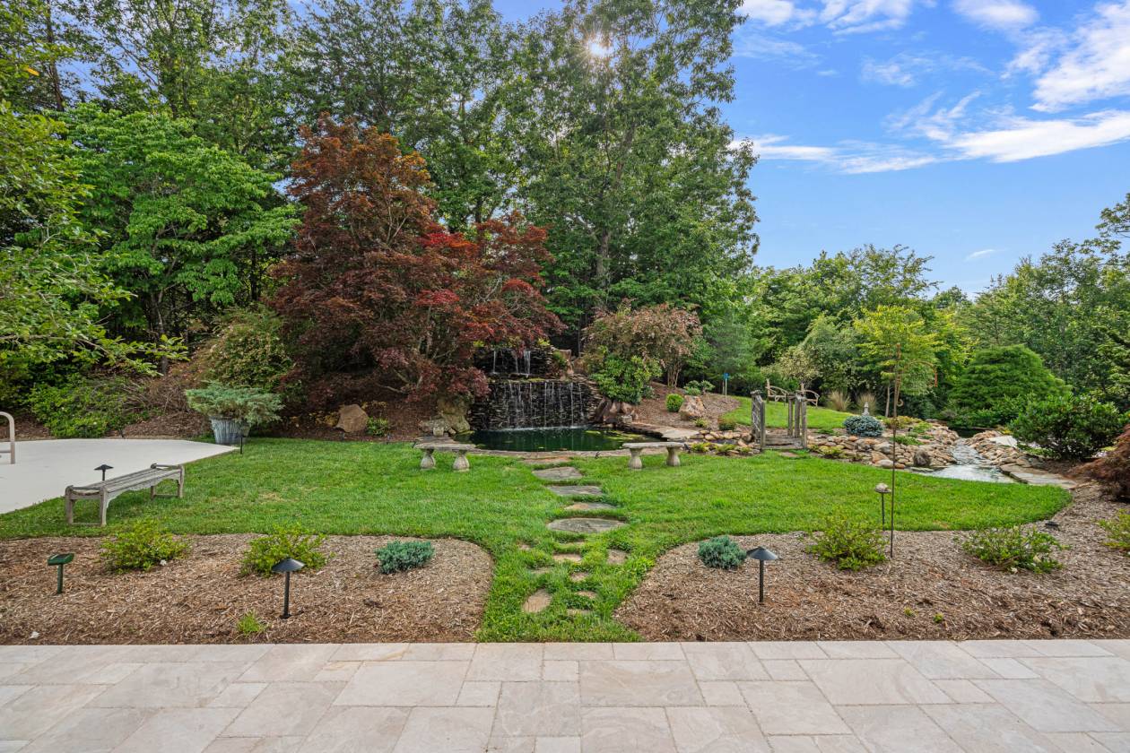 Welcome to Le Chêne D’Or, an exceptional private estate spanning more than 14 acres in the prestigious Equestrian Estates community. Enveloped by manicured grounds with a tranquil pond, waterfall, and direct access to FETA riding trails, this residence captures the romance and refined sophistication of classic European architecture. From the moment you pass through the gates and approach the circular drive framed by a bronze fountain, every detail evokes elegance. The grand front porch opens to a soaring foyer with 20-foot ceilings, bathing the interiors in natural light. Spanning over 9,500 square feet, the home offers five fireplaces, Jerusalem-stone terraces, and resort-style outdoor living with a pool and generous lounge areas ideal for both quiet retreat and grand entertaining. The gourmet chef’s kitchen features a Sub-Zero refrigerator, gas range with custom hood, large island with prep sink, and a sunlit breakfast room overlooking the waterfall, all seamlessly connected to a warm great room with a fireplace and wet bar. The living room’s floor-to-ceiling windows frame sweeping views of the terrace and landscaped grounds. The primary suite is a true sanctuary, with its own fireplace, built-ins, dual custom closets, and a spa-inspired bath featuring cultured-marble vanities, jetted tub, and walk-in shower. Each additional bedroom offers a private ensuite. A richly detailed office, private upper-level room with Juliet balcony, and a lower-level entertainment area with full bar, billiard room, and flex space complete the interior. Additional highlights include an air-conditioned storage area, four-car garage, and proximity to premier destinations such as Tryon International Equestrian Center, Lake Lure, Chimney Rock, Greenville, Asheville, local airports, vineyards, and scenic parks, all within the rolling foothills of the Blue Ridge Mountains. Le Chêne D’Or is more than a home, it is an enduring statement of elegance, craftsmanship, and tranquility.