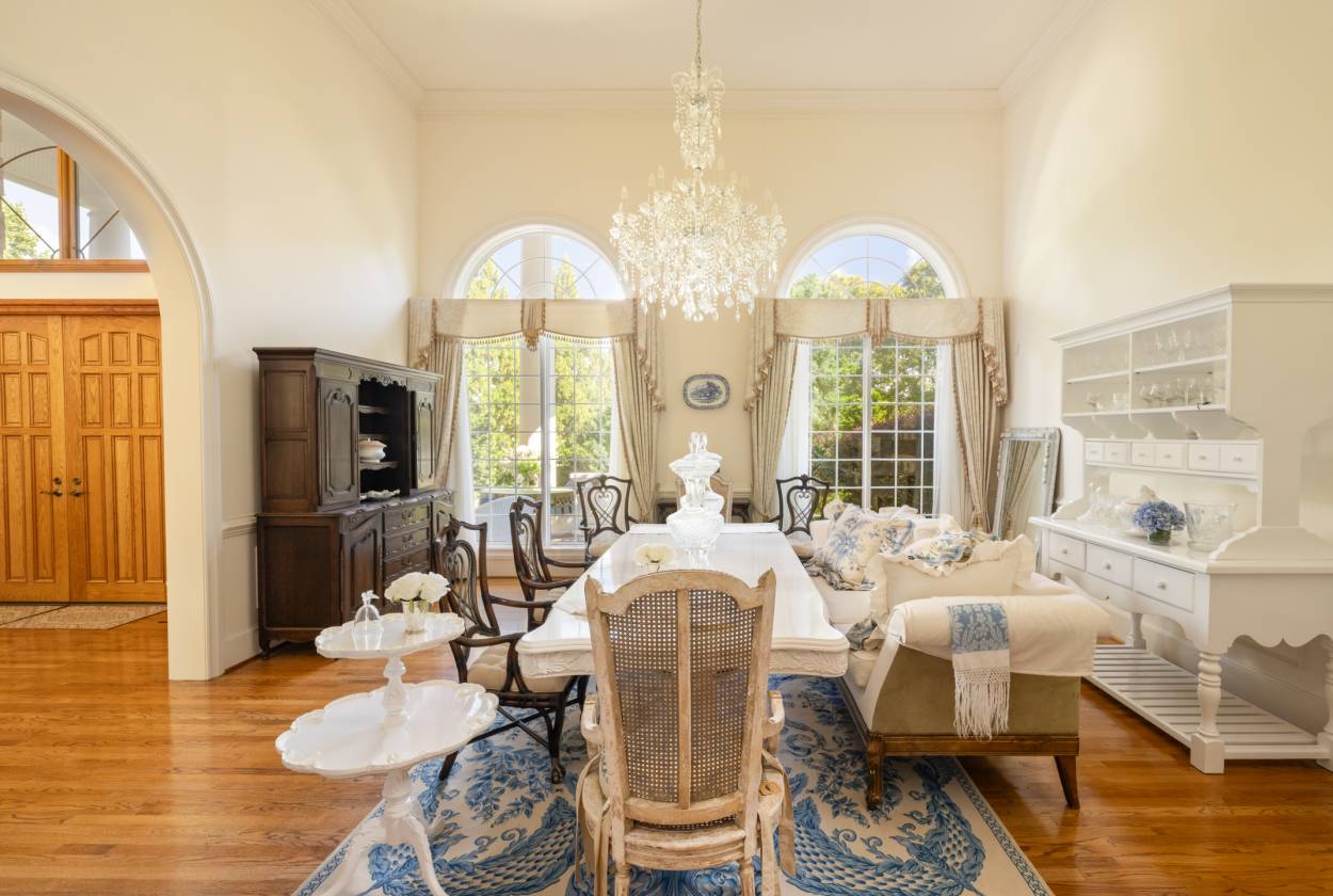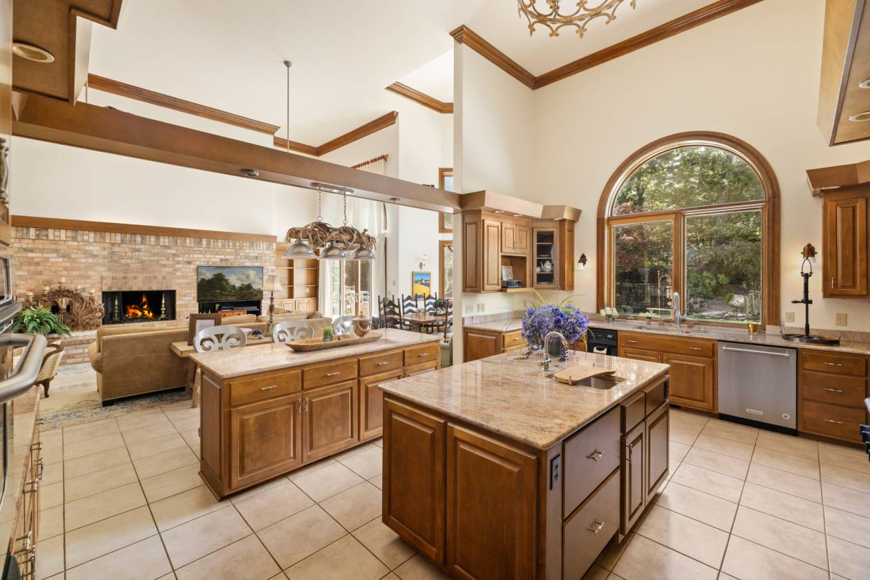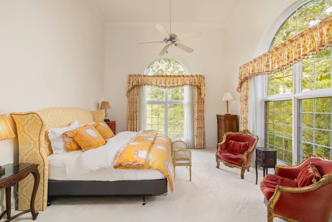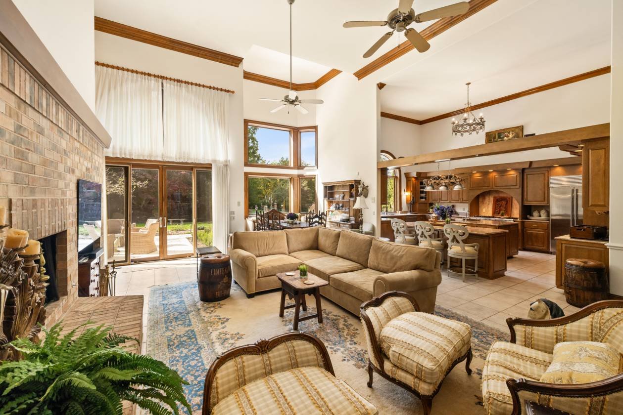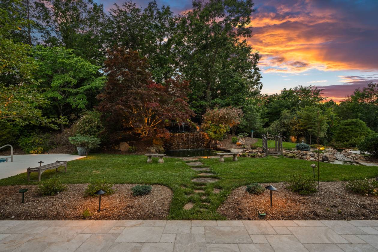 Welcome to Le Chêne D’Or, an exceptional private estate spanning more than 14 acres in the prestigious Equestrian Estates community. Enveloped by manicured grounds with a tranquil pond, waterfall, and direct access to FETA riding trails, this residence captures the romance and refined sophistication of classic European architecture. From the moment you pass through the gates and approach the circular drive framed by a bronze fountain, every detail evokes elegance. The grand front porch opens to a soaring foyer with 20-foot ceilings, bathing the interiors in natural light. Spanning over 9,500 square feet, the home offers five fireplaces, Jerusalem-stone terraces, and resort-style outdoor living with a pool and generous lounge areas ideal for both quiet retreat and grand entertaining. The gourmet chef’s kitchen features a Sub-Zero refrigerator, gas range with custom hood, large island with prep sink, and a sunlit breakfast room overlooking the waterfall, all seamlessly connected to a warm great room with a fireplace and wet bar. The living room’s floor-to-ceiling windows frame sweeping views of the terrace and landscaped grounds. The primary suite is a true sanctuary, with its own fireplace, built-ins, dual custom closets, and a spa-inspired bath featuring cultured-marble vanities, jetted tub, and walk-in shower. Each additional bedroom offers a private ensuite. A richly detailed office, private upper-level room with Juliet balcony, and a lower-level entertainment area with full bar, billiard room, and flex space complete the interior. Additional highlights include an air-conditioned storage area, four-car garage, and proximity to premier destinations such as Tryon International Equestrian Center, Lake Lure, Chimney Rock, Greenville, Asheville, local airports, vineyards, and scenic parks, all within the rolling foothills of the Blue Ridge Mountains. Le Chêne D’Or is more than a home, it is an enduring statement of elegance, craftsmanship, and tranquility.