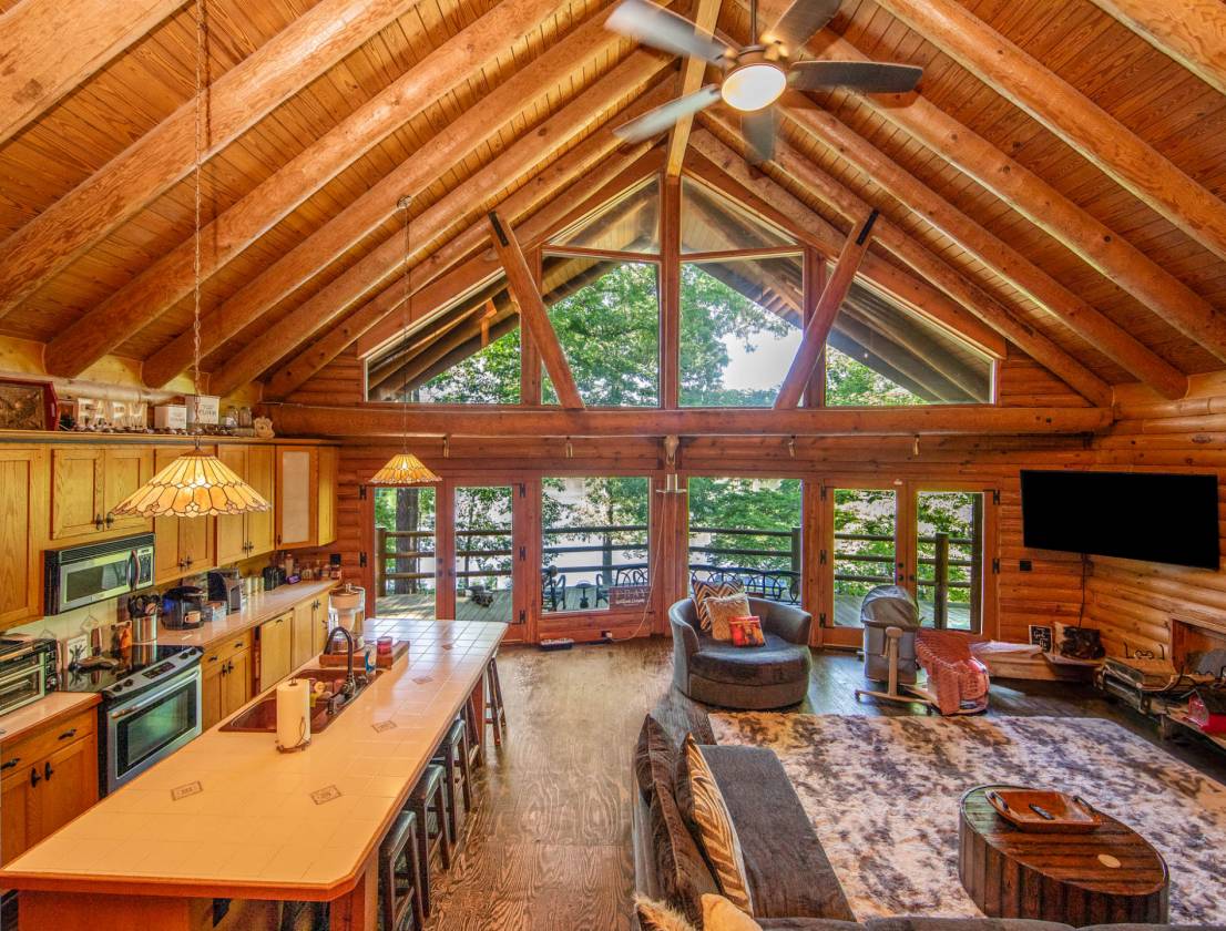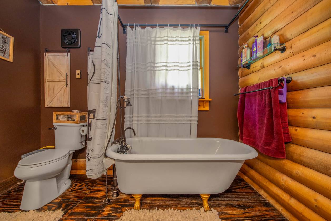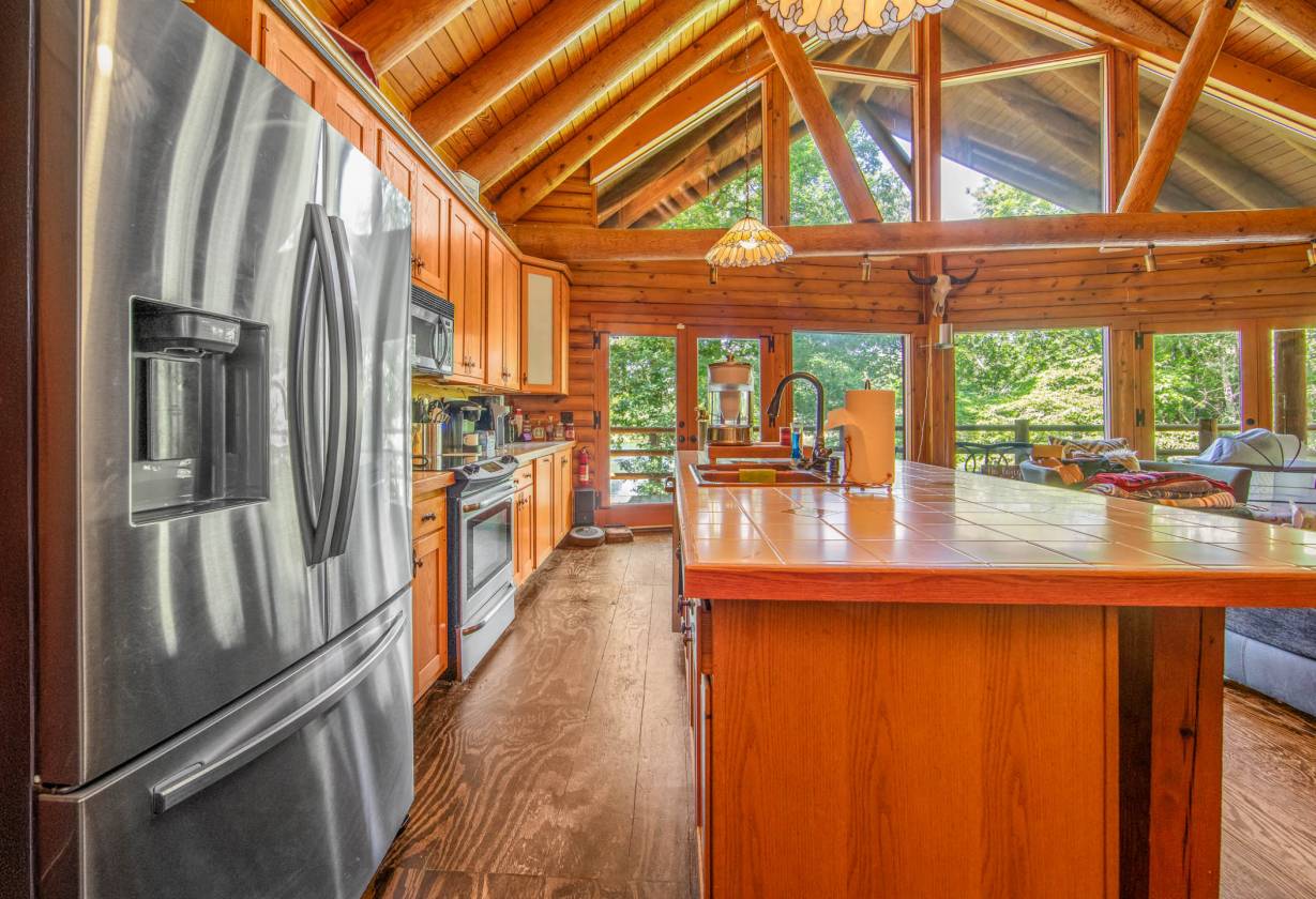 Updated Price! Two private lots have been combined into 14.5 acres of serene breathtaking oasis. This one of a kind log cabin with water views and fenced horse pastures is move in ready. Large open living space includes two story vaulted ceilings, wood burning fireplace, and kitchen overlooking main living area. Kitchen area boasts an oversized tile island, bar seating area, stainless appliances, and eat in area. Two bedrooms and full bath located on the main floor. Third floor features a grand master loft overlooking the main living space for the owners to enjoy with walk in closet, dual vanity sinks, and large clawfoot tub/shower combo. Bottom floor boasts a large finished bonus area with ample storage and functioning wood burning stove, 4th bedroom, laundry, and 1/2 bath. Outdoor area includes a large 2 story wired shed and a small tack shed for horse accessories. 8 full acres of fenced pasture includes an electric fence and pole barn. This private homestead won't last long! The home is close to the Rockingham Speedway and the new Amazon location.