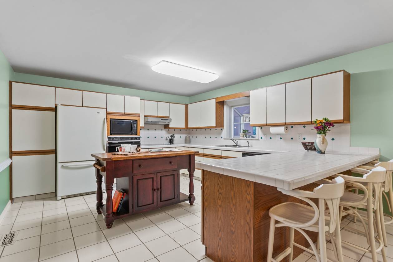 • Kitchen has tile flooring and ample counter/ cabinet space