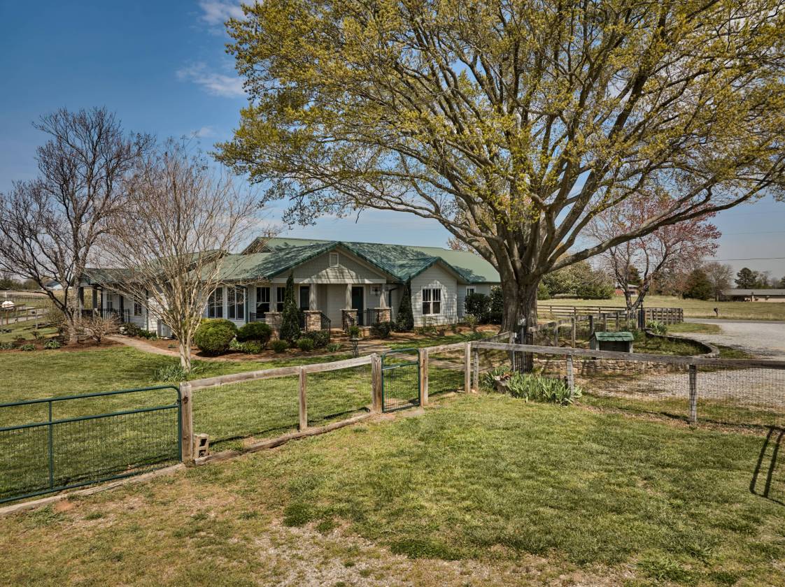 Discover timeless elegance and modern comfort in this beautifully restored 1929 home nestled on 20 fully fenced acres with 2 barns. This unique property offers the best of country living with high-end equestrian facilities, incredible views, and modern conveniences—an exceptional opportunity to own a turnkey horse property in the heart of NC horse country. Renovated to the studs in 2013, this home blends classic charm with updated sophistication, from beadboard ceilings, hardwood floors to curated modern touches in the primary, kitchen, and baths. Multiple turnouts, run-ins, hacking lanes, and a shared pond. Round pen and a large arena, circle drive for large rig access and parking. 4-stall center aisle barn with loft, washrack, feedroom, shaving storage. 8+ stall shed row barn includes tackroom, 2 tacking stalls, washrack, & equipment storage. Layout has been designed for true efficiency and ease. Just 15 minutes to TIEC. 40 mins to Greenville-Spartanburg Intl Airport.