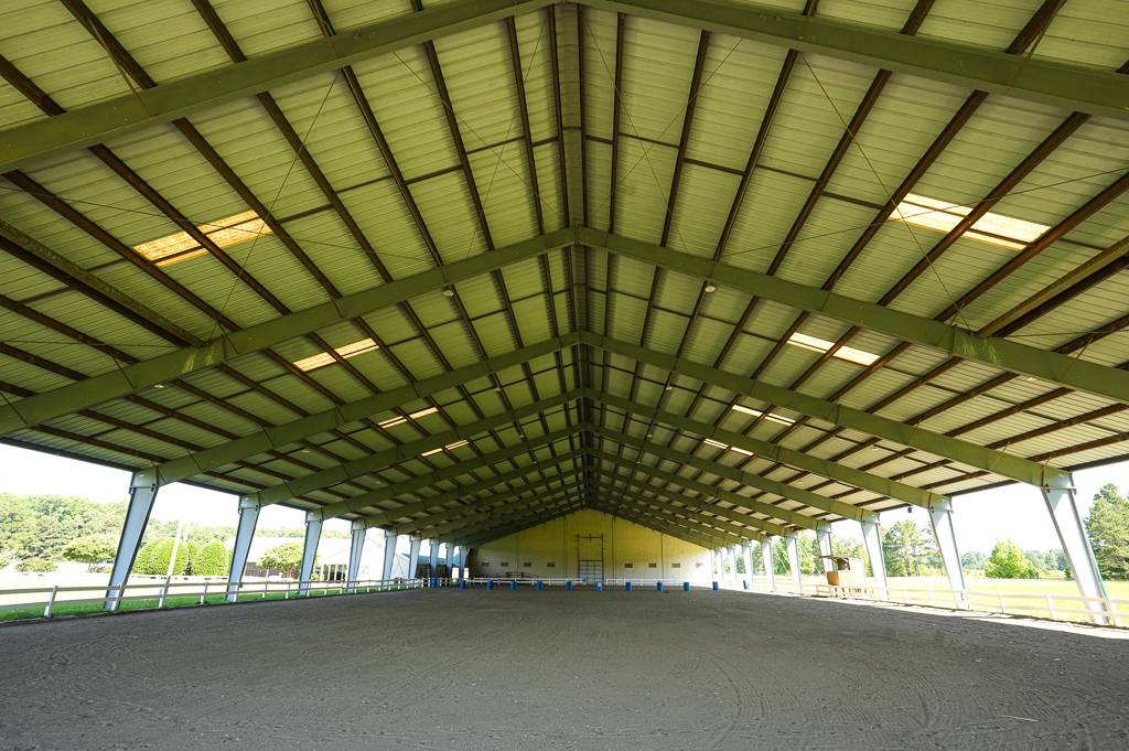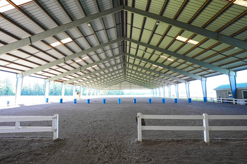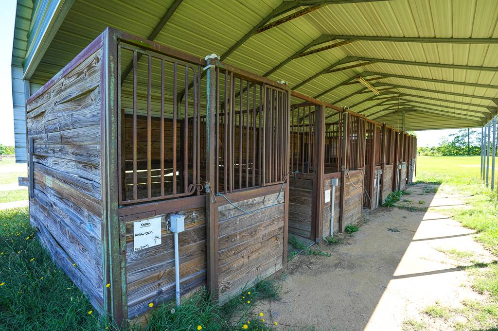 The comprehensive infrastructure includes a lounge, office, bathrooms, classrooms, tack rooms, feed rooms, and locker space for boarders, as well as outdoor wash racks for ultimate convenience. A three-bedroom home, detached shop/garage, and ample feed and hay storage complement the property.