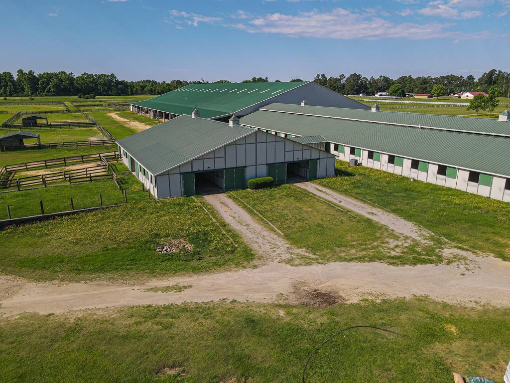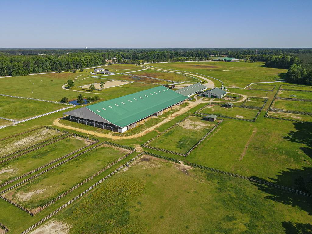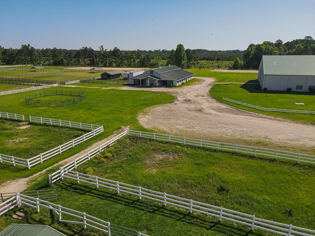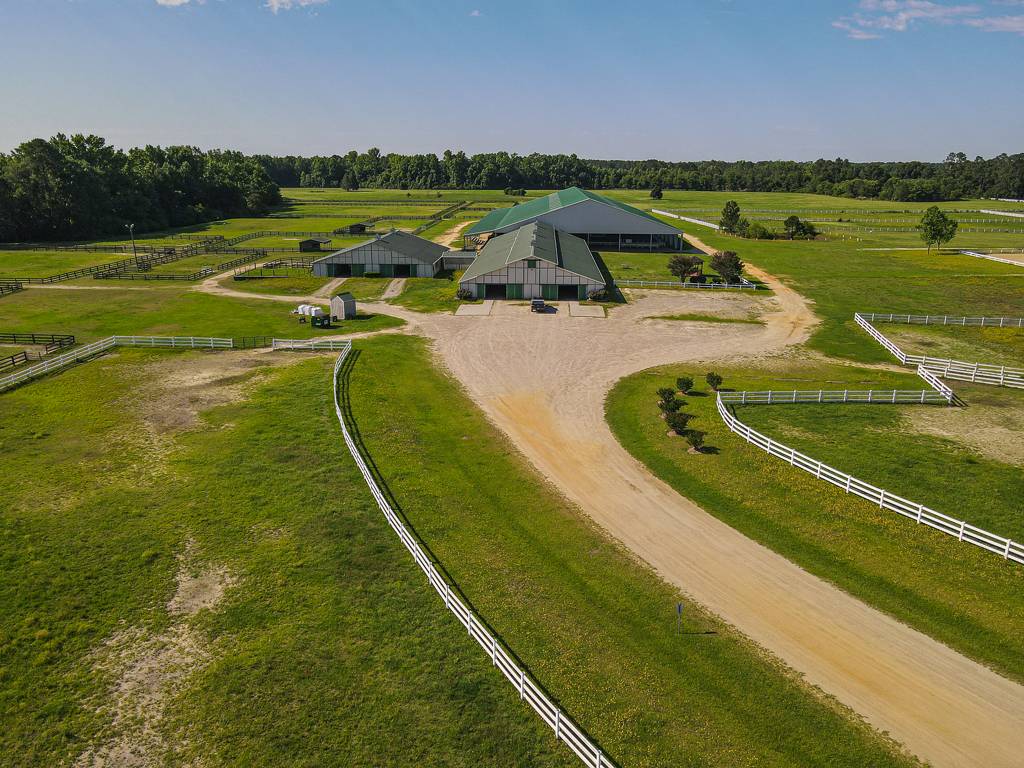 Unlock the potential of this gated 278 acre equestrian facility, designed for both professional and recreational riders alike. Established pastures and turnouts, lined with pristine white vinyl fencing, create a stunning and functional landscape. The state-of-the-art facility boasts 122 stalls across multiple barns, along with two covered riding arenas, one indoor arena, one dressage arena, and two outdoor arenas; perfect for training, competitions, and events.