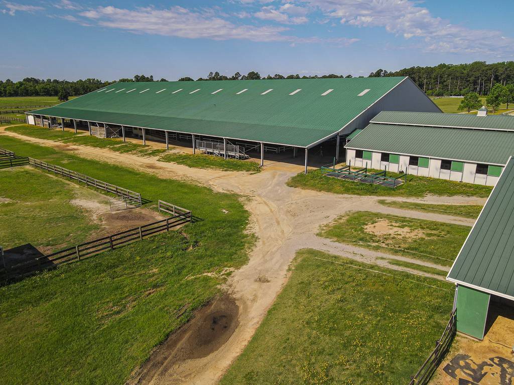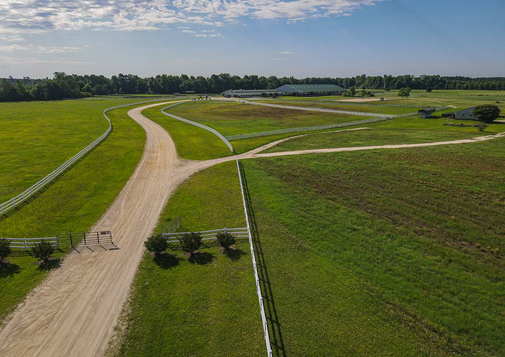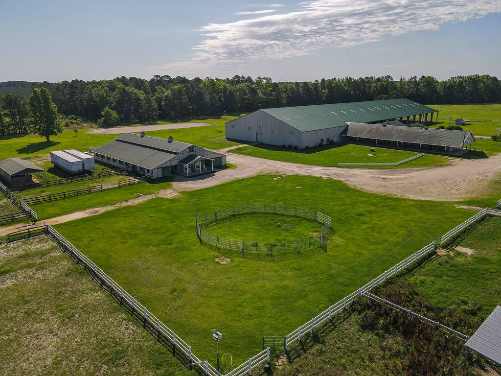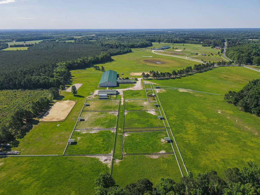 Unlock the potential of this gated 278 acre equestrian facility, designed for both professional and recreational riders alike. Established pastures and turnouts, lined with pristine white vinyl fencing, create a stunning and functional landscape. The state-of-the-art facility boasts 122 stalls across multiple barns, along with two covered riding arenas, one indoor arena, one dressage arena, and two outdoor arenas; perfect for training, competitions, and events.