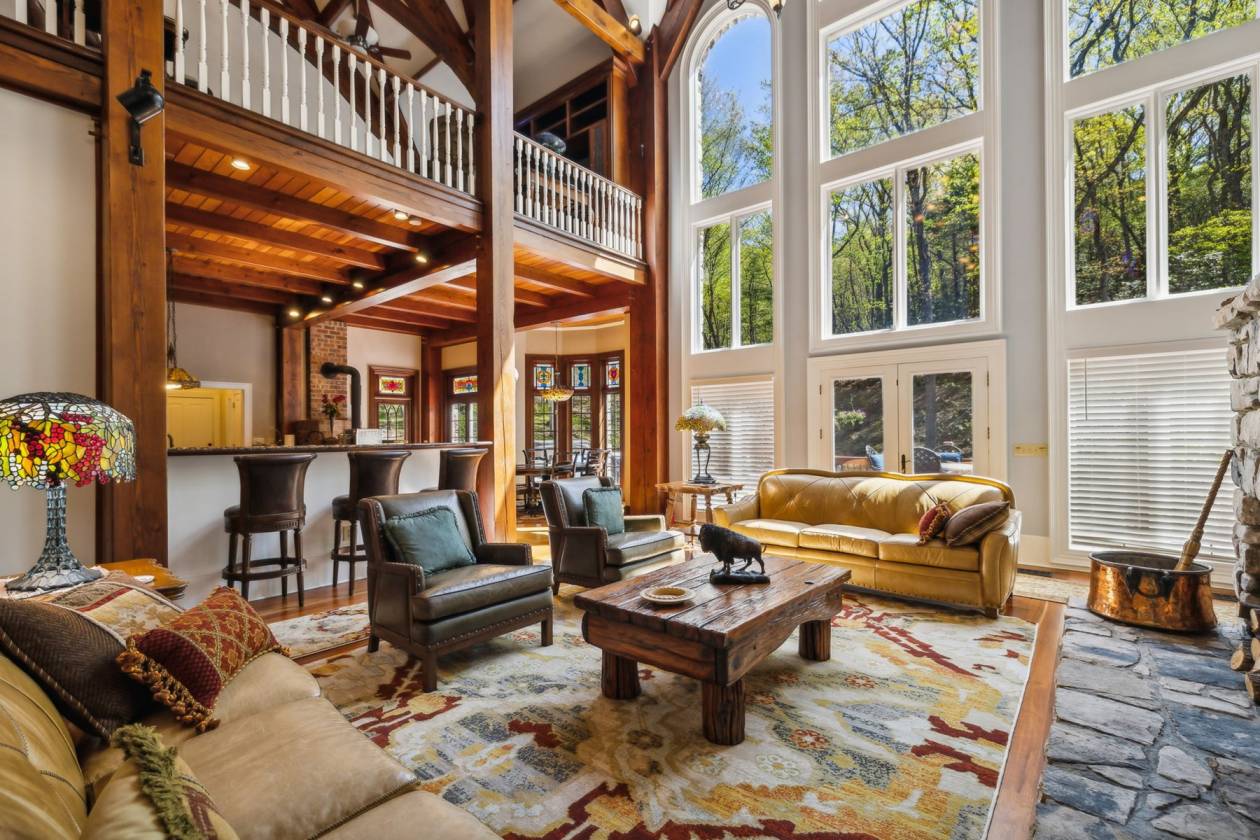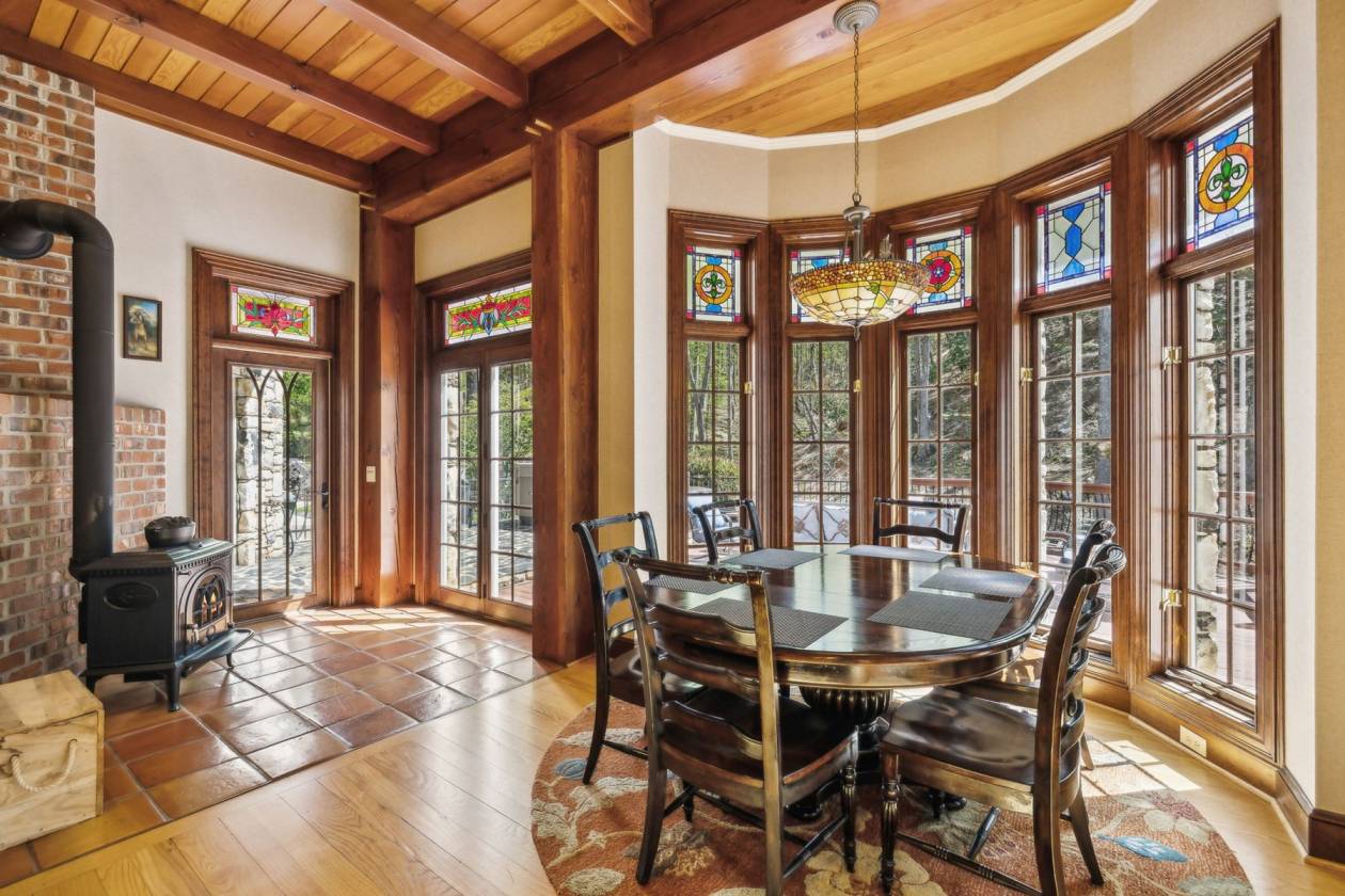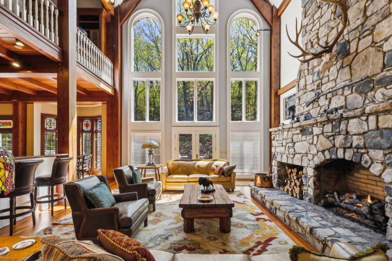 Exclusive Property with Extensive Acreage Exquisite Estate with Prime Location Near Blue Ridge Parkway: Rarely does a property of this magnitude and acreage become available on the market. Located near Boone, NC, and the Blue Ridge Parkway, this legacy estate offers unparalleled privacy, breathtaking mountain views, and an array of luxurious features. The estate is easily accessible via the Wilkes County Airport, making it a convenient retreat for those seeking a high-end lifestyle. Key Property Details: 128 Deeded Acres: The land is under a forest management plan, providing tax advantages. The property features beautiful fields suitable for horses or cattle, with potential for additional pastureland through selective clearing. Water Features: Two year-round, spring-fed streams flow from the Blue Ridge Mountains, encircling the home and ensuring a reliable water source. There are also locations for two potential ponds, which could be fed by a third spring. Wildlife: The estate is home to abundant wildlife, including deer and turkey habitats, providing excellent opportunities for nature observation and hunting. Privacy: Private gated and coded entrance with a 12-foot wide, all-concrete driveway, complete with timed lights along the driveway and water spigots for landscaping needs. For the savvy business-minded individual, this property presents a unique opportunity for a 1031 exchange. The home sits on 9.96 acres, with an additional 118.2 acres of remaining land that could be utilized for a tax-deferred exchange, offering potential investment benefits and portfolio diversification. Please note: The property will not be divided and must be sold as a whole 128-acre parcel; however, the option remains for the 118.2 acres to be applied toward a 1031 exchange. Estate Home Specifications: Cumberland Fieldstone Timber-Frame Home: This three-level home boasts a total gross living area of 7,664 sq ft, with a total footprint of 9,208 sq ft. Bedrooms and Bathrooms: 5 bedrooms and 5 bathrooms, with 12-foot ceilings in the main level rooms and bedrooms. Great Room: A stunning 38-foot ceiling with a stone fireplace and a mahogany entertainment center, featuring ornate timber framing and stained-glass windows. Master Suite: Includes built-in cabinets with a gas fireplace and fan blower, his-and-her baths, a jetted tub, three sinks, a bidet, heated floors, a towel warmer, and dual closets. The suite connects to the sunroom and a large wood and slate patio with a hot tub, offering serene views and sounds of the mountain stream. Kitchen: Chef's kitchen with a wood-burning stove, breakfast nook, and two pantries. Dining Room: Features extensive molding, built-in cabinets, and new custom wallpaper. Sunroom: Recently updated with new custom wallpaper, connecting nature indoors. Upstairs: Includes a bonus room that can be converted into a sixth bedroom, a wet bar with a refrigerator, two closets (one of which is cedar-lined), a full bath, and a loft with a built-in media area. Basement and Additional Features: Walkout Basement: The outside walkout area features tongue-and-groove ceilings. The basement provides ample storage, an additional storm shelter, and a utility room with access to the crawl space, which is in the dry with a poured concrete floor and a humidifier. It includes a full kitchen, laundry, family room with a gas fireplace, three bedrooms with 10-foot ceilings, and one full bath with new custom wallpaper. Utilities and Infrastructure: The property features a geothermal system with six units, lifetime warranty on the GAF roof, copper gutters with leaf guards, a 4.3 engine Winco generator, two 80-gallon water heaters, and 5G Fiber Optic internet with Wilkes Communication. All utilities are underground. The home is equipped with a 600 amp electrical system. Landscape and Outdoor Features: Immaculate and artistically designed landscaping, including Japanese trees, apple tree, dogwoods, persimmons, and rhododendrons. The property also has eight water hoses around the home and slate sidewalks. Additional Amenities: Barn: Includes a two-car garage and loft. 3-Car Garage: The garage features 8-foot-high doors to accommodate large vehicles and trucks. Outdoor Living: Large wood and slate patio with a hot tub, perfect for enjoying the natural surroundings. Office/Study: Private space with built-in shelving and a gas fireplace. Laundry: Tankless water heater in the basement laundry room. This one-of-a-kind mountain retreat is not only a luxurious residence but also a wise investment opportunity. It would be hard to duplicate a home with these features, including a full stone exterior and timber frame, at today's costs. The property offers a blank slate for further development, whether for additional pastureland or personal enhancements. Its combination of seclusion, natural beauty, and high-end amenities makes it an exceptional estate for those seeking an extraordinary lifestyle. *All fireplaces in the home could be converted back to wood-burning.