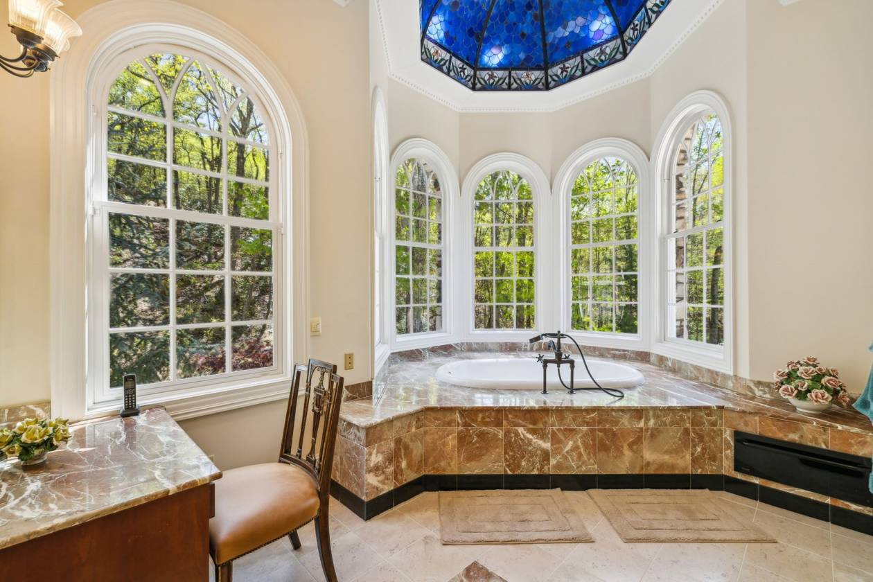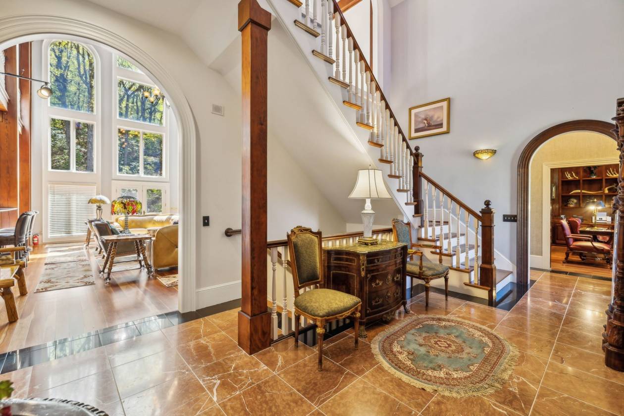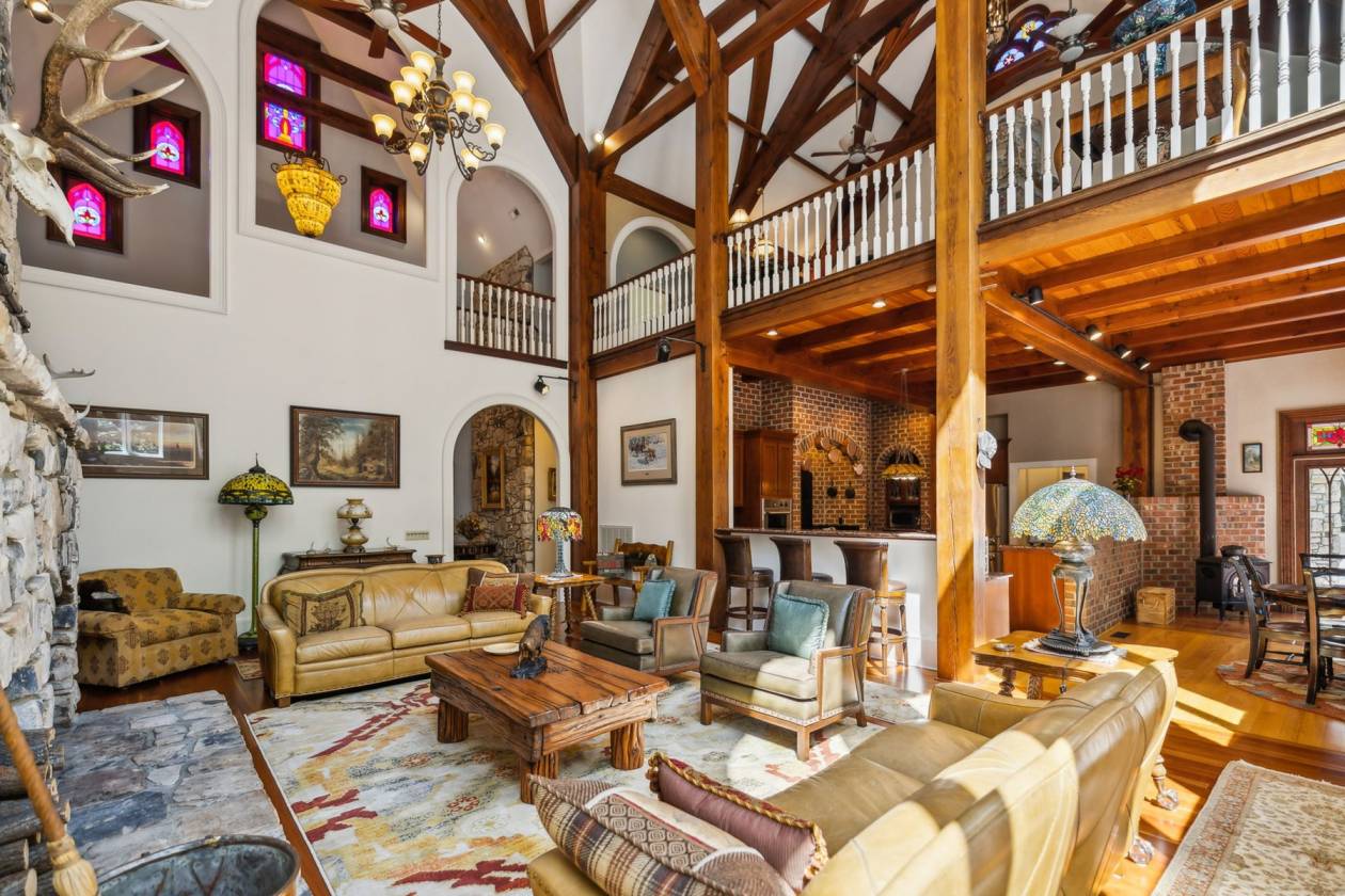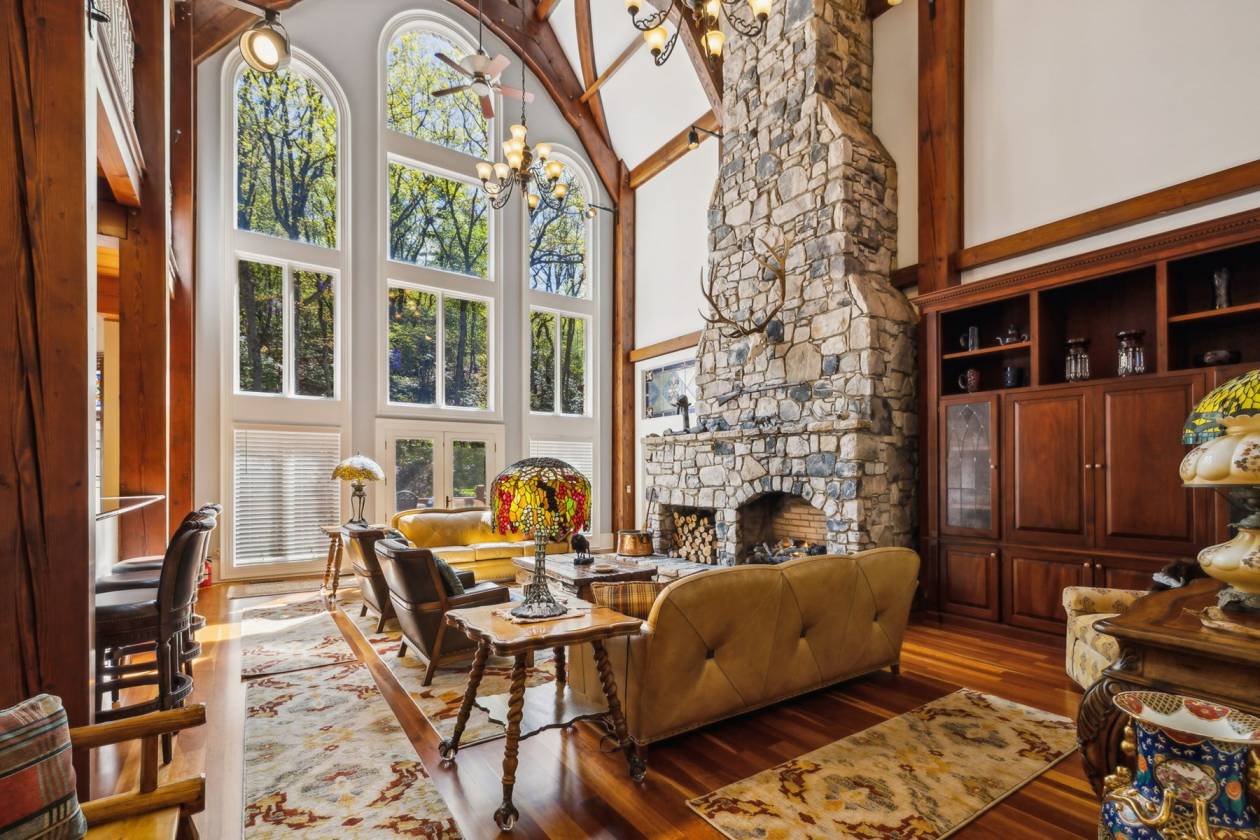 Exclusive Property with Extensive Acreage Exquisite Estate with Prime Location Near Blue Ridge Parkway: Rarely does a property of this magnitude and acreage become available on the market. Located near Boone, NC, and the Blue Ridge Parkway, this legacy estate offers unparalleled privacy, breathtaking mountain views, and an array of luxurious features. The estate is easily accessible via the Wilkes County Airport, making it a convenient retreat for those seeking a high-end lifestyle. Key Property Details: 128 Deeded Acres: The land is under a forest management plan, providing tax advantages. The property features beautiful fields suitable for horses or cattle, with potential for additional pastureland through selective clearing. Water Features: Two year-round, spring-fed streams flow from the Blue Ridge Mountains, encircling the home and ensuring a reliable water source. There are also locations for two potential ponds, which could be fed by a third spring. Wildlife: The estate is home to abundant wildlife, including deer and turkey habitats, providing excellent opportunities for nature observation and hunting. Privacy: Private gated and coded entrance with a 12-foot wide, all-concrete driveway, complete with timed lights along the driveway and water spigots for landscaping needs. For the savvy business-minded individual, this property presents a unique opportunity for a 1031 exchange. The home sits on 9.96 acres, with an additional 118.2 acres of remaining land that could be utilized for a tax-deferred exchange, offering potential investment benefits and portfolio diversification. Please note: The property will not be divided and must be sold as a whole 128-acre parcel; however, the option remains for the 118.2 acres to be applied toward a 1031 exchange. Estate Home Specifications: Cumberland Fieldstone Timber-Frame Home: This three-level home boasts a total gross living area of 7,664 sq ft, with a total footprint of 9,208 sq ft. Bedrooms and Bathrooms: 5 bedrooms and 5 bathrooms, with 12-foot ceilings in the main level rooms and bedrooms. Great Room: A stunning 38-foot ceiling with a stone fireplace and a mahogany entertainment center, featuring ornate timber framing and stained-glass windows. Master Suite: Includes built-in cabinets with a gas fireplace and fan blower, his-and-her baths, a jetted tub, three sinks, a bidet, heated floors, a towel warmer, and dual closets. The suite connects to the sunroom and a large wood and slate patio with a hot tub, offering serene views and sounds of the mountain stream. Kitchen: Chef's kitchen with a wood-burning stove, breakfast nook, and two pantries. Dining Room: Features extensive molding, built-in cabinets, and new custom wallpaper. Sunroom: Recently updated with new custom wallpaper, connecting nature indoors. Upstairs: Includes a bonus room that can be converted into a sixth bedroom, a wet bar with a refrigerator, two closets (one of which is cedar-lined), a full bath, and a loft with a built-in media area. Basement and Additional Features: Walkout Basement: The outside walkout area features tongue-and-groove ceilings. The basement provides ample storage, an additional storm shelter, and a utility room with access to the crawl space, which is in the dry with a poured concrete floor and a humidifier. It includes a full kitchen, laundry, family room with a gas fireplace, three bedrooms with 10-foot ceilings, and one full bath with new custom wallpaper. Utilities and Infrastructure: The property features a geothermal system with six units, lifetime warranty on the GAF roof, copper gutters with leaf guards, a 4.3 engine Winco generator, two 80-gallon water heaters, and 5G Fiber Optic internet with Wilkes Communication. All utilities are underground. The home is equipped with a 600 amp electrical system. Landscape and Outdoor Features: Immaculate and artistically designed landscaping, including Japanese trees, apple tree, dogwoods, persimmons, and rhododendrons. The property also has eight water hoses around the home and slate sidewalks. Additional Amenities: Barn: Includes a two-car garage and loft. 3-Car Garage: The garage features 8-foot-high doors to accommodate large vehicles and trucks. Outdoor Living: Large wood and slate patio with a hot tub, perfect for enjoying the natural surroundings. Office/Study: Private space with built-in shelving and a gas fireplace. Laundry: Tankless water heater in the basement laundry room. This one-of-a-kind mountain retreat is not only a luxurious residence but also a wise investment opportunity. It would be hard to duplicate a home with these features, including a full stone exterior and timber frame, at today's costs. The property offers a blank slate for further development, whether for additional pastureland or personal enhancements. Its combination of seclusion, natural beauty, and high-end amenities makes it an exceptional estate for those seeking an extraordinary lifestyle. *All fireplaces in the home could be converted back to wood-burning.