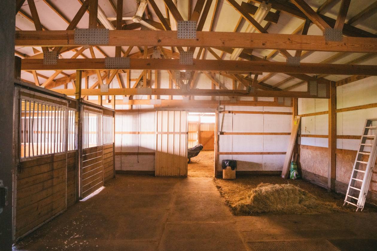 - • 36x50 pole barn for more stalls with or without runs or storage for hay, equipment and has an automatic waterer