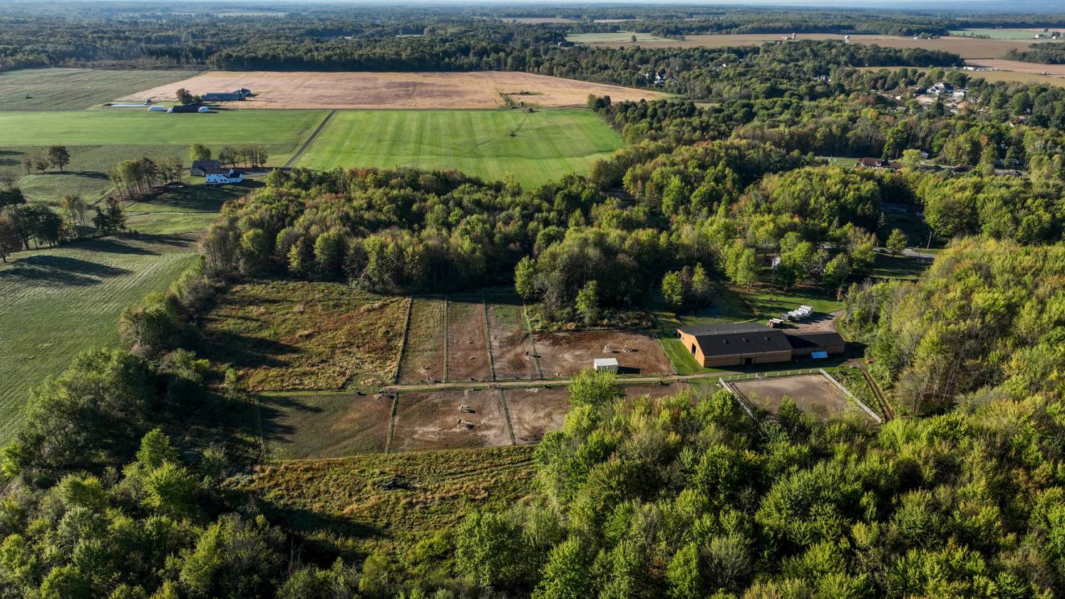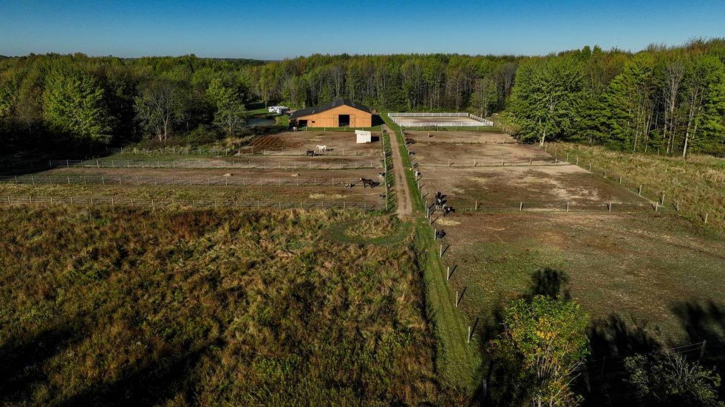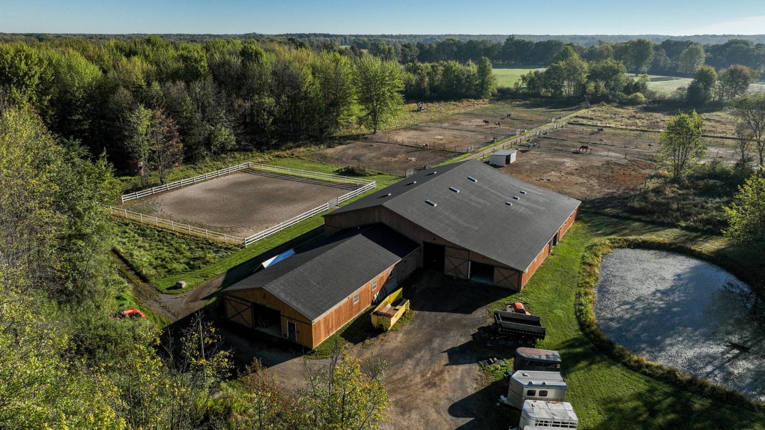 Exceptional Equestrian Property in Roaming Shores. This beautiful estate offers a unique blend of luxury living and equestrian amenities on 20 acres. The main home features four bedrooms, two full baths, and two half baths, overlooking the equestrian center. A multi-generational addition (completed in 2022) includes its own private deck and a fully finished basement—perfect for extended family or guests. For horse enthusiasts, the property boasts a barn with 18 stalls, 60x100 indoor riding arena, and a wash rack with hot and cold running water. Additional features include 100x120 outdoor riding arena and eight separate turnouts (one wih a run-in shed), with space to add more turnouts if desired. Located in the desirable community of Roaming Shores, you’ll enjoy access to Lake Roaming Rock—the largest private-access lake in Ohio—ideal for boating, kayaking, and fishing. The community also offers two pools, two playgrounds, and a marina. Adding to its value, the property comes with free gas plus royalties!