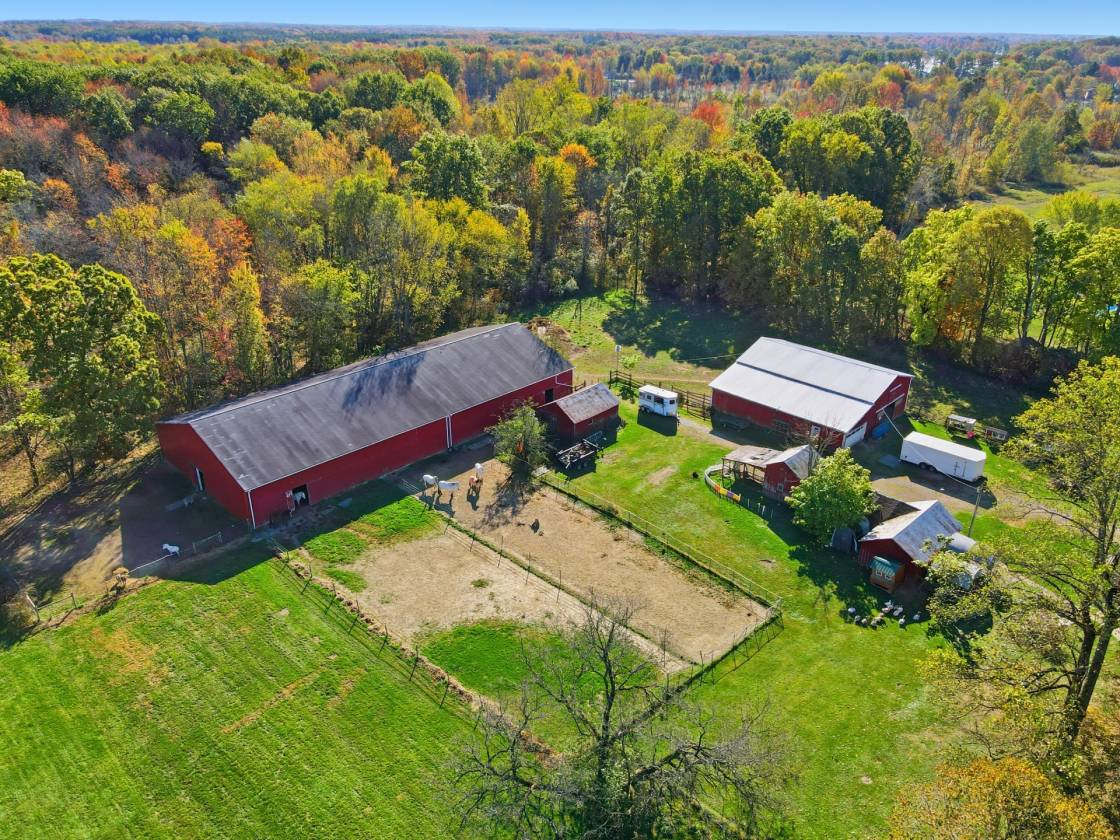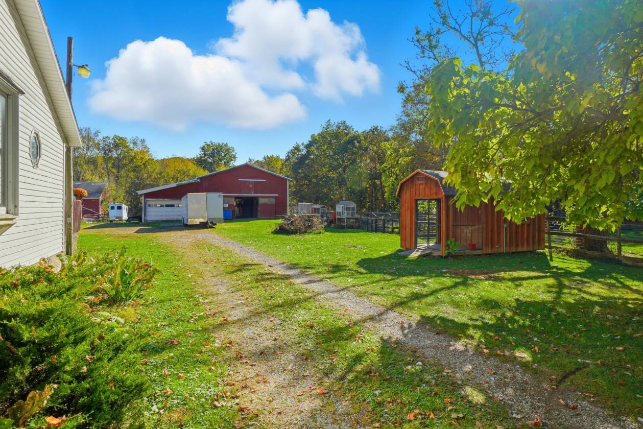 Wow! Everything about this hobby farm lives large! Big rooms, big buildings & BIG possibilities for anyone interested in a hobby or horse farm!From the gracious front "sittin'" porch to the 18x16 back deck, there's plenty of outdoor space to relax & enjoy this very rural vibe.HUGE living room w/ a stone FP & hearth, 2 first floor full baths, BIG formal dining room for all those large gatherings, bedroom, kitchen w/ pantry, home office w/ a view of the street & drive & 2 other sitting areas (private TV spot & sunny breakfast nook) round out the first floor of this roomy classic farm house.2 large bedrooms & a cozy nook at the top of the staircase complete the 2nd floor.Laundry is in the full basement, which offers the coal/wood burning furnace for low cost winter heating & lots of storage room.Outside, you cannot BEAT the value of these outbuildings! Do the math on the 140x64 indoor arena, the 28x16 tractor barn, the 56x18 garage, the 56x34 stable & the other miscellaneous smaller outbuildings. Room for all your animals - a place to ride in the winter months - plenty of fenced pasture already in place - approximately 5 acres of woods for your private trails - gated driveway - this list goes on! (Any stall mats already in the horse stalls will stay). This could be an amazing opportunity for someone who wants to run their own training/boarding/show stable.Septic pumped March of 2025 & the sellers LOVE the quality & quantity of their well water, although there is public water available at the street.Septic was camera scoped & diverter box replaced in 2022. Located just minutes from the Greenway Trail, grocery store, Route 45 for easy access, area wineries & local restaurants! Ask your Agent about the possibility of free gas heat for the life of the well! (The home office could also be used as a 4th bedroom).
