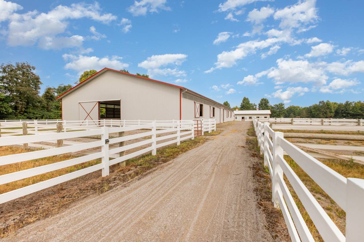 - Main Barn with 22 matted stalls (18 stalls 12' x 12', 4 stall 13' x 12' & 2 stalls w/ swinging wall)