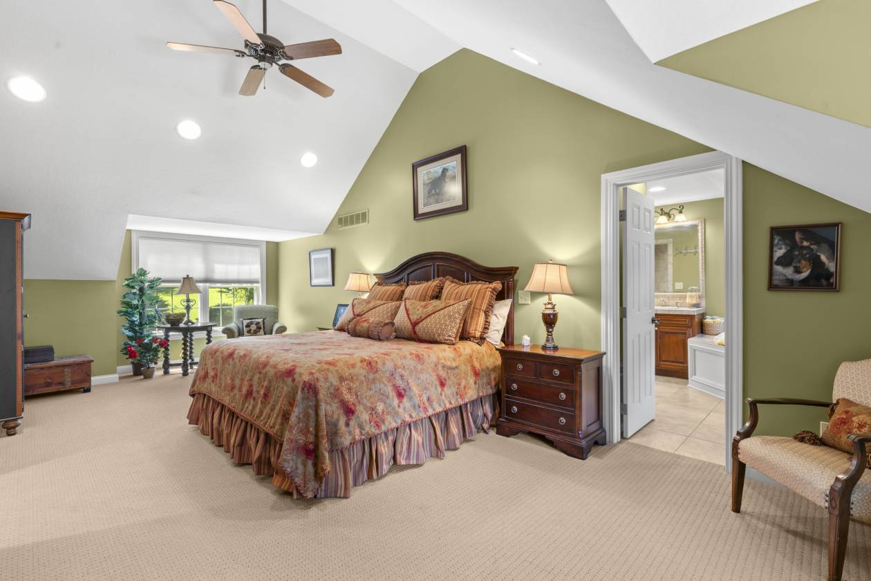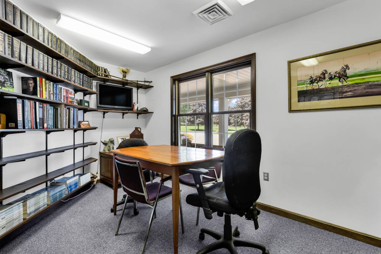 - The four-season room addition with cathedral ceilings offers incredible views of your land and is the perfect spot to relax and unwind with a cup of coffee in the morning or a glass of wine in the evening. Additional highlights include 1st floor laundry, an upper-level loft/office, and two primary suites - one with a sitting area, garden tub, and steam shower. An oversized garage, dedicated dog grooming room, kennel area, and outdoor patio complete the package. Simply too many extras to describe! From sunrise over the pastures to sunset by your private retreat, this is a place you’ll never want to leave.