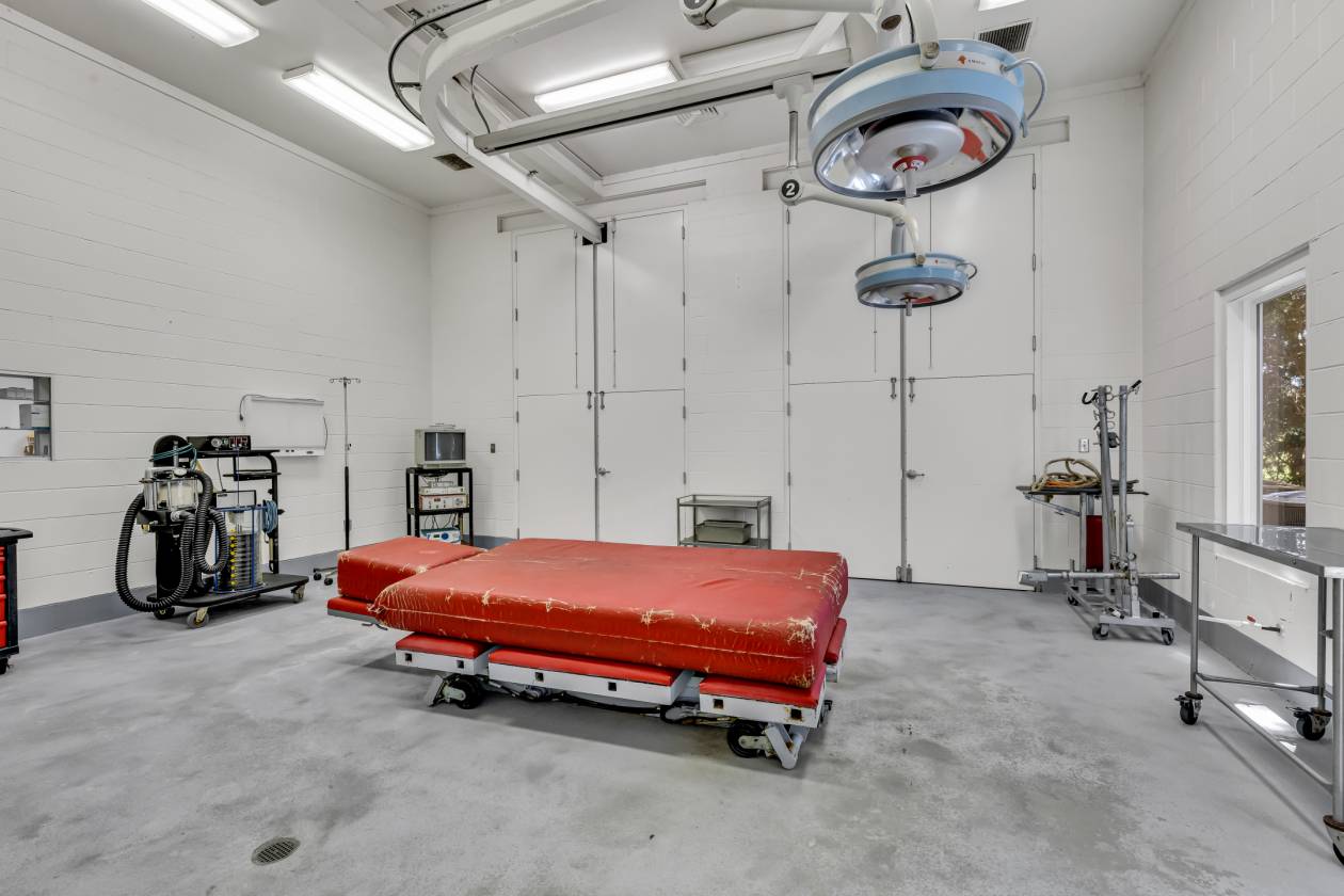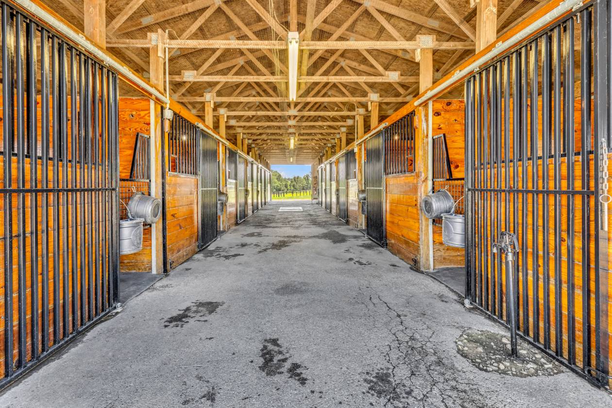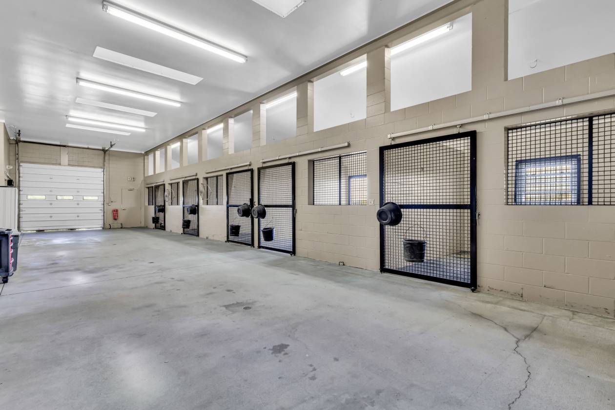 - This approximately 40-acre horse farm offers unmatched versatility. Currently operating as a veterinarian clinic and surgery center (easily convertible to a single-family residence), the property includes 4 barns, 10 paddocks, and 30+ stalls with room for many more. Plus a trainer/caretaker’s apartment, a 12 x 64 run-in shed, dog kennels, and more.