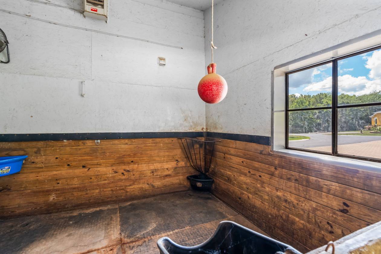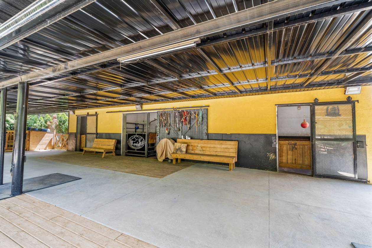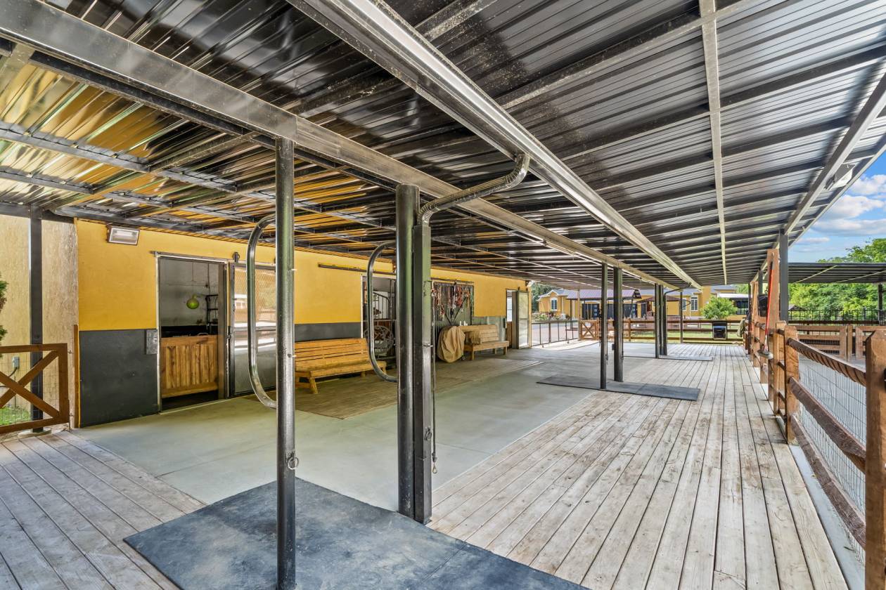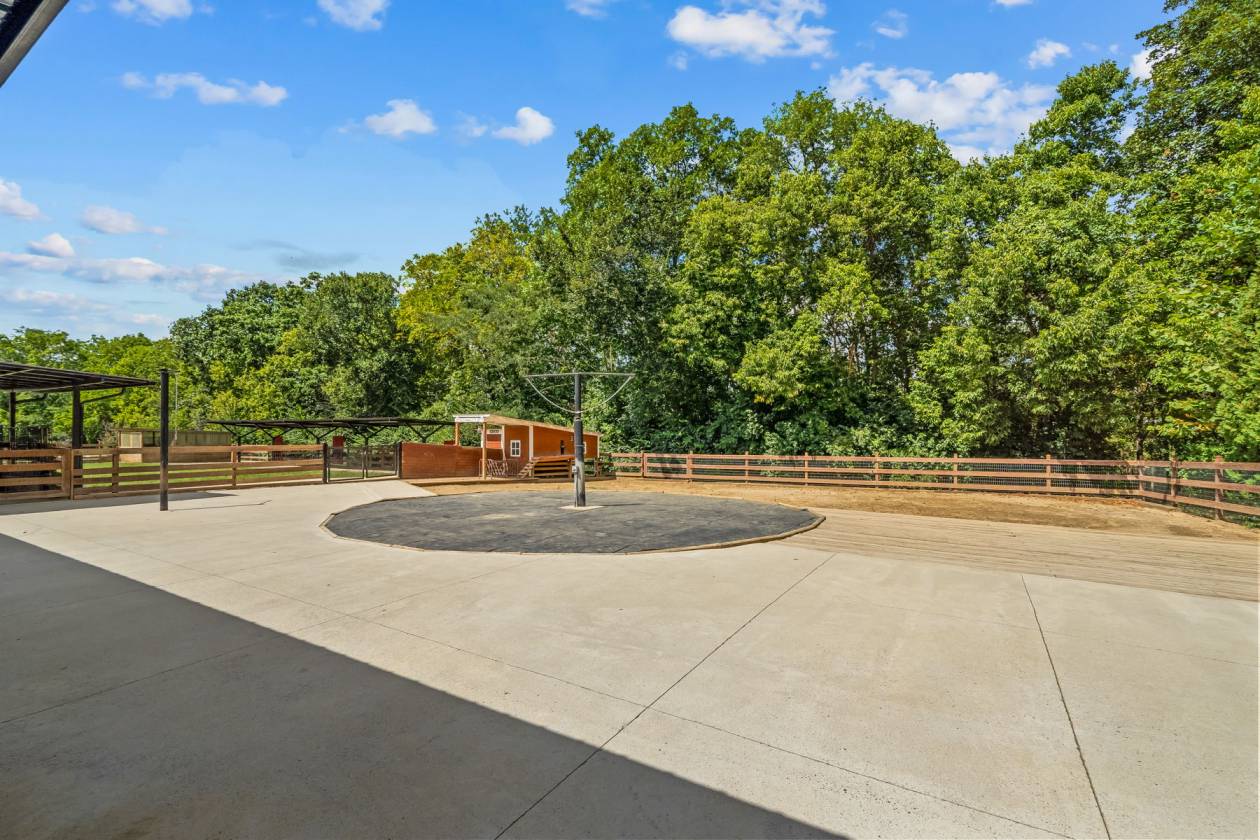 - Horse barn with a tack room, 3 stalls, turnout area, and outdoor carousel.