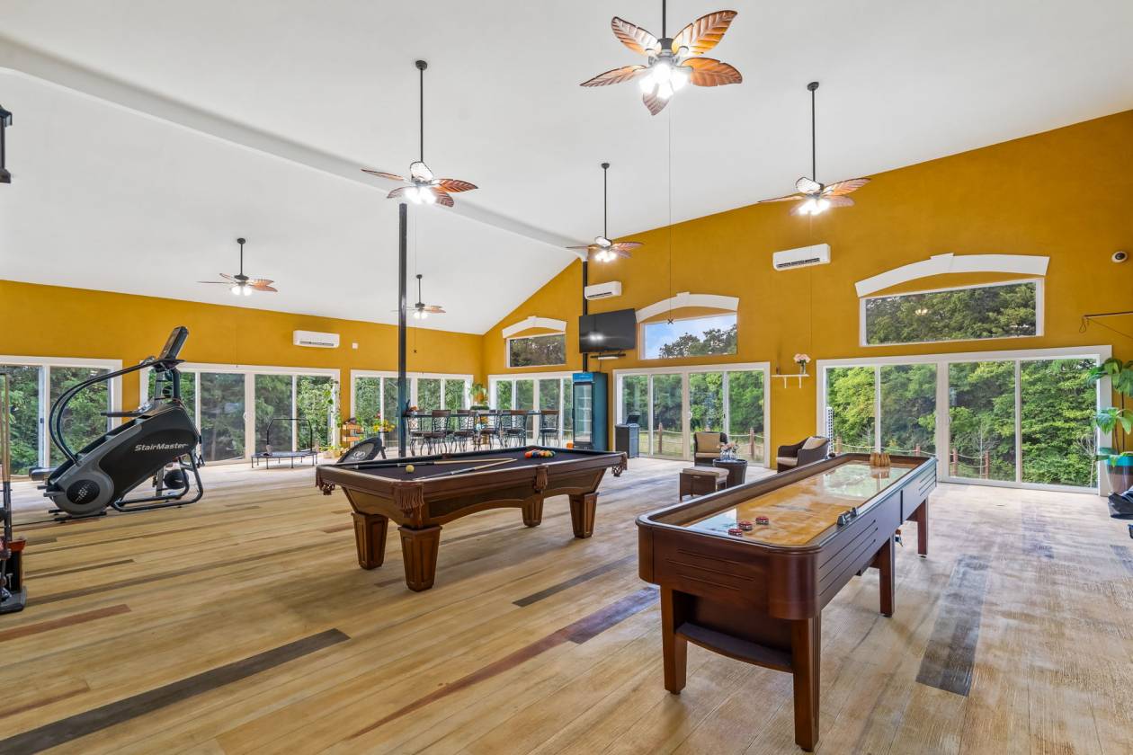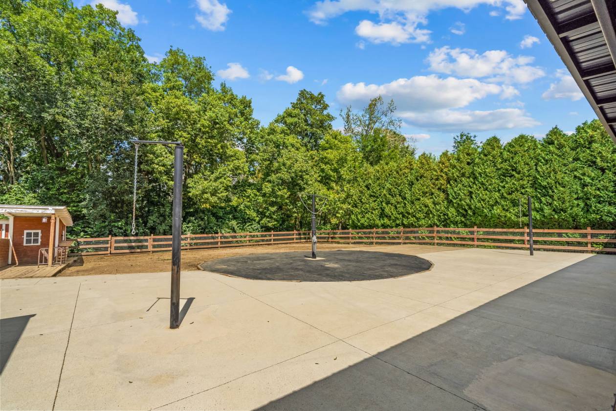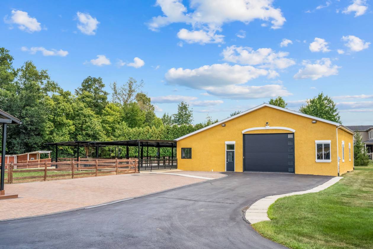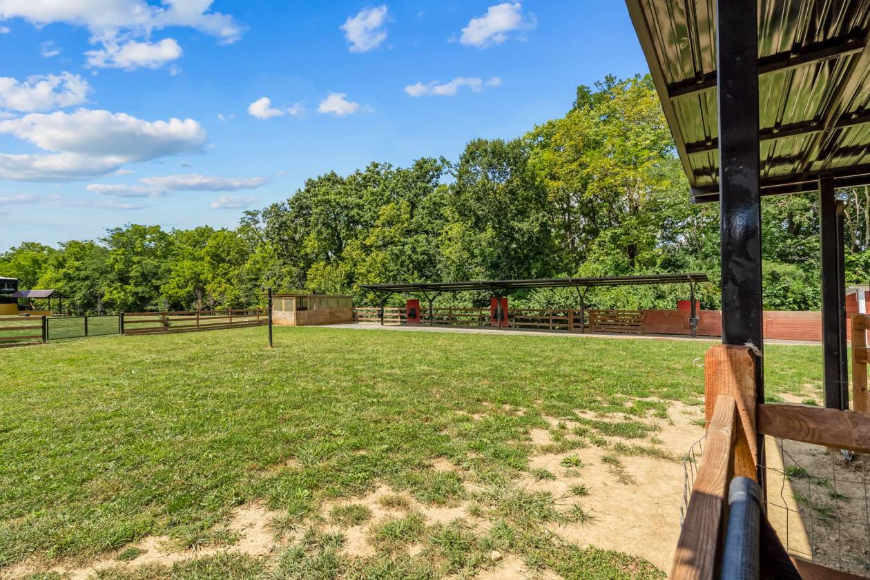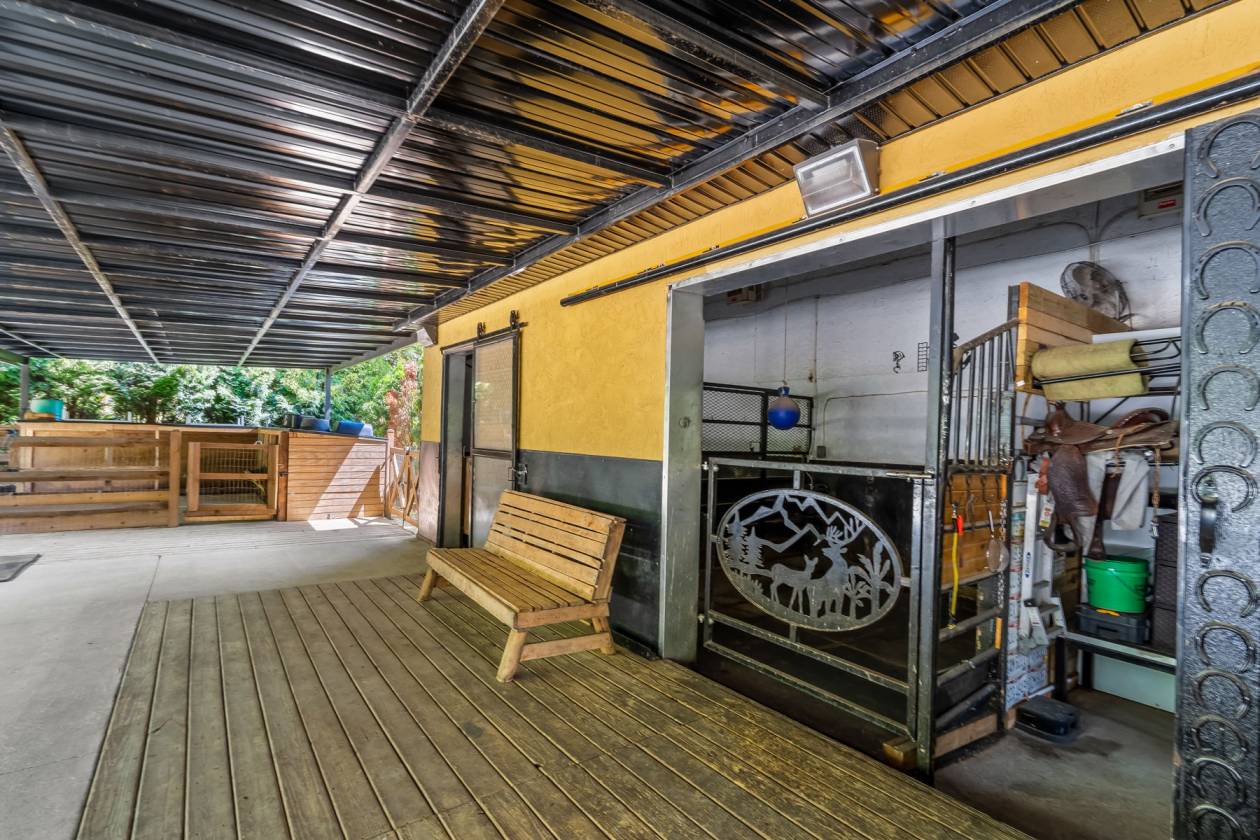 - Horse barn with a tack room, 3 stalls, turnout area, and outdoor carousel.