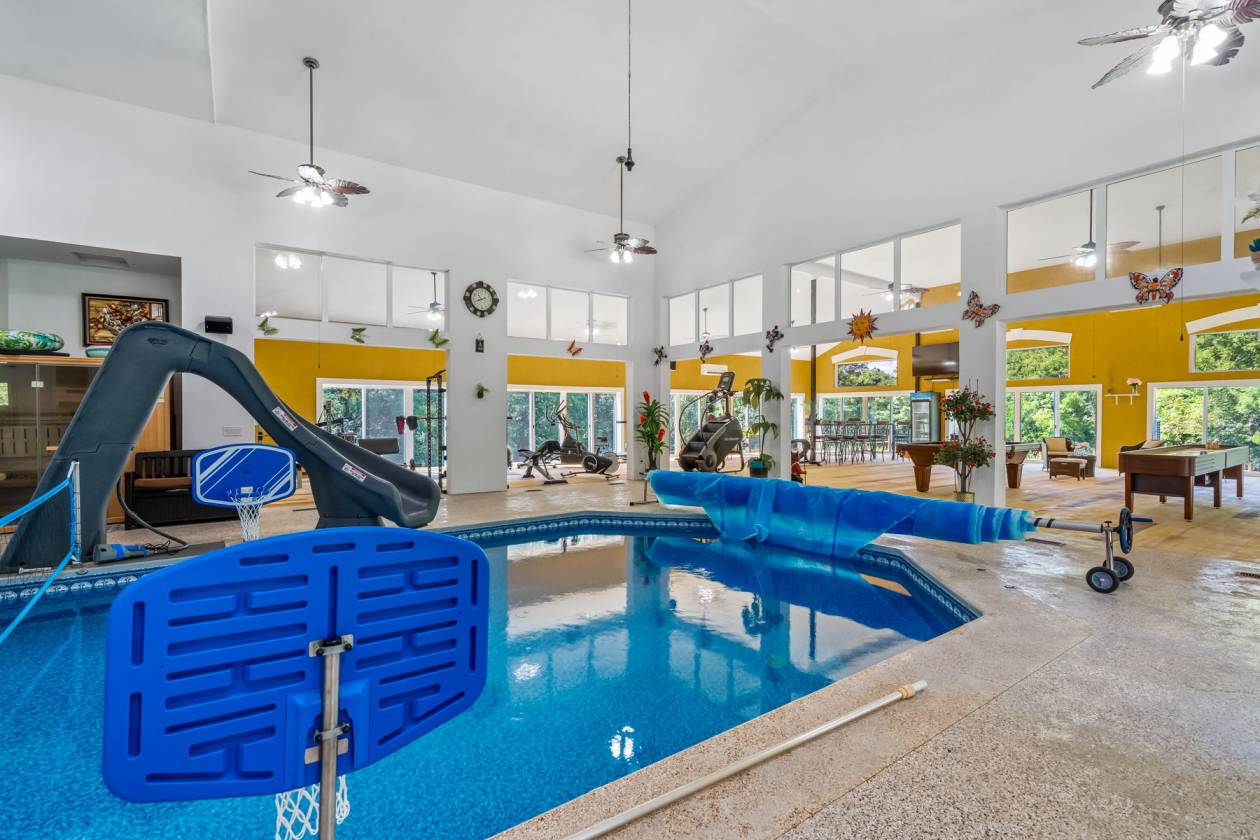 This captivating estate in Hilliard Schools that feels like your own private countryside retreat starts with a gated entry to the deep 5-acre lot! Soaring ceilings with custom details frame an elegant entry that opens to a formal dining space and a home office. The expansive floor plan features a gourmet kitchen boasting high-end appliances, custom cabinetry, dual islands that are great for hosting, 6 bedrooms, 6 bathrooms, and a first-floor laundry. Extensive renovations make this lavish estate one-of-a-kind! The lower level offers a recreation room, wet bar, three of the 6 bedrooms, two bathrooms, and a second laundry space. Multiple entertainment spaces include an indoor saltwater pool, nearly 1200 square feet of deck space that has an industrial kitchen and a hot tub with an automatic remote-controlled cover. Outdoor spaces include a horse barn with a tack room, 3 stalls, turnout area, and outdoor carousel. Inside the climate-controlled portion, there are entertainment or additional garage spaces and a half bath. Offering timeless elegance, modern comforts, and extraordinary grounds, this rare estate sets the standard for luxury living in Central Ohio.