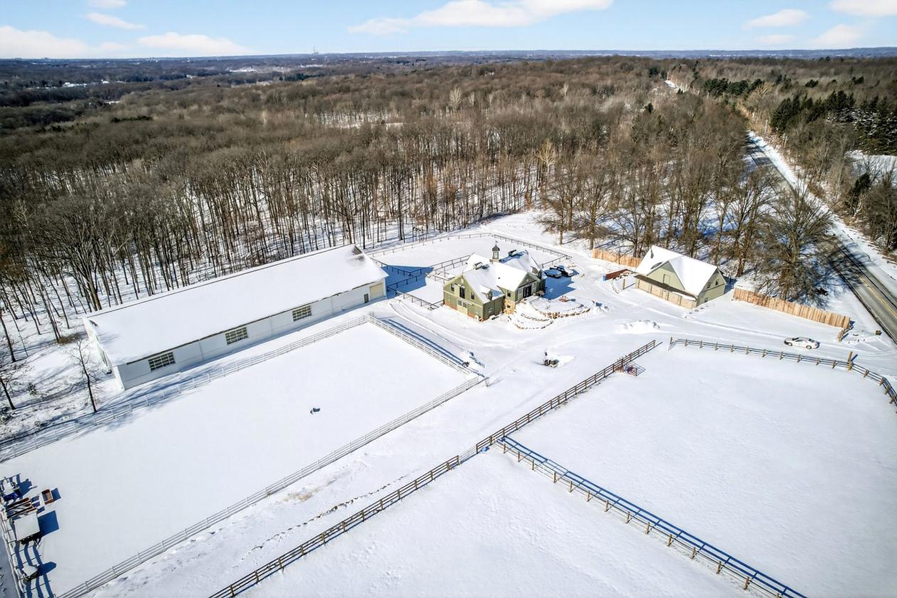 - An 8-foot-wide access road extends to the rear of the property and connects directly to the Holden Arboretum trail system, allowing for easy movement of horses, equipment, and riders while preserving separation between residential and equestrian operations. The elevated topography provides excellent drainage and long sightlines across the property, contributing to both functionality and visual appeal in all seasons.
