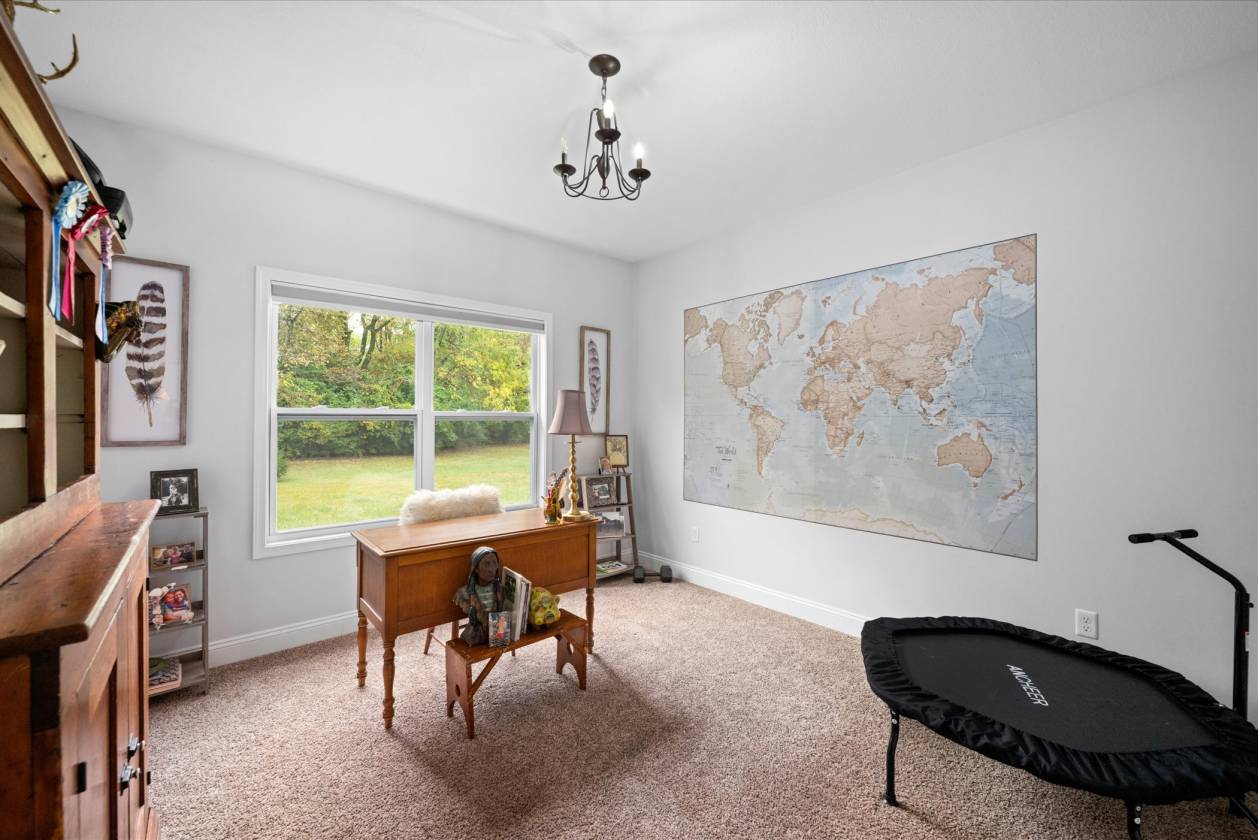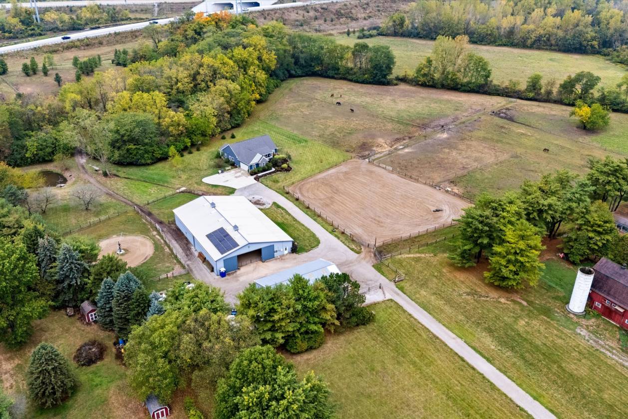 Luxury Equestrian Retreat – Country Living Meets Modern Elegance Looking for the perfect balance of wide-open country living and refined luxury? This one-of-a-kind ranch estate delivers it all. Featuring 3 bedrooms, 3.5 bathrooms, plus a fully finished basement with a flex space that could serve as a 4th bedroom, this home offers room for family, guests, and entertaining. 16 Acres of Scenic Beauty – Enjoy wooded views, open fields, and private trails perfect for horseback riding or simply unwinding in nature. Equestrian Amenities – Indoor riding arena built by Morton, the property boasts a state-of-the-art 8 stall indoor arena with tack room, feed room, water, and hay storage plus an additional barn with 4 stalls, tack room, hay storage, and equipment storage. These facilities make caring for and riding your horses convenient year-round. Chef’s Kitchen – The heart of the home features an ILVE 40” professional range, custom cabinetry making gourmet cooking a joy and entertaining effortless. Luxury Primary Suite – Retreat to your spa-inspired en suite with soaking tub and separate shower. Perfect to relax in after a day of riding. Energy Efficient – Solar panels power the entire estate, keeping annual electric costs under $1,000. Convenient Location – All the serenity of country living while being just minutes from expressways, shopping, and amenities.