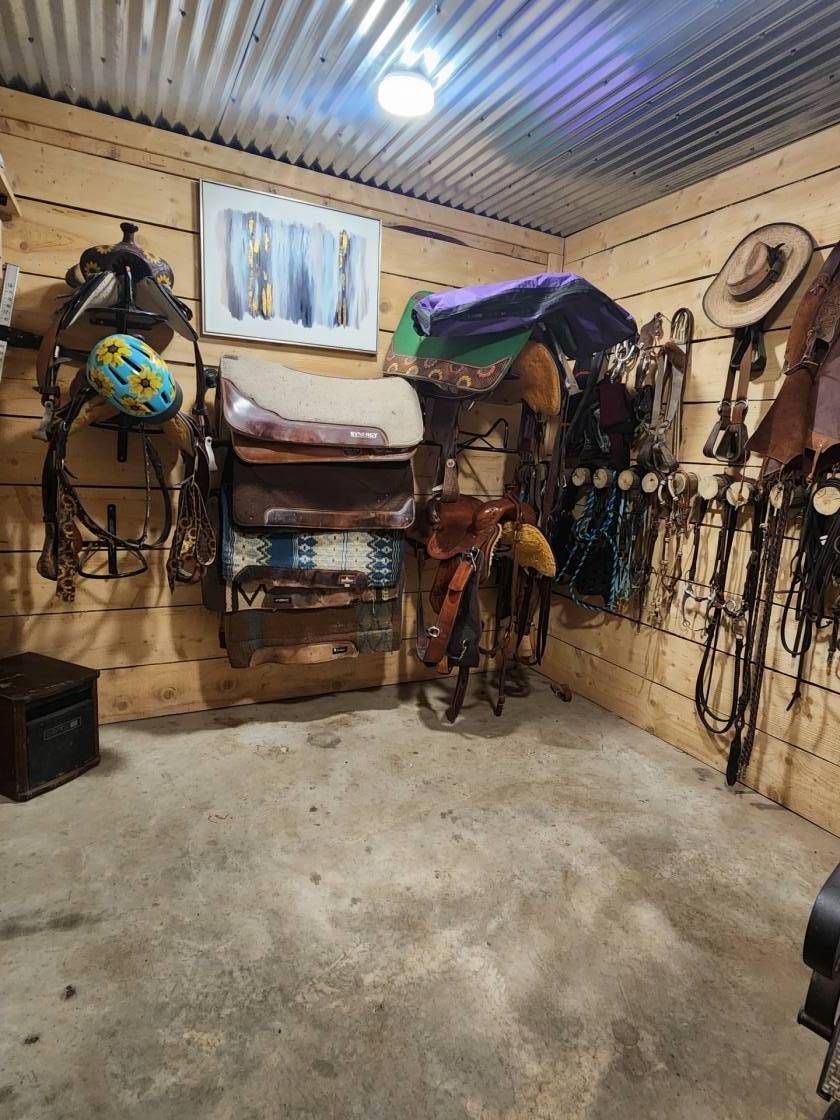 - Additional barn with 4 stalls (room for more), hay storage, equipment storage, water