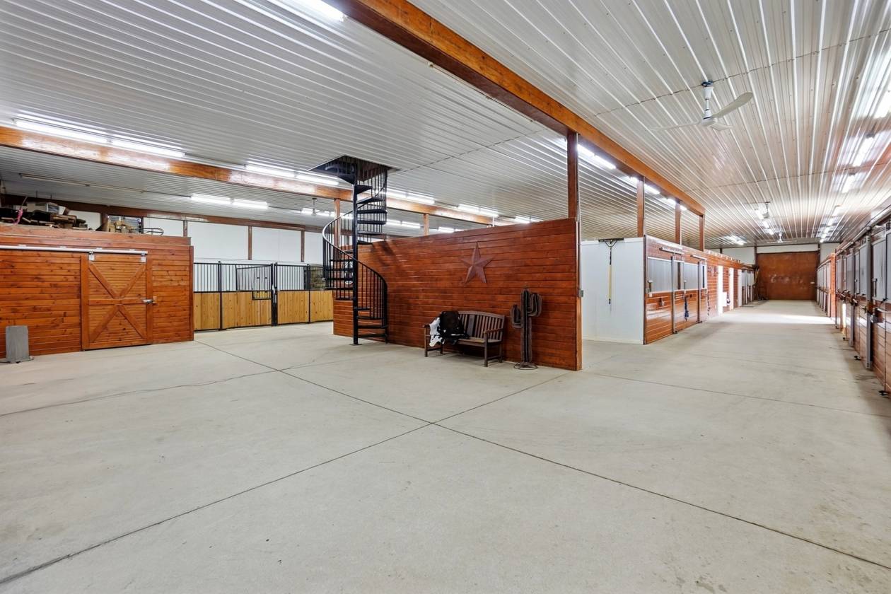 The spiral staircase leads to extra storage, or could be a perfect future 2-story viewing lounge. There is plenty of room for future expansion, and a perfect Home site to the west of the building. Shown by appointment only. Well-known, well- loved, and fully equipped for equestrian excellence. Camper/RV hook-up, New Manure storage area installed in 2023. This facility is in an excellent location being close to town, as well as secluded in the country. - 1 hr 20 minutes to the World Equestrian Center in Wilmington, Oh - 50 minutes to Eaton, Oh. - 45 minutes to Springfield, Oh