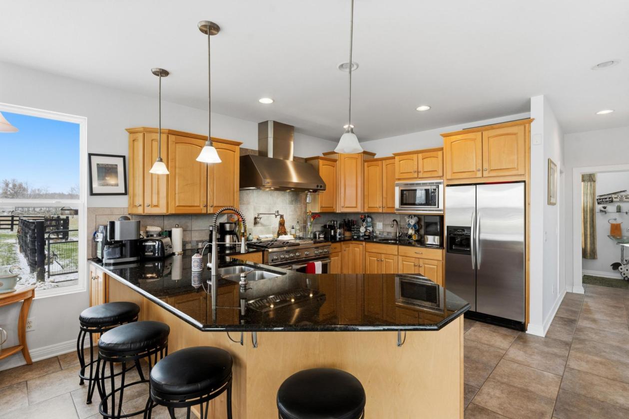 Equestrian lovers this is the one you've been waiting for! Offered by the original owners, this exceptional custom-built home is set on nearly 15 scenic acres with a thoughtfully designed Amish-built barn & sweeping pasture views. The home offers approx 4,000SF of finished living space w/ 5 bedrooms & 3.5 baths, blending timeless craftsmanship w/ modern updates. A gourmet kitchen anchors the main level & opens to multiple dedicated living spaces ideal for everyday living, work, & entertaining. The finished walkout basement adds even more flexibility. Step outside to a covered back porch & open patio overlooking pastures, woods, & nature..perfect for quiet mornings & sunrise views. Major updates include AC (2018), Furnace (2021), & Roof (2022). The barn (2015) features 6 stalls, addtl finished temperature-controlled rms, 1/2 bath, hot/cold water, its own septic, huge wkshop/indoor RV space, upper-level storage & hay area, plus addtl exterior parking & overhangs. Located in Little Miami SD, MUST SEE!