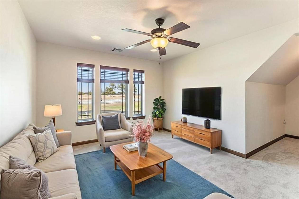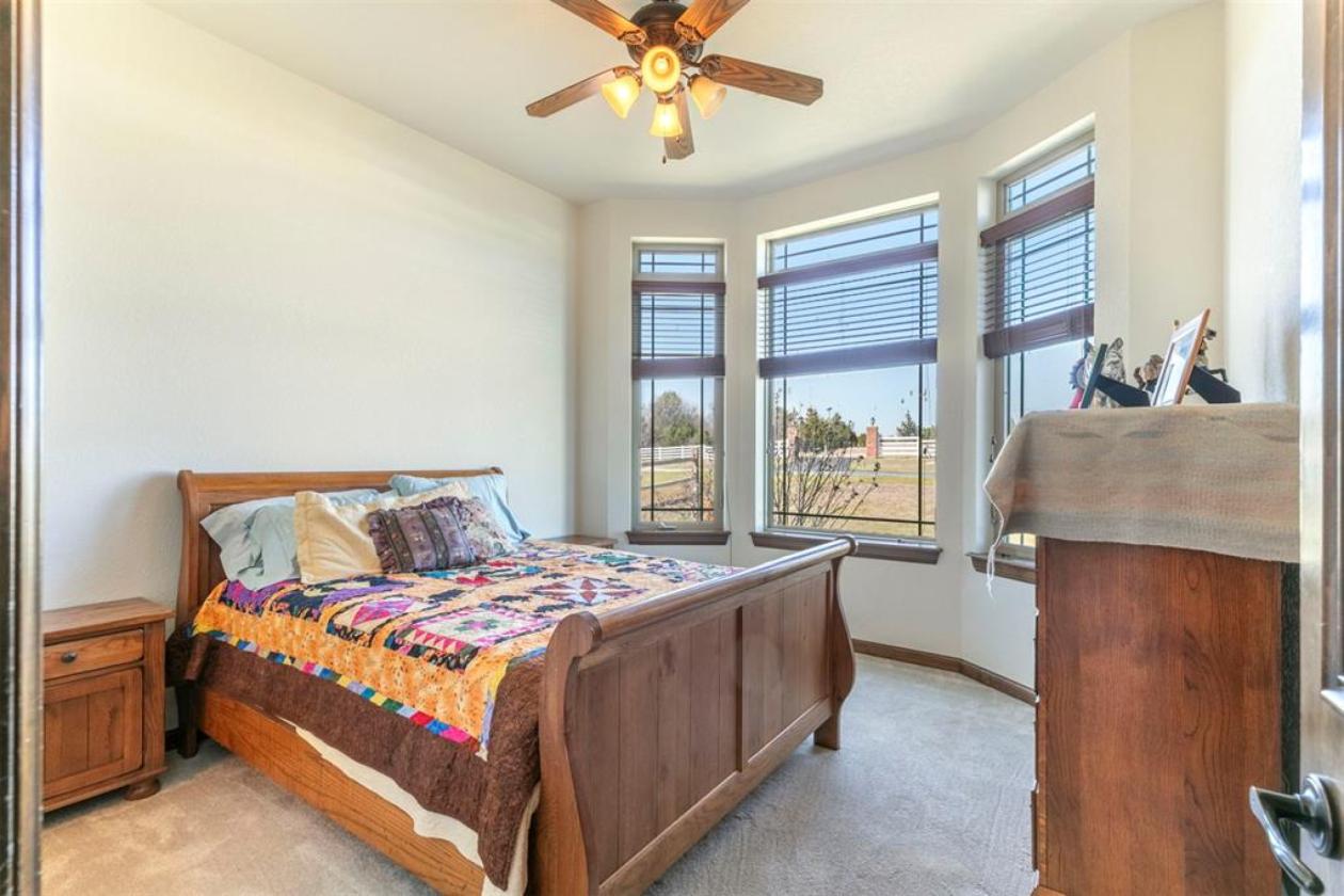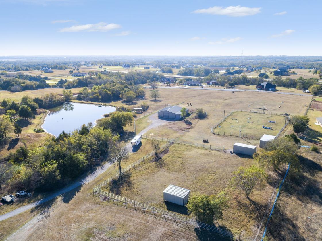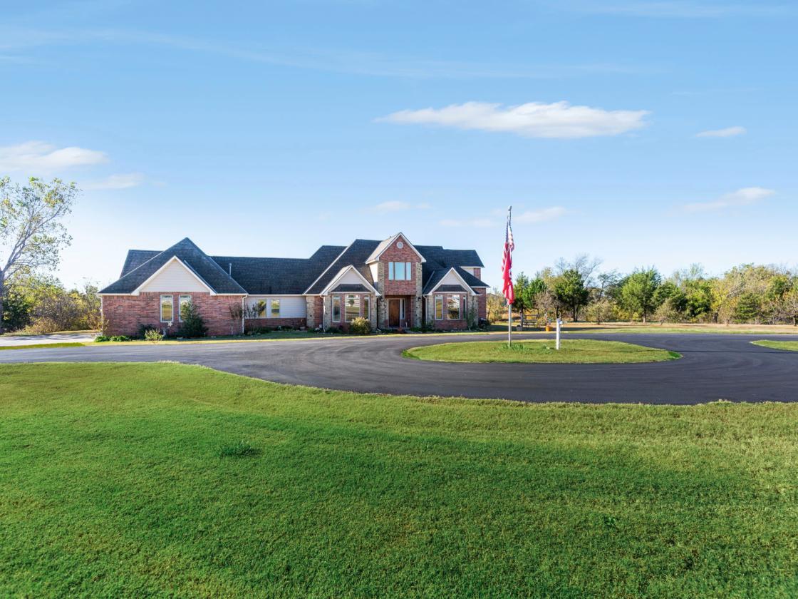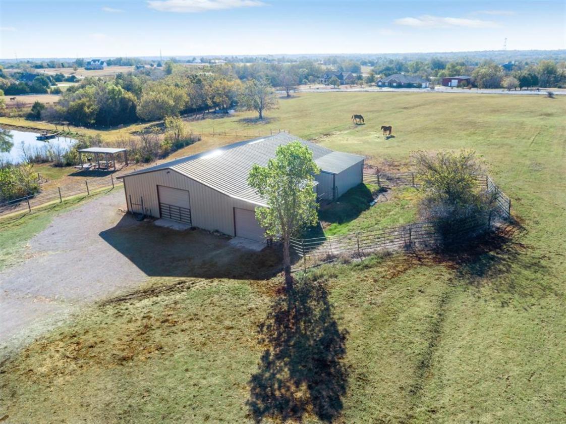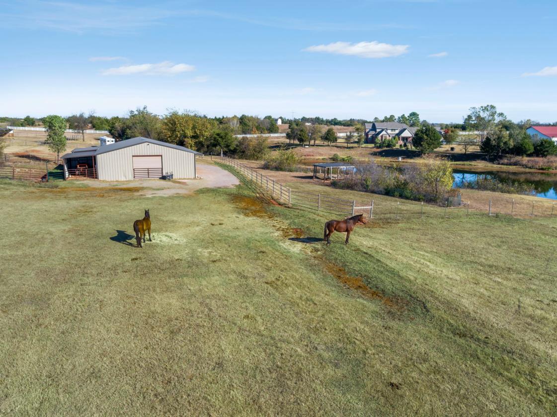 16 ACRES & SCENIC FISHING POND---40 X 60' THREE STALL, BREEZEWAY BARN WITH WASH RACK, ATTACHED EQUIPMENT STORAGE and CLIMATE-CONTROLLED TACK & FEED ROOM---90 X 200' LIGHTED RIDING ARENA, COVERED HAY STORAGE & IT'S OWN GATED ENTRY TO THE HORSE FACILITIES. ZONED AG-RESIDENTIAL FOR LOWER PROPERTY TAXES. This custom-designed home features an awesome floor plan with 2 bedrooms and loft living space upstairs and 2 downstairs along with a GREAT KITCHEN including granite, stainless, smooth-top cooktop and warming drawer. BEAUTIFUL WOODWORK throughout the home, 8' INTERIOR DOORS DOWNSTAIRS, including a study and 3 living areas, 2 water heaters, whole-house water softener and inground sprinklers. The pond is STOCKED WITH BASS & CRAPPIE. Fish from the floating dock or RELAX IN THE GAZEBO. Hay barns and loafing shed complete the picture with covered storage for 23 large bales of hay. Train in your own 90x200 arena! Ride on the gently rolling pastures or trailer 10 minutes down the road to Lake Thunderbird State Park where you'll find 11 miles of scenic trails Enjoy the privacy and security of being located on a quiet street with 2 automatic gates - all convenient to shopping and the University of Oklahoma