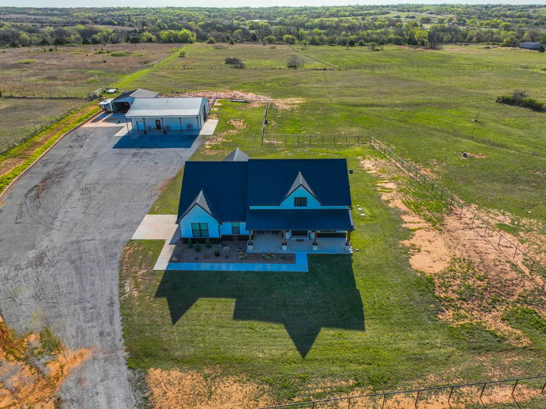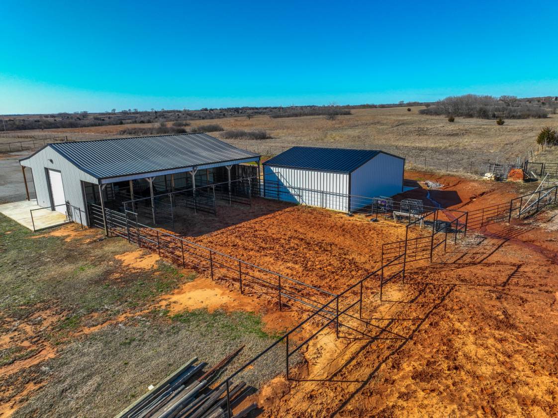 Newly built and meticulously planned. This 25 acres is abundant with all the features to provide the comfort you deserve in a property. The home, a 2024 finish offers 3 bedrooms 2 baths and an office. The open concept beautifully designed floor plan and aesthetic are sure to please. The living room shows off a cathedral ceiling highlighting the beautiful stone fireplace. The kitchen an open space with large bar is sure to make gatherings a true social event. Down the hall you’ll find the primary bedroom with a door to the patio, an attached office. Who needs a spa with a bathroom as featured here? Soaking tub, dual shower heads, storage space, and his and her sink. Enjoy evenings on the back porch over looking the property. The barn, another well thought out feature has a tack room, hay room and equipment area complete with a roll up door. 4 stalls with runs and 2 large overhead doors on both ends complete the horse barn. Lights, automatic antifreeze waters and a view out the back of the property where a new arena could be on the horizon. The equipment shed was not a lack of thought either with concrete flooring and plenty of lighting makes for the perfect equipment protection. The property is fenced and cross fenced. Additional features include: A bonus room and bathroom upstairs that is not finished but materials to do so are inside. Generac whole house generator, propane tank, well water, large gravel area for trailer parking.