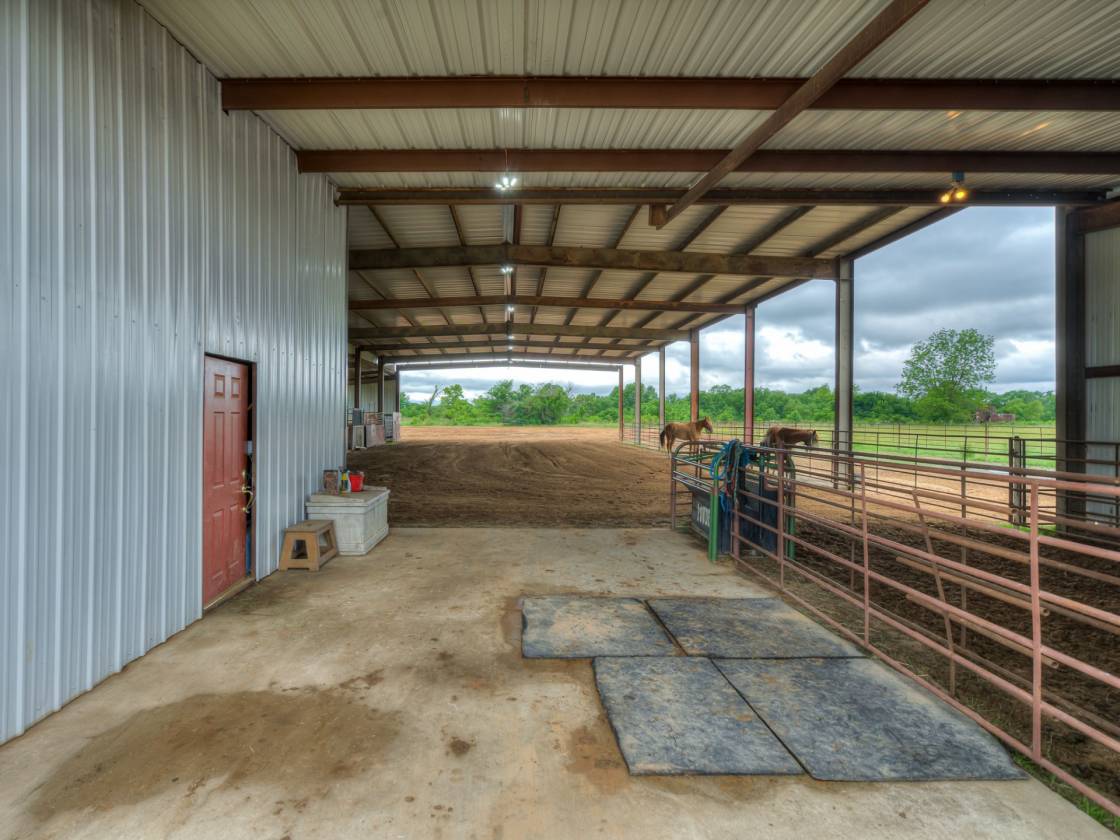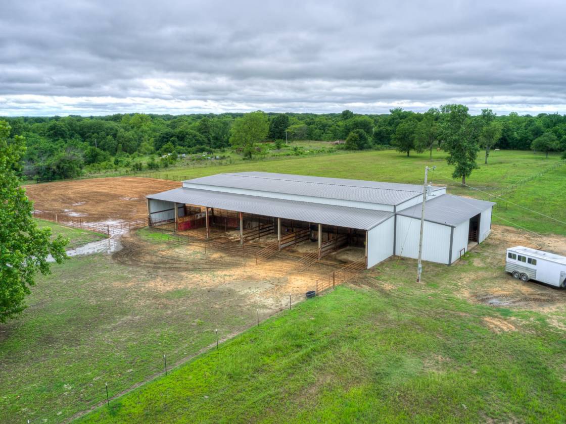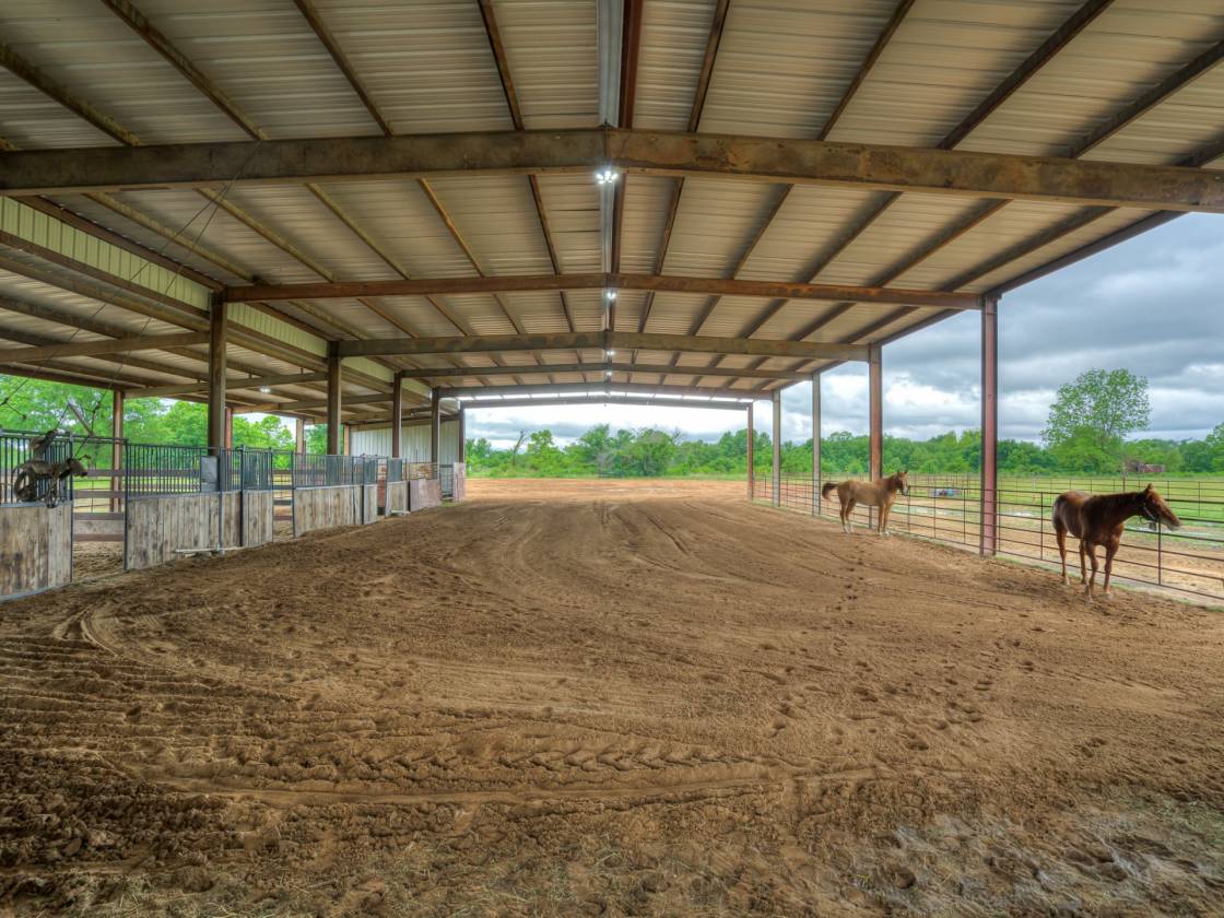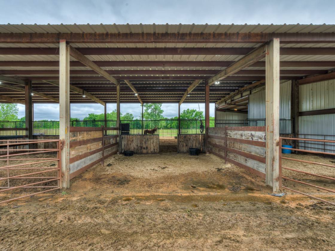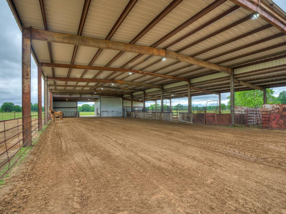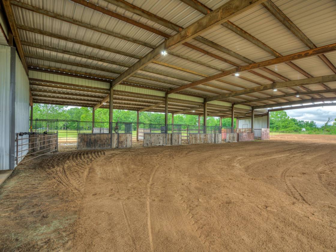 PERFECT HORSE TRAINING FACILITY! This property is ready to go... RODEO READY! • Red Iron Structure • 53’ x 128’ covered riding arena • FOUR 18’ x 20’ steel-framed stalls on east side ( room to add two more) • 20’ roping box with calf shoot • Concrete pad • 20’ x 20’ tack room • electric • 133’ x 170’ outdoor arena with pipe-fence catch pen • Cross-fenced • Stocked pond with bass, perch, and catfish—perfect for a little R&R after a long day.