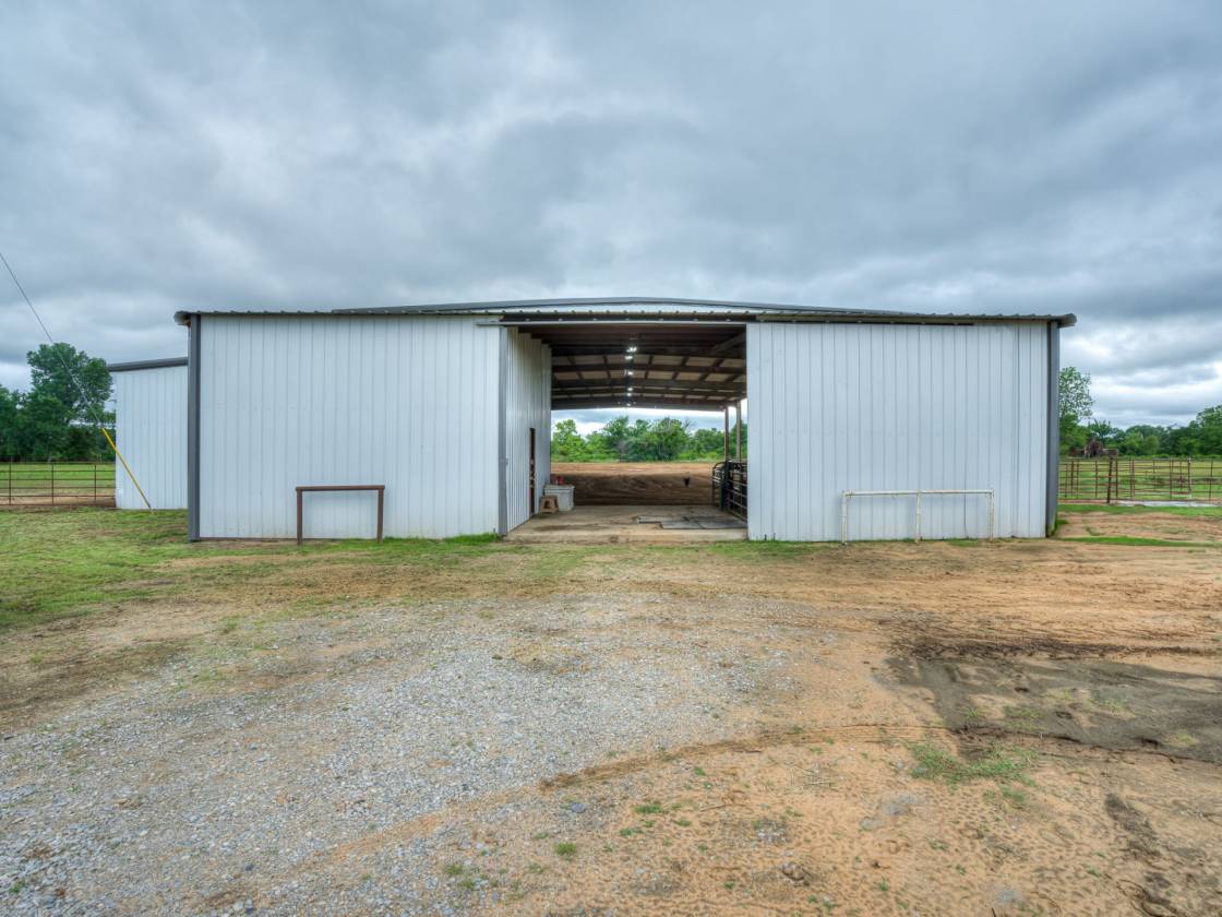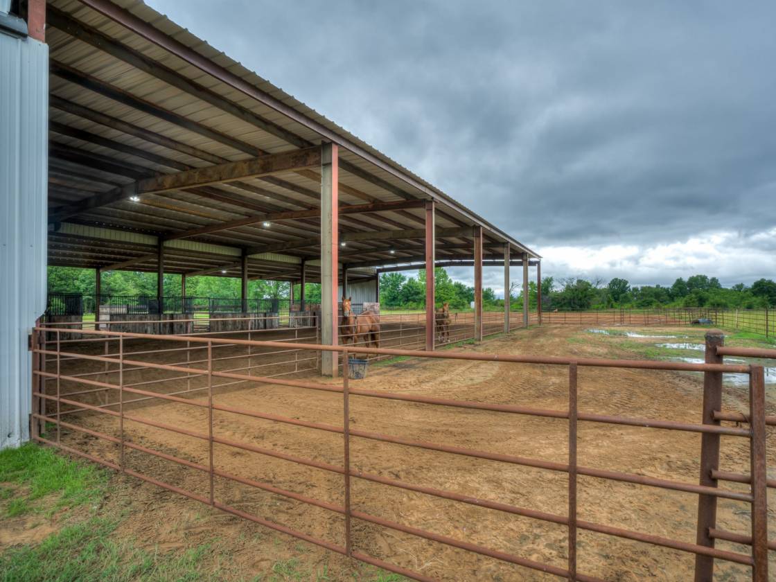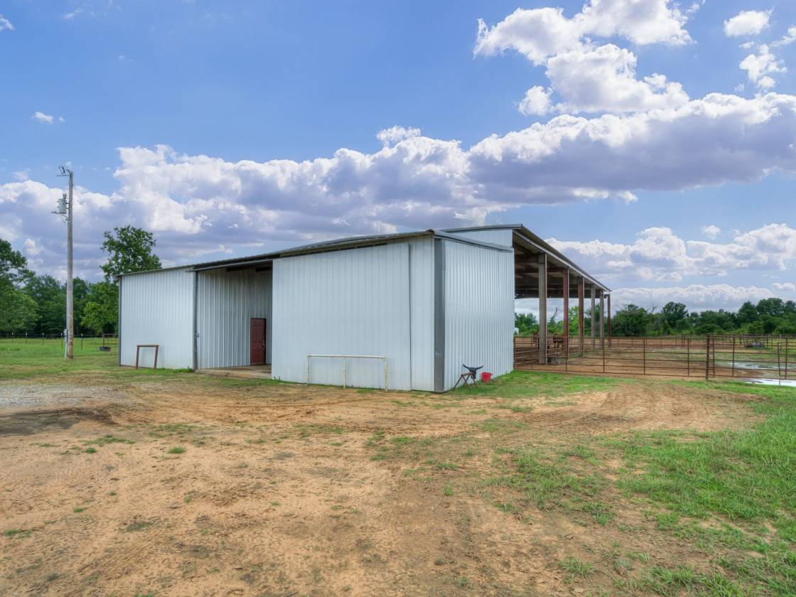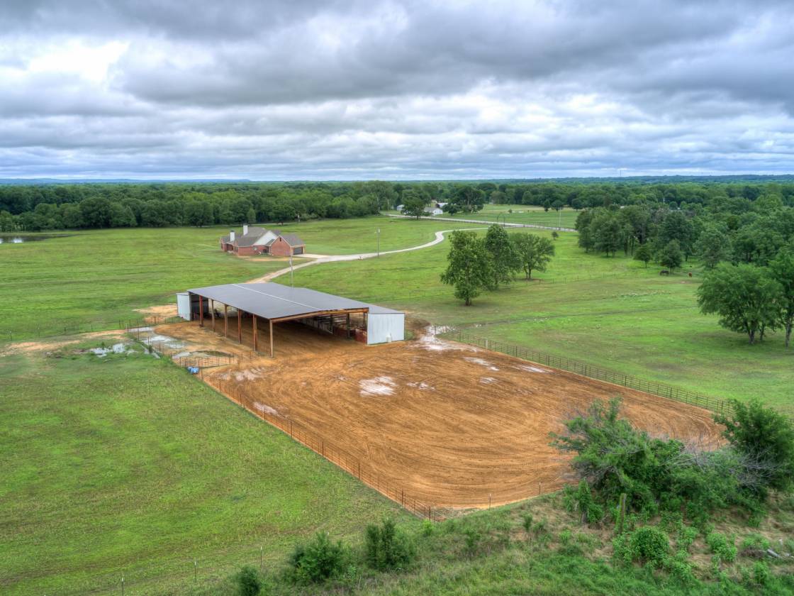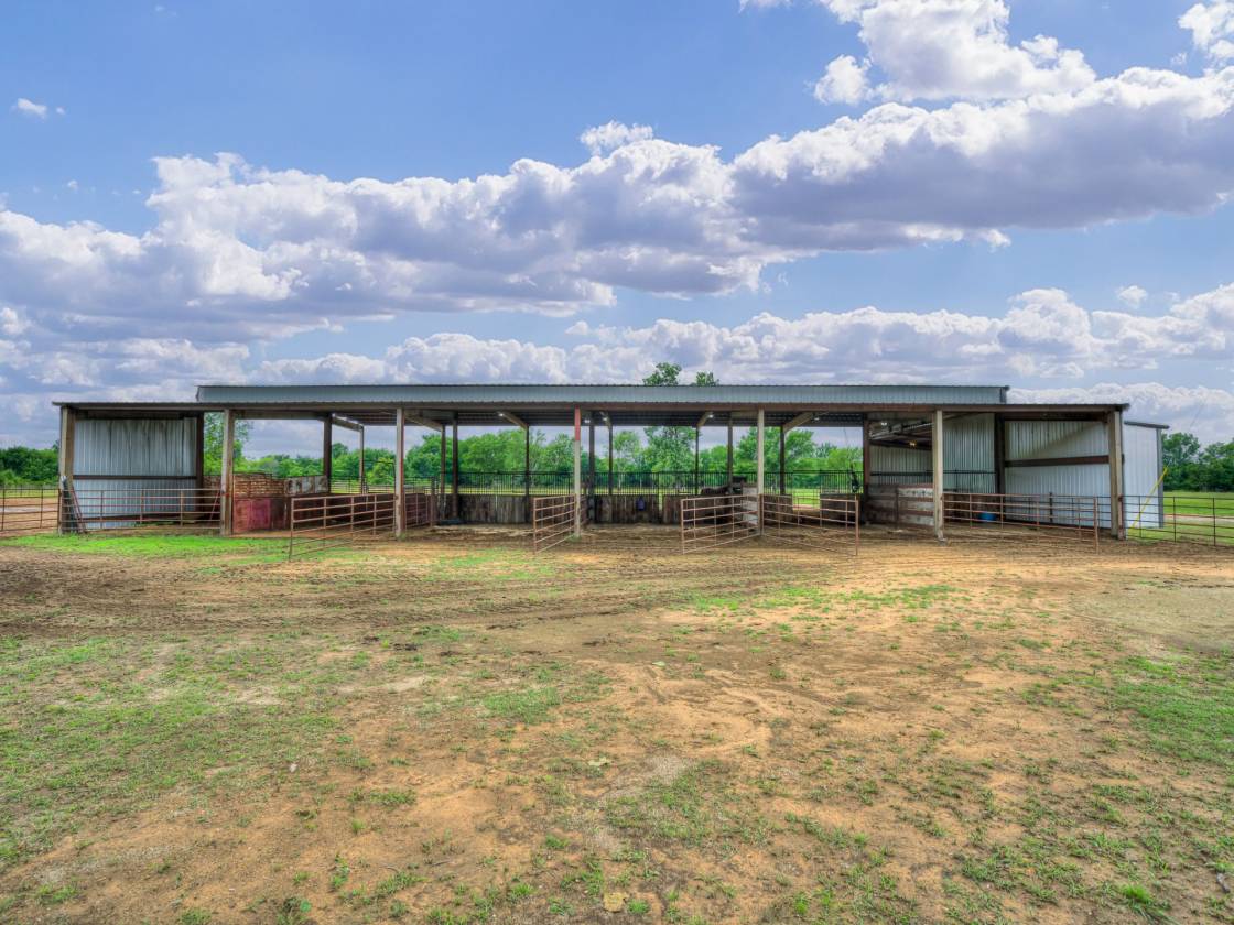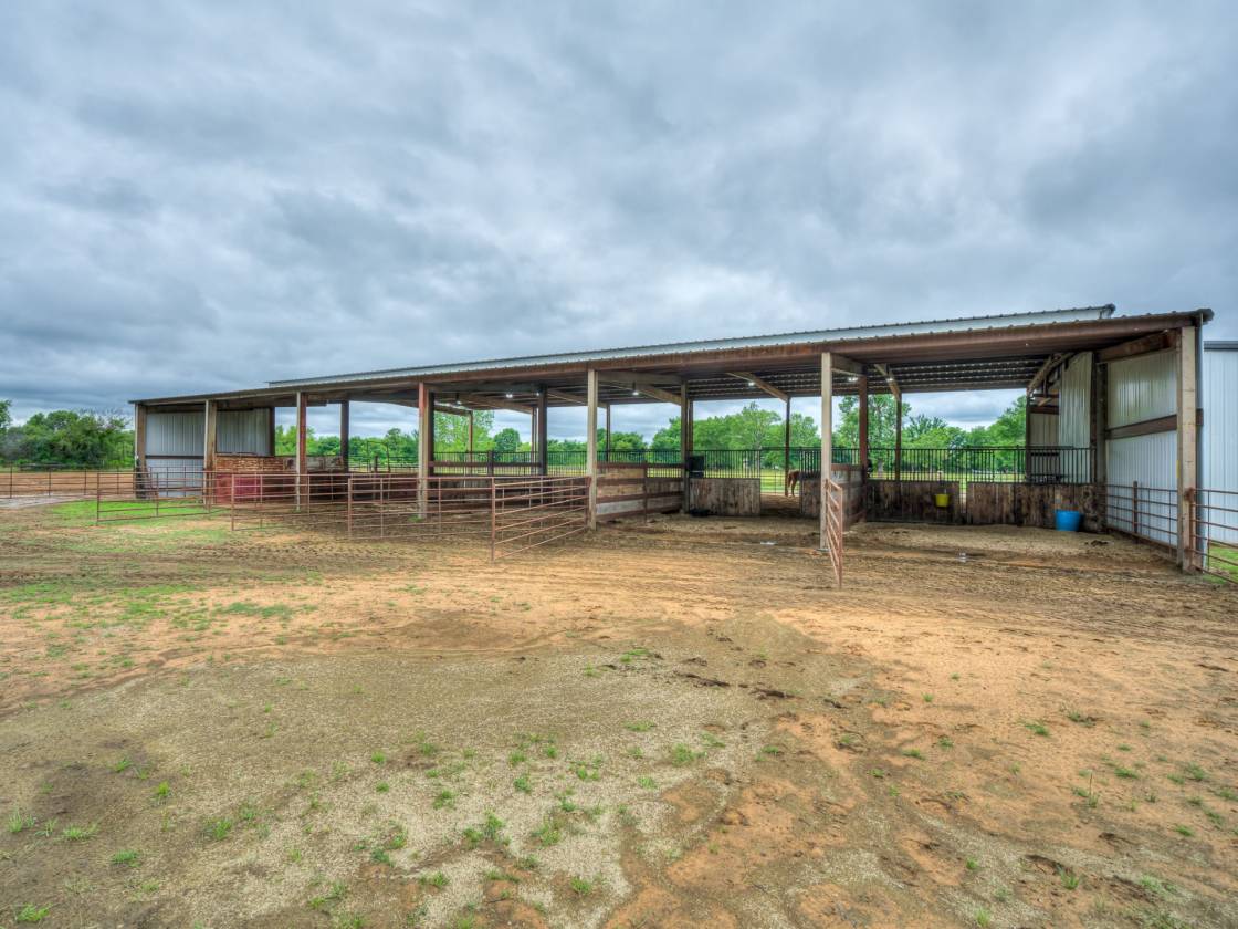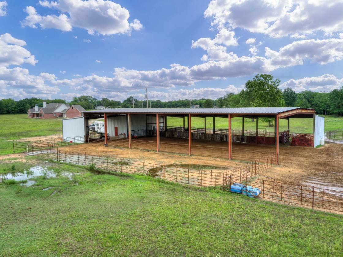 PERFECT HORSE TRAINING FACILITY! This property is ready to go... RODEO READY! • Red Iron Structure • 53’ x 128’ covered riding arena • FOUR 18’ x 20’ steel-framed stalls on east side ( room to add two more) • 20’ roping box with calf shoot • Concrete pad • 20’ x 20’ tack room • electric • 133’ x 170’ outdoor arena with pipe-fence catch pen • Cross-fenced • Stocked pond with bass, perch, and catfish—perfect for a little R&R after a long day.