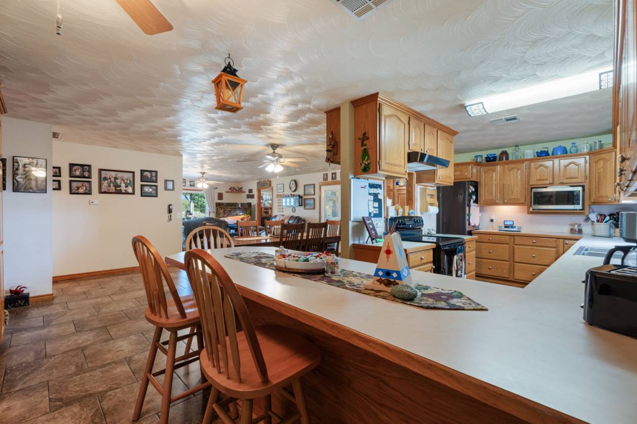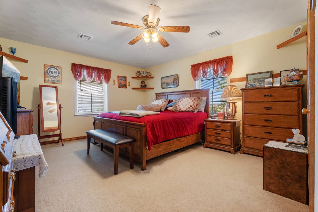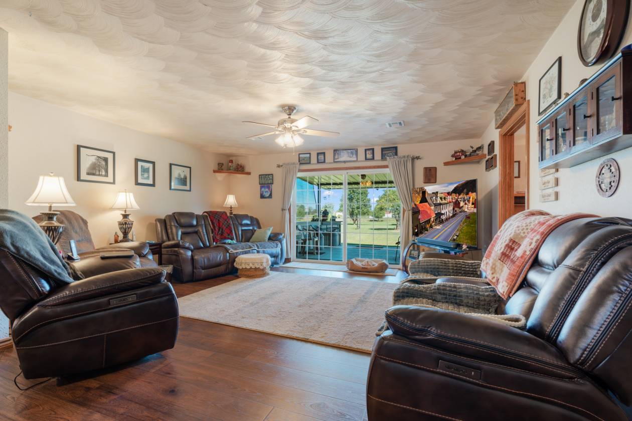 • This is a custom built home with 4 bedrooms, 2 bathrooms, open living area, computer room, large recreational room having 2,880 sq. ft.. Entire home is handicap accessible. There's a wonderful covered patio overlooking the stocked pond.