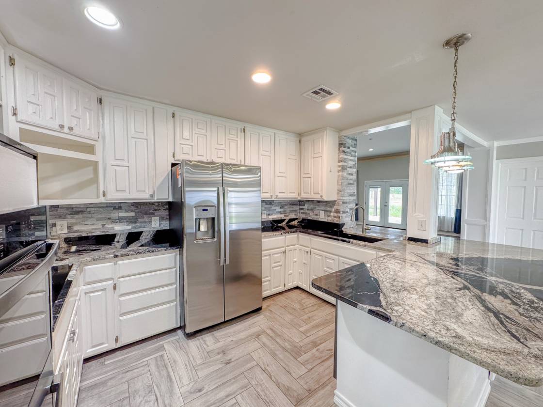Looking for space? This property offers it in both the home and the acreage. Cruise through the pipe entry way to a lovely renovated 4 bed 3 bathroom with office, two living areas, a multipurpose room and a separate guest quarters sitting on 42+/- acres. This property has been renovated with new tile floors thought amongst several other updates. The kitchen is centrally located in the flow of the house making entertaining easy, newer appliances and granite countertops pull in the aesthetics. There are a few finishing touches for a new owner to personalize if they see fit. In addition to the large home a separate studio is next door. It has a bathroom and a kitchen set up. A barn is already in place is just waiting for your stalls, equipment or hay, it is wired and has a feed room. The property is fenced and offers a start to some pipe pens to get you started if livestock is in the cards. If you are looking to get away from the hustle this rural property is sure to check the boxes.