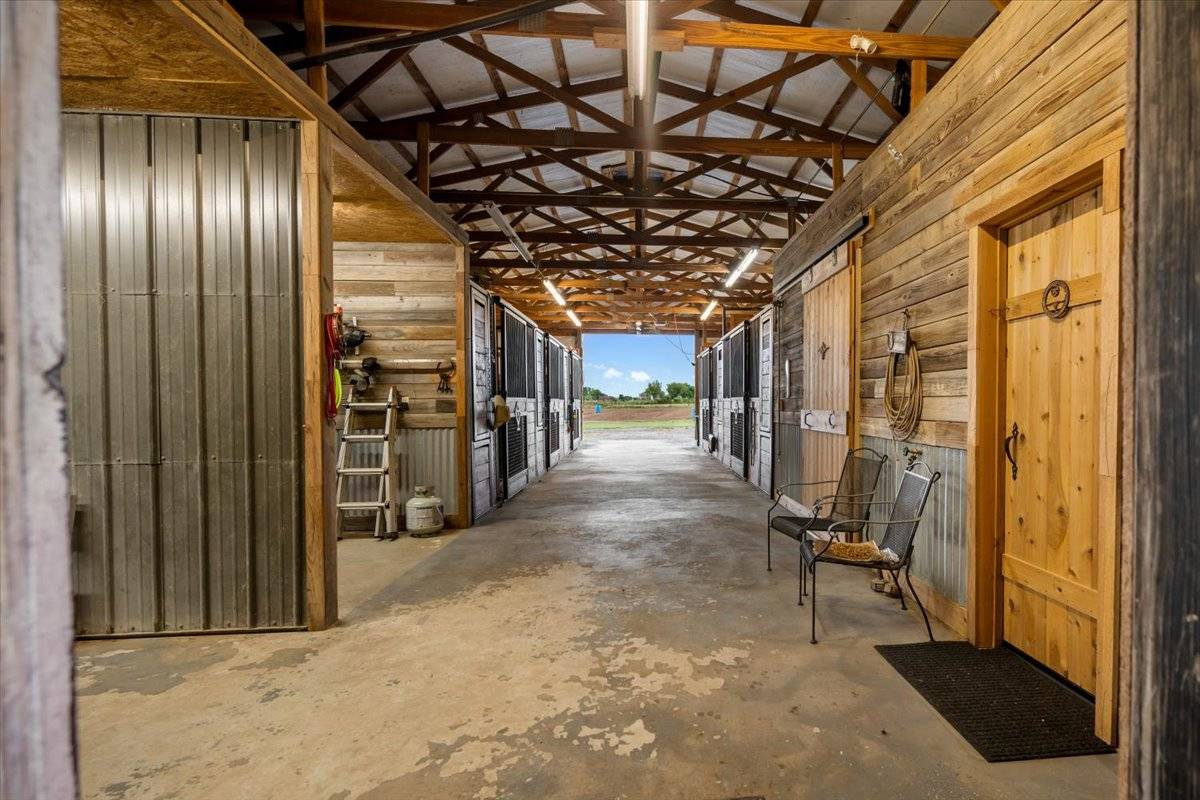 Welcome to a horse lover’s dream just outside Porter! Behind the solar-powered electric gate, this 30 +/- acre property invites you into a lifestyle where comfort and functionality meet. The meticulously maintained 36’ x 90’ barndominium offers open concept living paired with an attached horse barn, so caring for your animals is just steps from home. The 2-bedroom, 2-bathroom living quarters are fully insulated with spray foam and feature custom finishes throughout: hickory hand-scraped hardwood floors, rich wood trim, 10’ ceilings, 36” doorways, thermal windows, granite countertops, and a walk-in shower in the master en suite. Designed with both beauty and practicality in mind, this space is perfect for raising a small family. The attached horse barn is equally impressive, with 5 Rockin’ J 12’ x 12’ stalls, a wash bay, tack room, and a half bath. Every detail has been thoughtfully planned to make daily care efficient and convenient. Outdoors, lush grass produces around 200 square bales of hay annually—enough to sustain horses and a small herd of cattle. A well-maintained dirt arena is ready for barrel racing, roping practice, or simply exercising your horses. Additional features include cattle working pens, squeeze shoot, a pond for livestock, and RV/camper hookups, perfect for hosting guests or family stays. All of this comes with the unbeatable location of being less than two miles from Porter, home of the famous Porter peaches, and just over a mile from the Muskogee Turnpike for quick commutes to Tulsa, Broken Arrow, Coweta, Muskogee, or Wagoner. If you know, you know and you will see that no detail was overlooked when the owner put this place together and built this beautiful setup. This property isn’t just land and a barn—it’s the complete setup for anyone ready to live the horse enthusiast’s dream. Won't last long! Contact us today for a personal showing and prepare to be wowed!