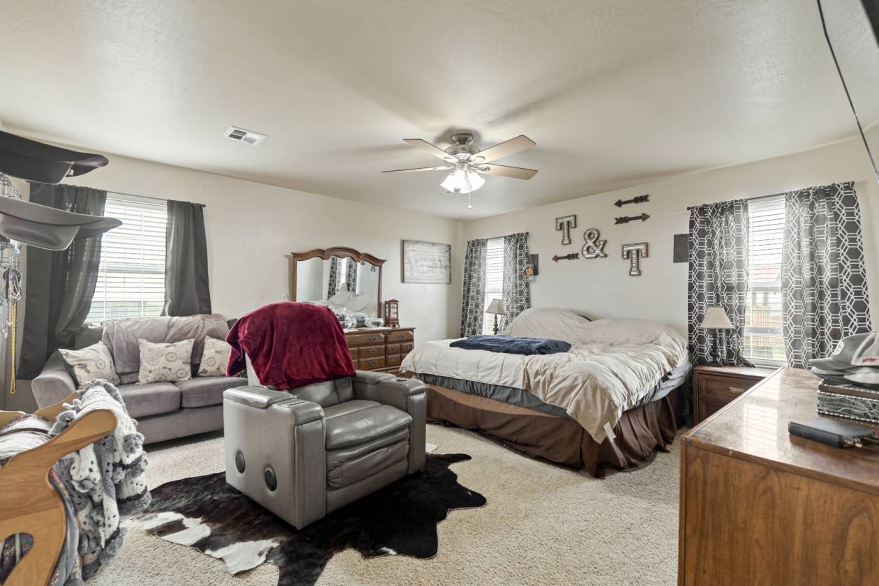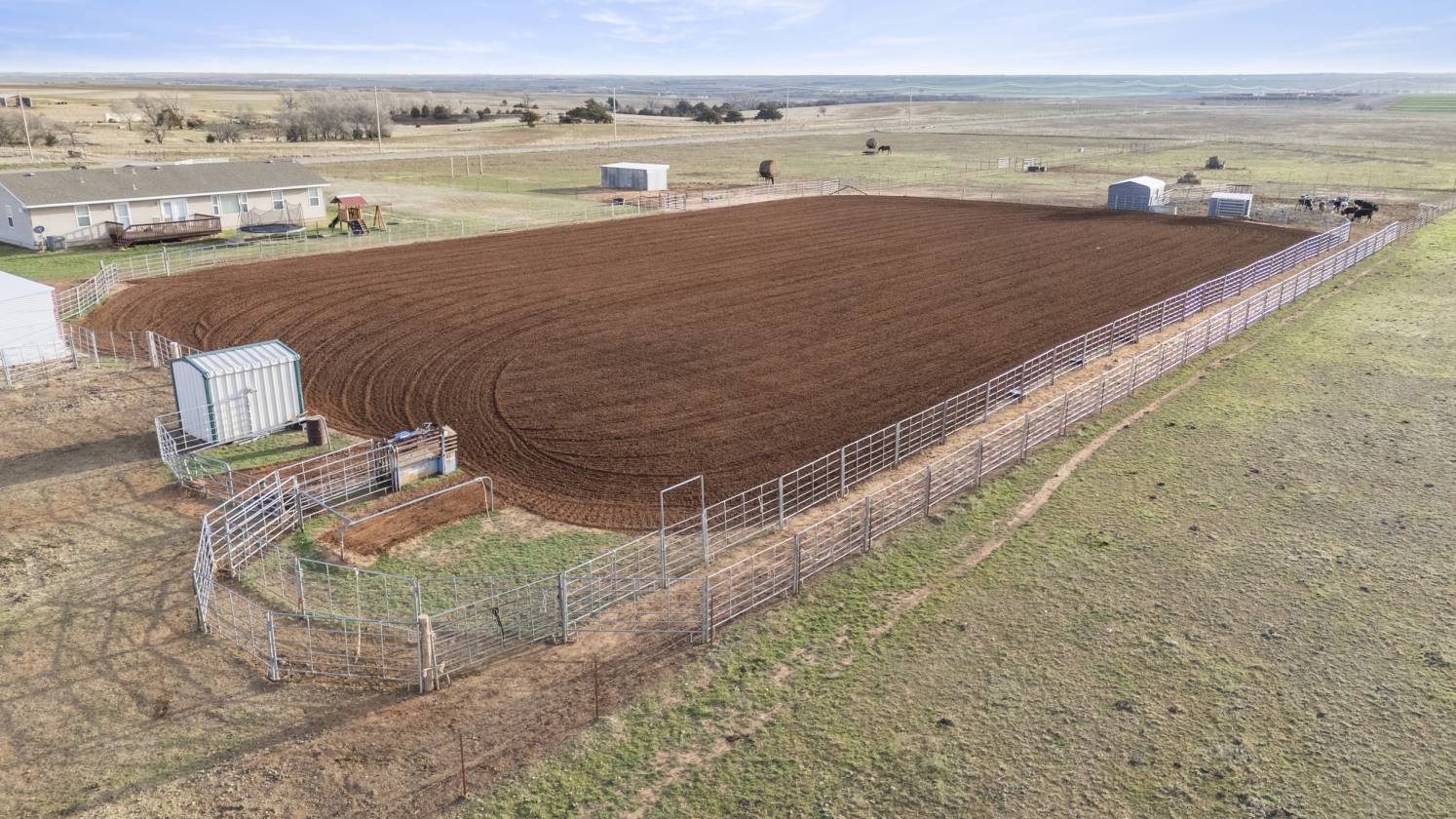 **NEW ROOF** - Manufactured Home, not a mobile home! This exceptional 10+ acre horse property offers the perfect blend of modern comfort and country living, in a prime location for the Oklahoma equestrian. The home boasts modern amenities and an open floorplan with 3 bedrooms, 2 bathrooms and an office. This home is perfect for families and entertaining, but it’s the outdoor features that truly set this property apart. Key features include a 170x300 roping arena; a 40x60 metal frame shop with concrete floors, overhead doors on both ends and a wash rack; a 900 square feet round-top barn; and 8 spacious turn-out pens with 3 lean-tos. The arena comes equipped with a Priefert roping chute, return alley, a lean-to for vehicles and equipment plus an attached storage and tack room. New 5 and 6 wire fencing, a new deck, tack room, arena and new flooring in the home are only some of the improvements that have been made to this property. The lush green 10.70 (mol) acres have a rich soil base and Bermuda grass pasture. Centrally located near many top equine events between Oklahoma City, the Lazy E Arena, Weatherford and Amarillo, this property is a must-have for any serious cowboy or cowgirl.