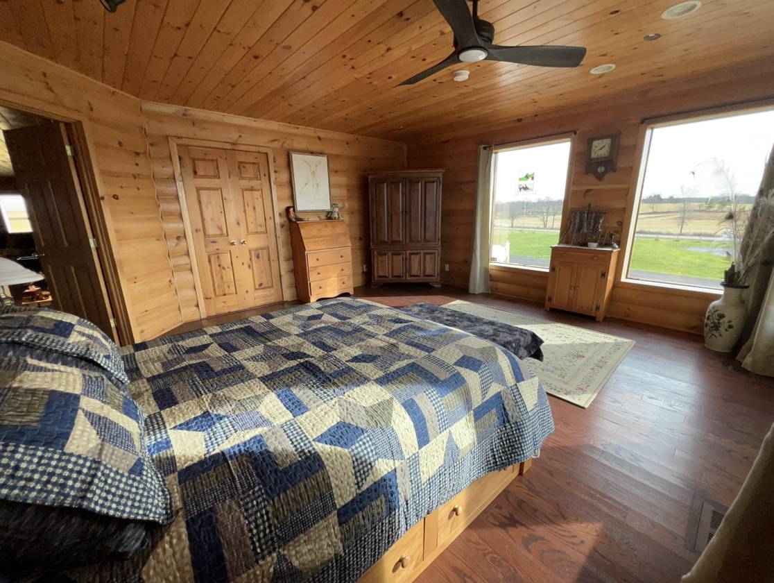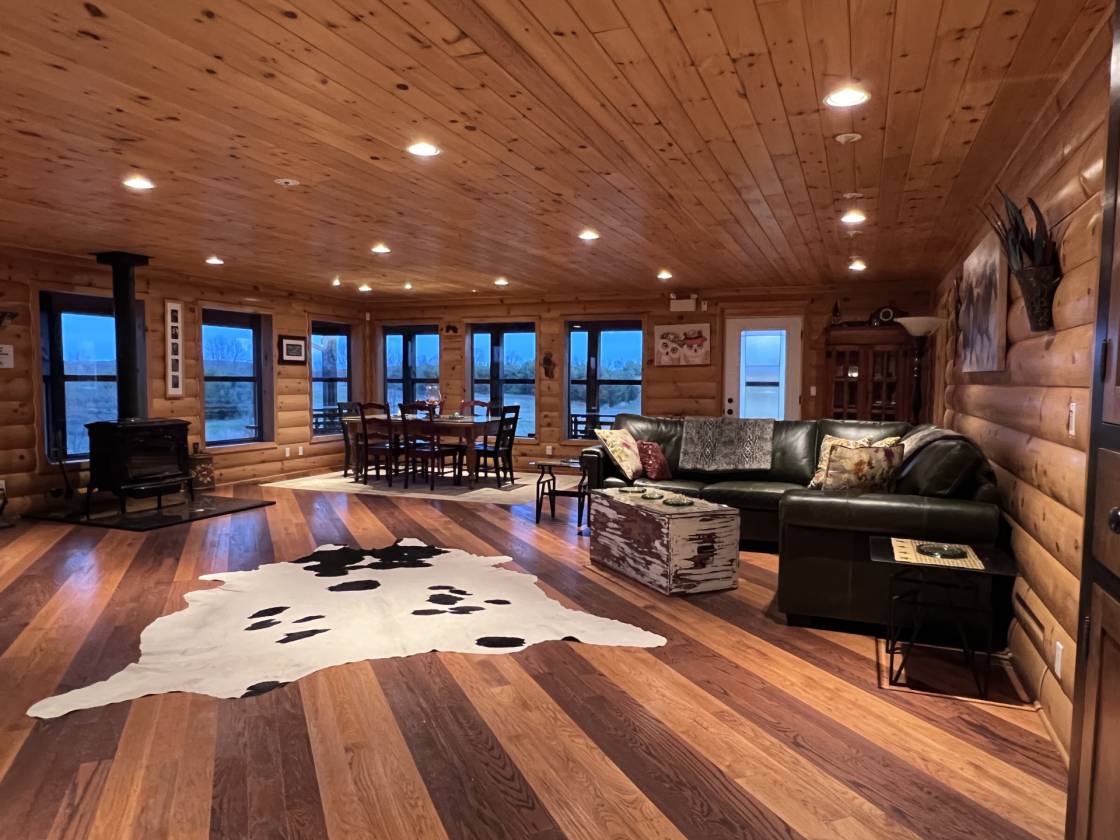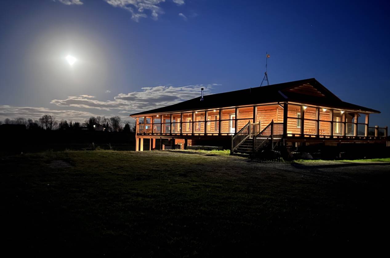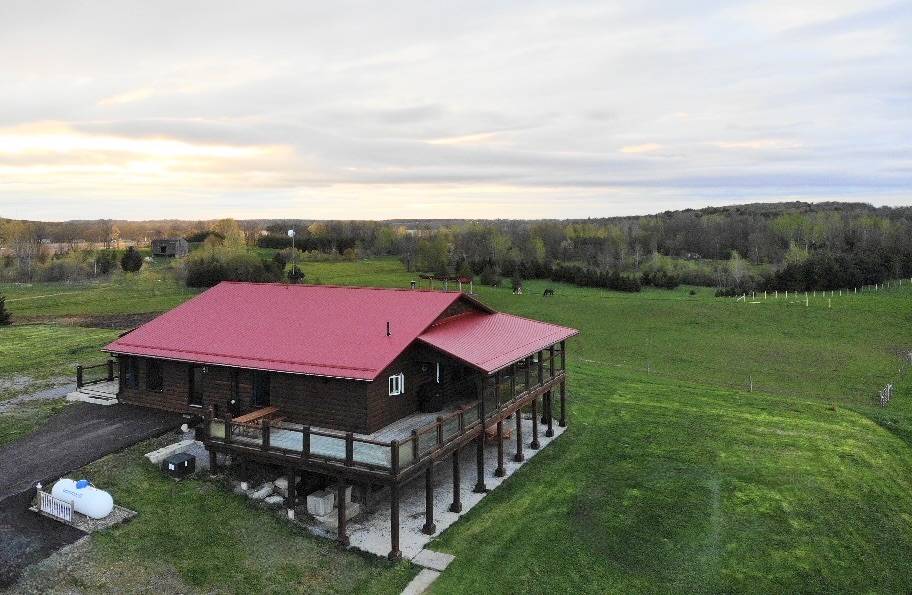 $1,250,000 CDN ($915 USD) This is not your run-of-the-mill country property! Consider this exquisite 20 Acre hobby farm, custom log style home built in 2008 & tastefully remodelled in 2021-25. Your family will love the generously sized rooms & if you have horses, they too will be pampered with extra-large stalls, seamless stall matts & spacious indoor training area. 4200 sf of finished space this former golf clubhouse is currently configured with 2+ 1 bedrooms & 2 bathrooms with plenty of space to create extra rooms if you so choose. Potential multi-generational home. Originally built for commercial use, it boasts extra features not typically found in a home including 400-amp service, Generac® generator attached directly to the electric panel, 2 floors each with separate heating & septic systems & a spacious wrap-around deck overlooking the breathtaking landscape. Upgrades include 5 new entrance doors, metal roof, log restoration (blasting), completely new kitchen, new bathrooms, new furnace/AC, professional landscaping, paved driveway, fencing & much more. 50x110 outbuilding with concrete pad, 200amps, with its own septic, separate well & hot/cold water. This outbuilding is currently configured with a 2600sf insulated section having 5 large stalls, tack/feed room, office, washroom with shower, and a 40x40 workshop/garage area where you have room for all your toys & projects. There is an additional 17x60 hay/storage barn. The home features an open concept living/dining room with large windows, generously sized bedrooms & fully finished walkout basement. Enjoy the spectacular sights, sounds & closeness to nature & wildlife. Minutes to Hwys. 37 & 7 & half hour to the 401. Live your best life!