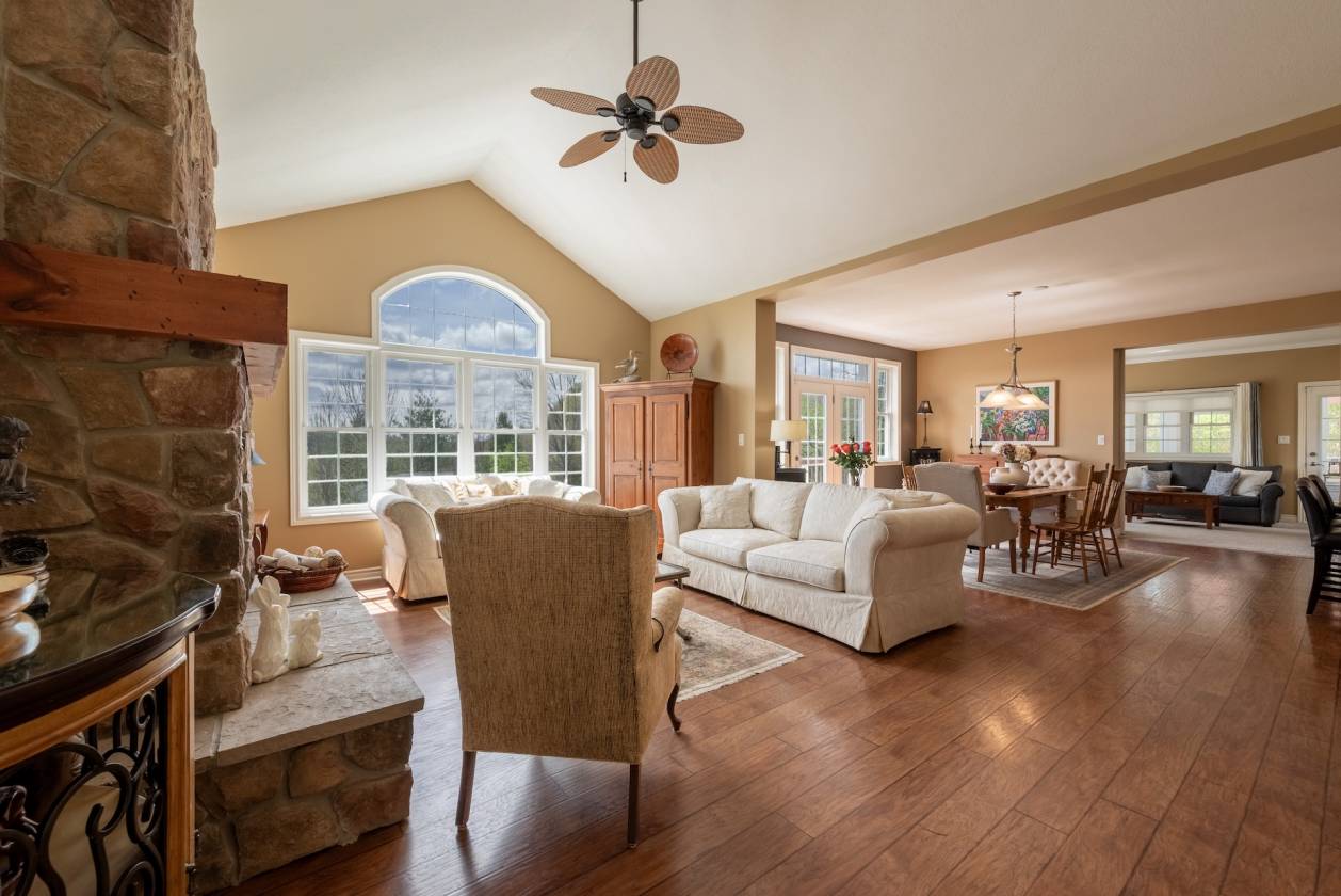 For the equestrian enthusiast, the property features impressive facilities, including a modern 8-stall barn with tack, feed, and storage rooms that open into a bright, 6000 sq ft indoor riding arena. The picturesque lower acreage encompasses 7 paddocks and a bass-filled pond. This is not just a home; it's an invitation to embrace a legacy lifestyle.