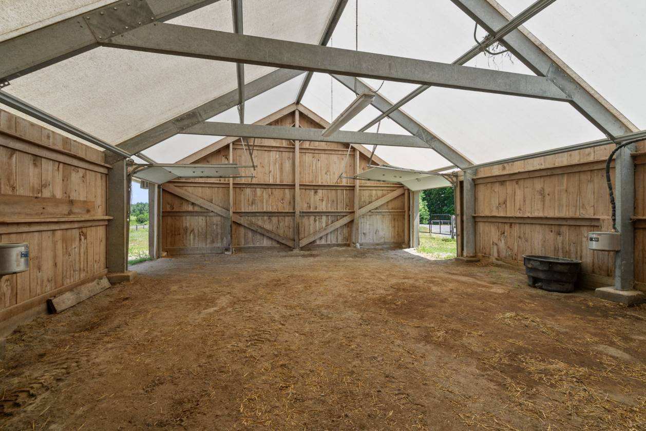 covered arena • uncovered arena • pen • hay barn • fenced • pond • 1 barn with 6 stalls • 8 Run-in stalls