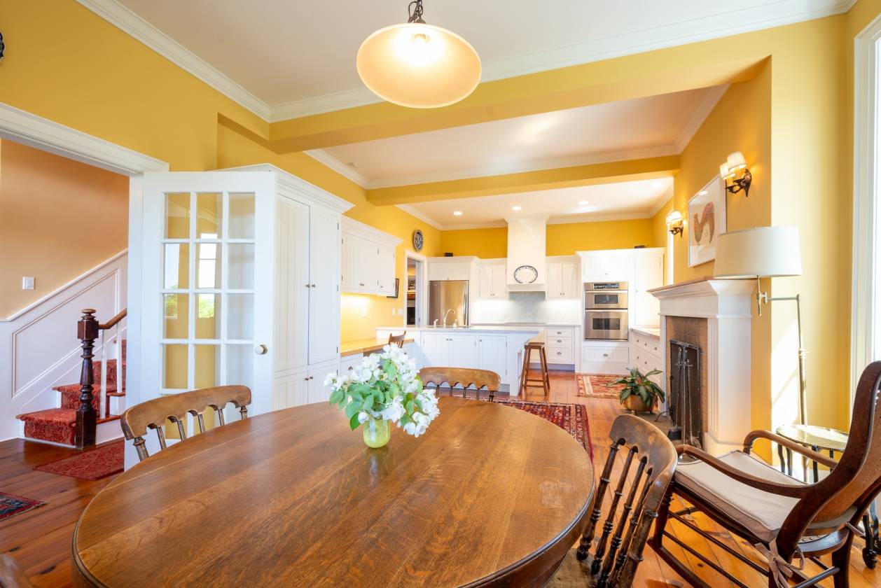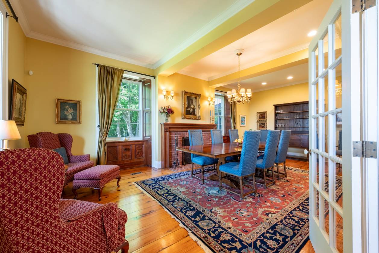 • Impressive, expansive formal dining room with wood-burning fireplace.