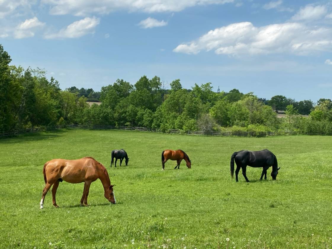 • Varied terrain of open meadow, paddocks and hay field along with forest area and trails for hacking and hiking.