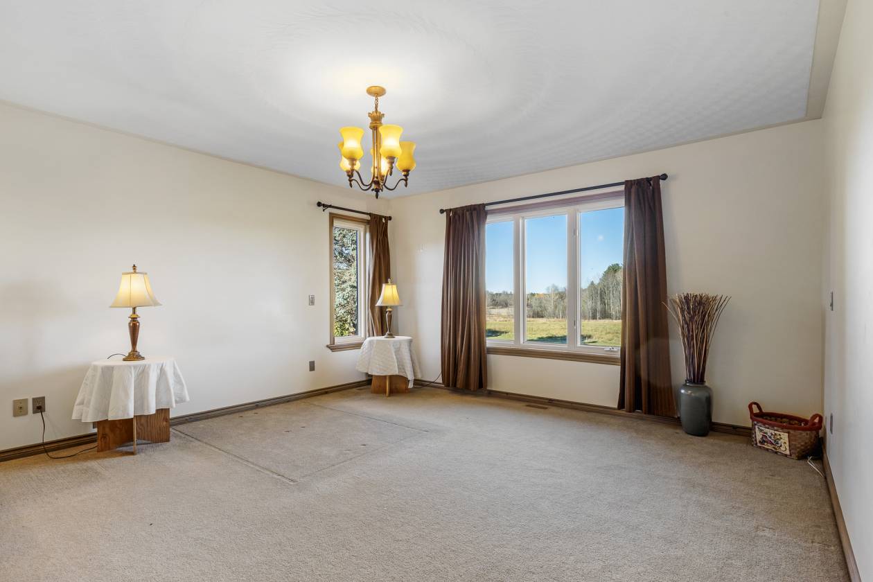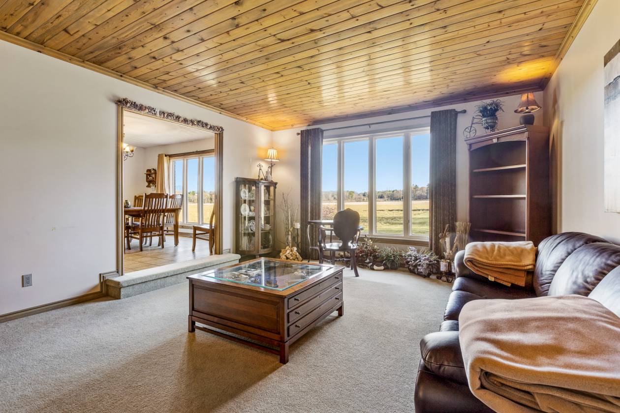 - Captivating tranquil setting, stunning all-brick custom designed 4-bedroom 2650 sqft ranch style bungalow with attached 2 car garage and outbuildings, set on 200 acres with the Carp River at the edge of the property. Name your hobby pursuit, equine discipline or outdoor sport, this is your destination. The front 100 acres boasts this beautiful home, with full basement and walk-out potential. Growing or extended family, clubhouse or home-based business there is plenty of room to plan the future. New roof in 2019 and new geothermal heat pump installed 2023.