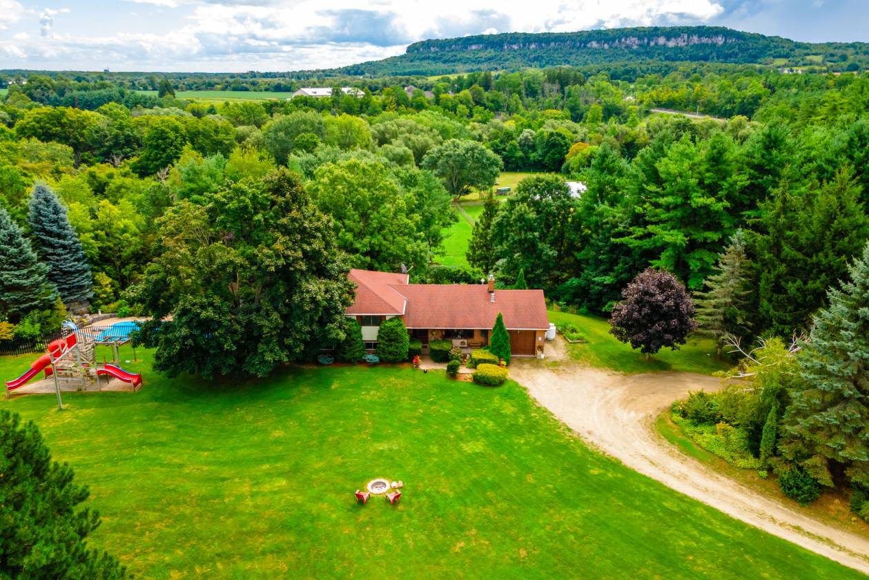 Set on 25 acres along a private stretch of Walkers Line, this 4-bedroom, 2-bathroom home offers sweeping views of Mount Nemo, Rattlesnake Point, and the Bronte Valley. Large windows frame breathtaking sunrises and sunsets, while the open-concept kitchen and dining room seamlessly flow into the downstairs family room, making entertaining effortless.